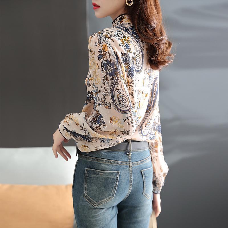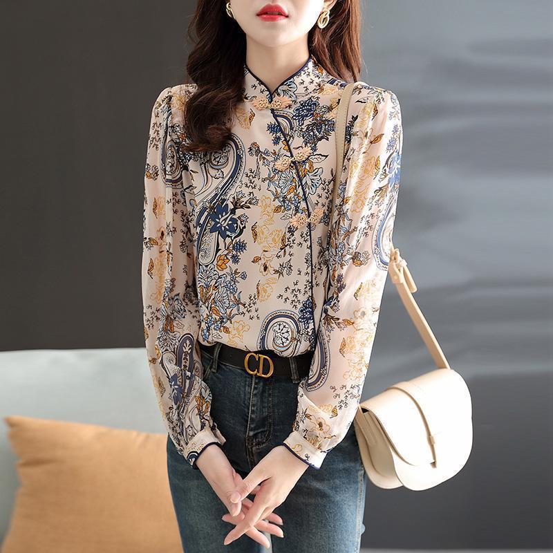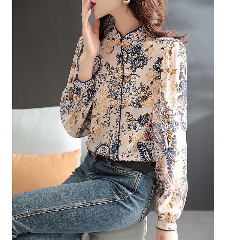 2024 봄과 가을 새로운 레트로 중국 스타일 여성 의류 수직 칼라 버클 탑 전통 패션 긴 소매 인쇄 우아한 셔츠스토어 가기