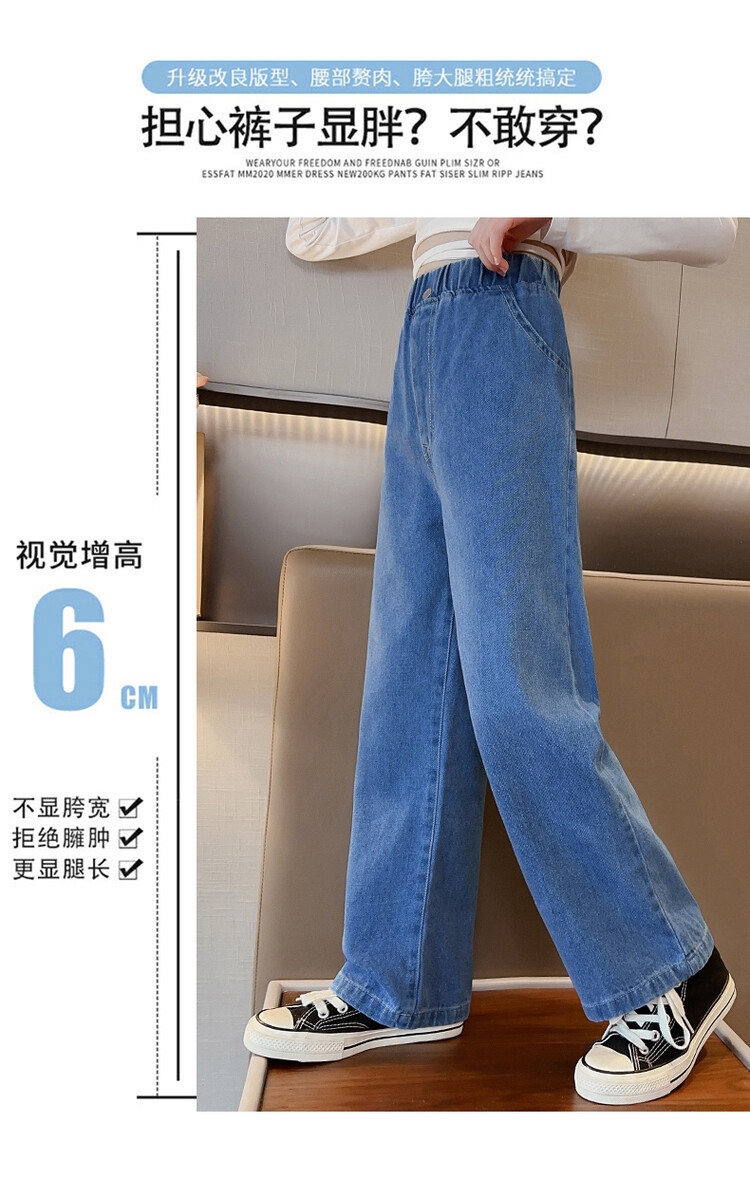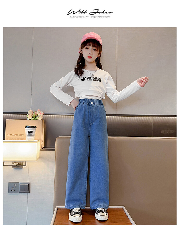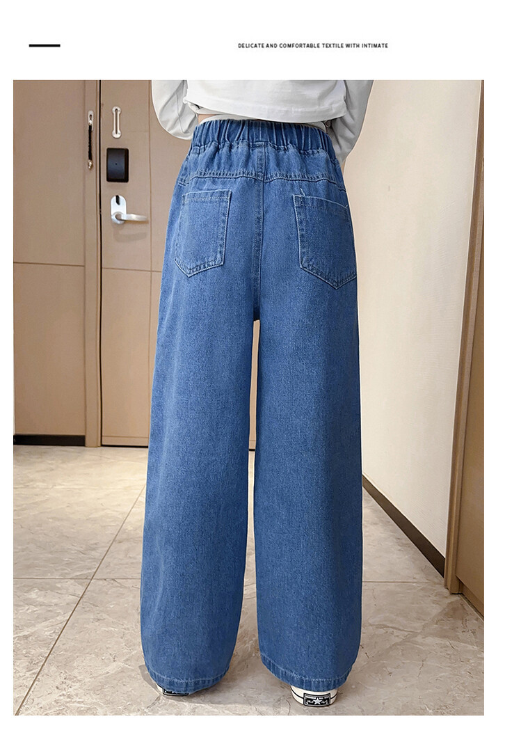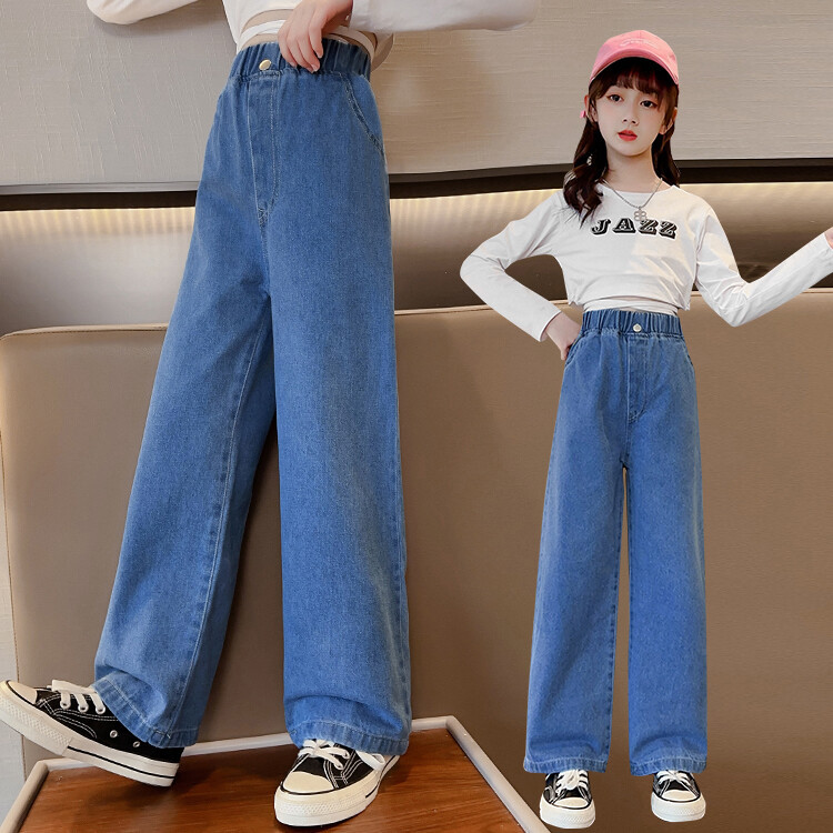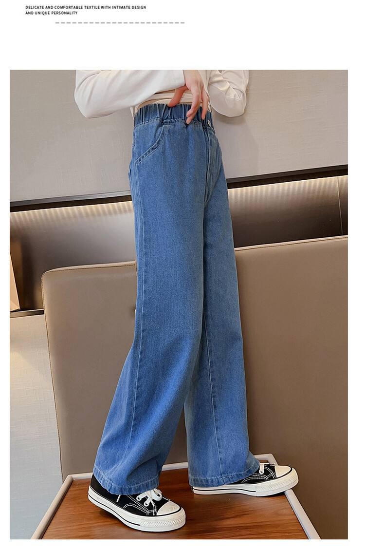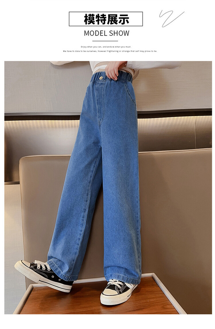 소녀 넓은 다리 청바지 봄 2025 새로운 도착 서양식 어린이 봄 착용 바지 중대형 어린이 유행 캐주얼 바지스토어 가기
