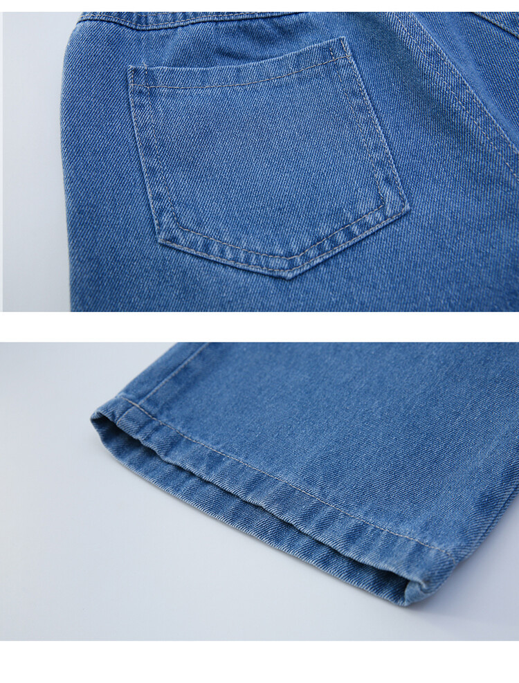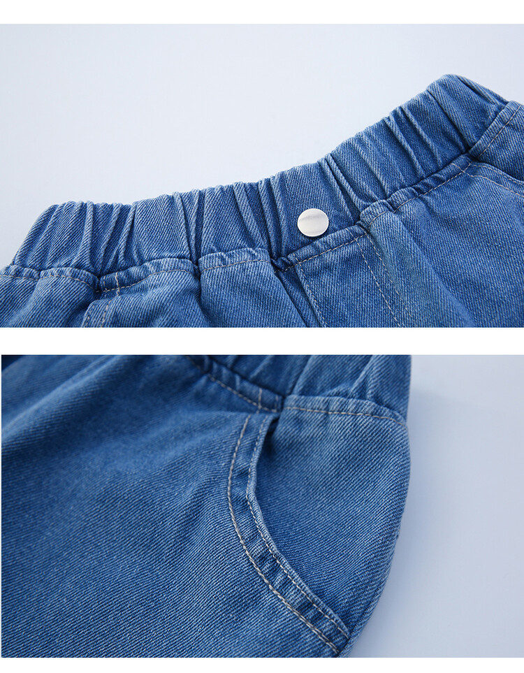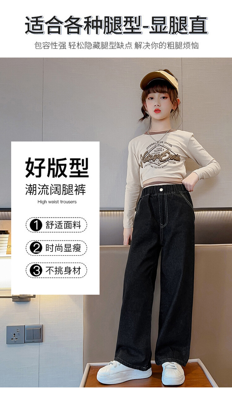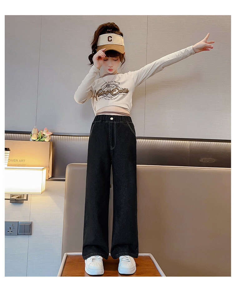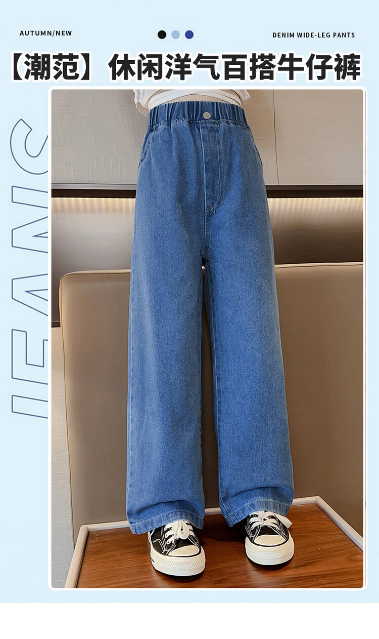 소녀 넓은 다리 청바지 봄 2025 새로운 도착 서양식 어린이 봄 착용 바지 중대형 어린이 유행 캐주얼 바지스토어 가기