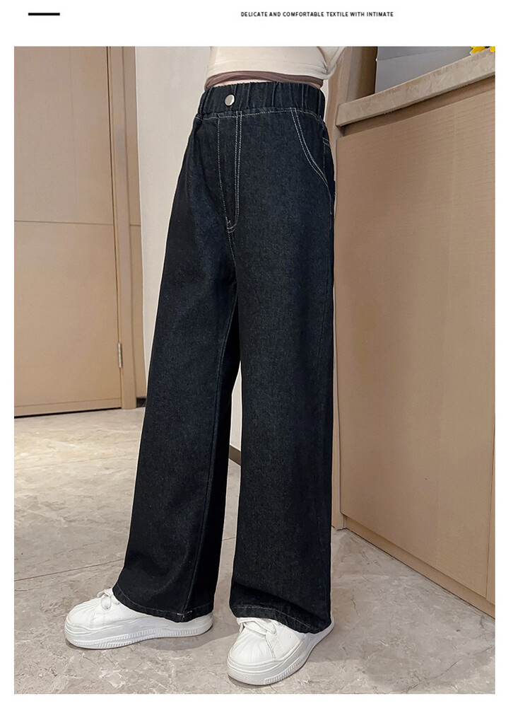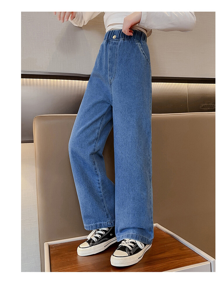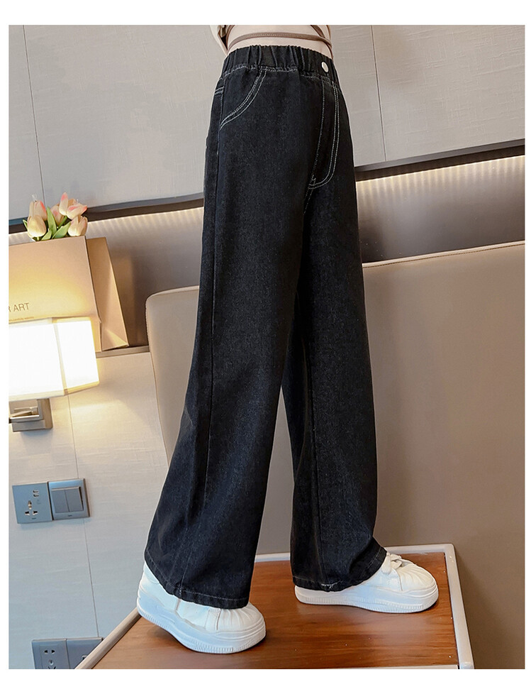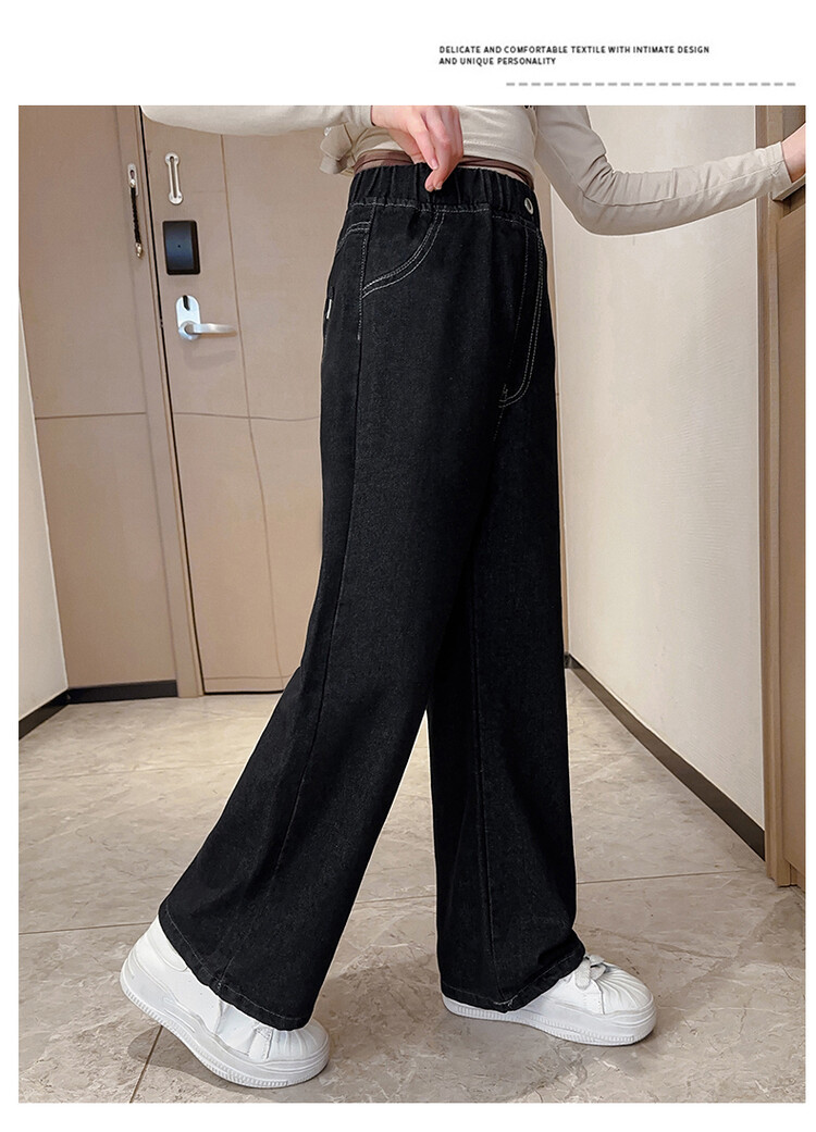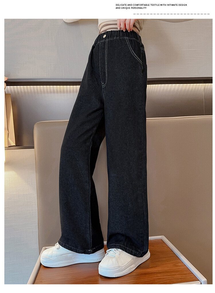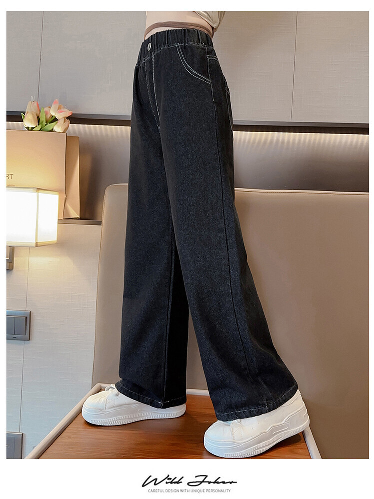 소녀 넓은 다리 청바지 봄 2025 새로운 도착 서양식 어린이 봄 착용 바지 중대형 어린이 유행 캐주얼 바지