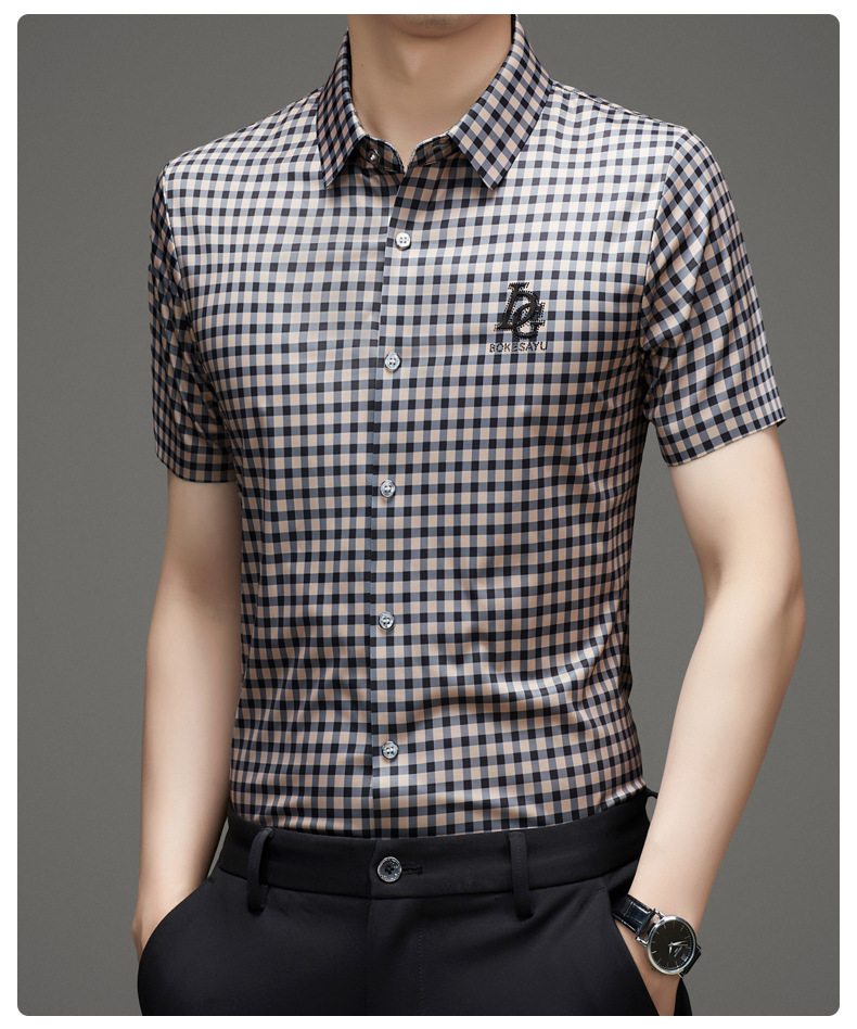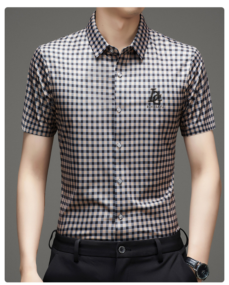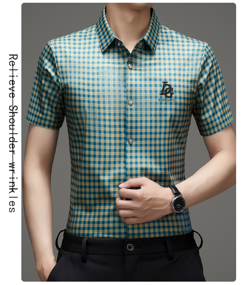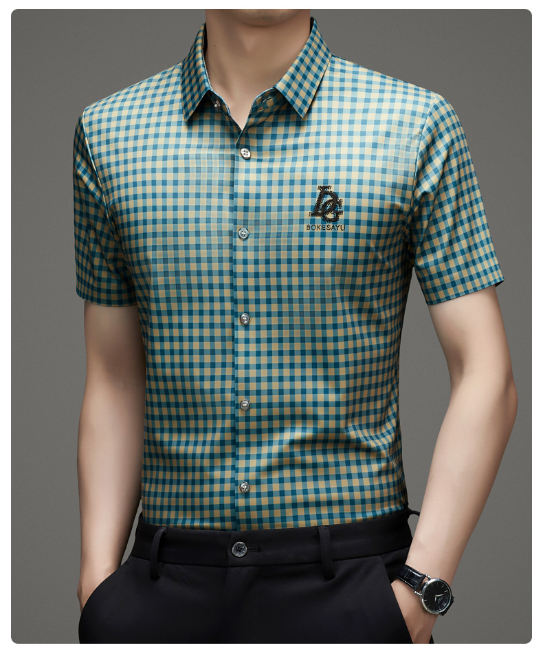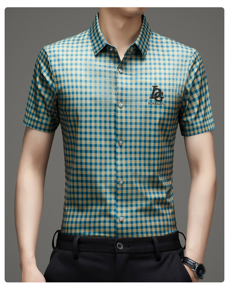 반팔 셔츠 2025 새로운 남성 여름 폭발 캐주얼 패션 반팔 격자 셔츠 남성 헤어 세대스토어 가기