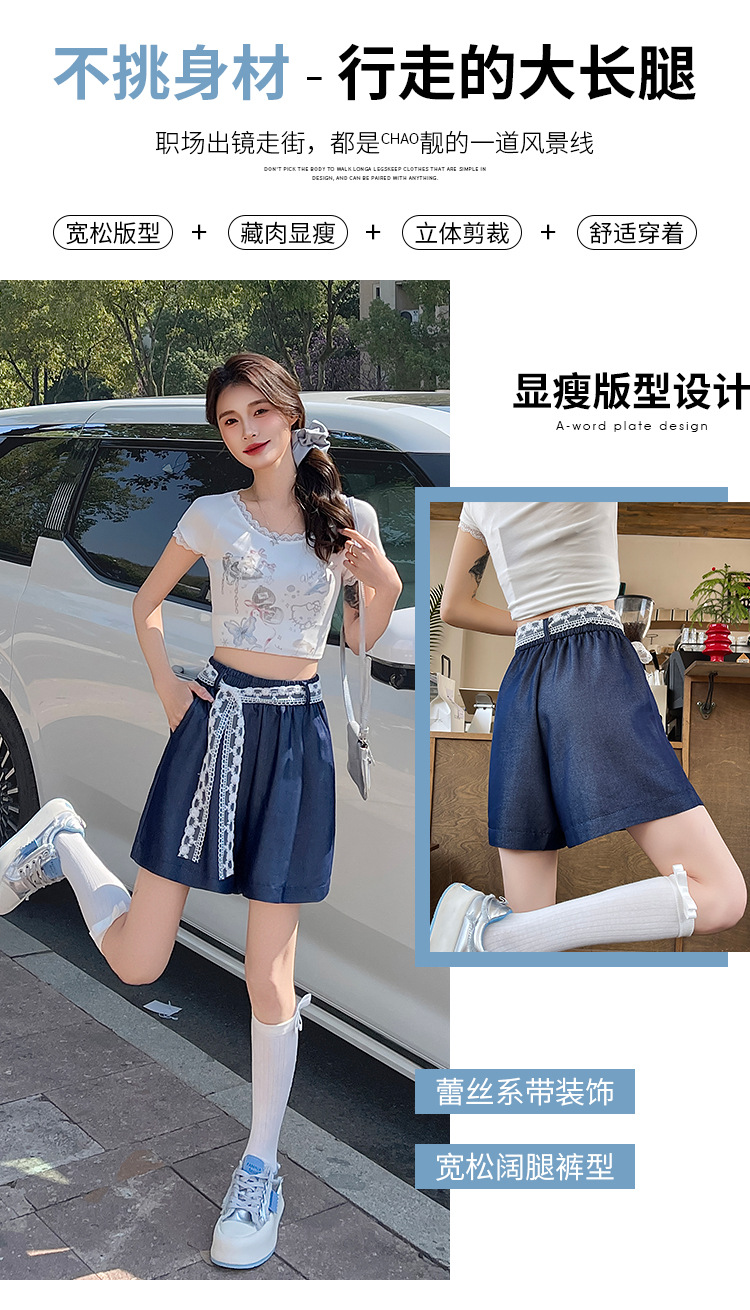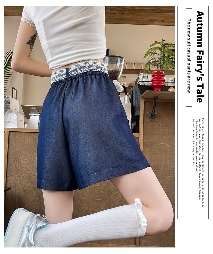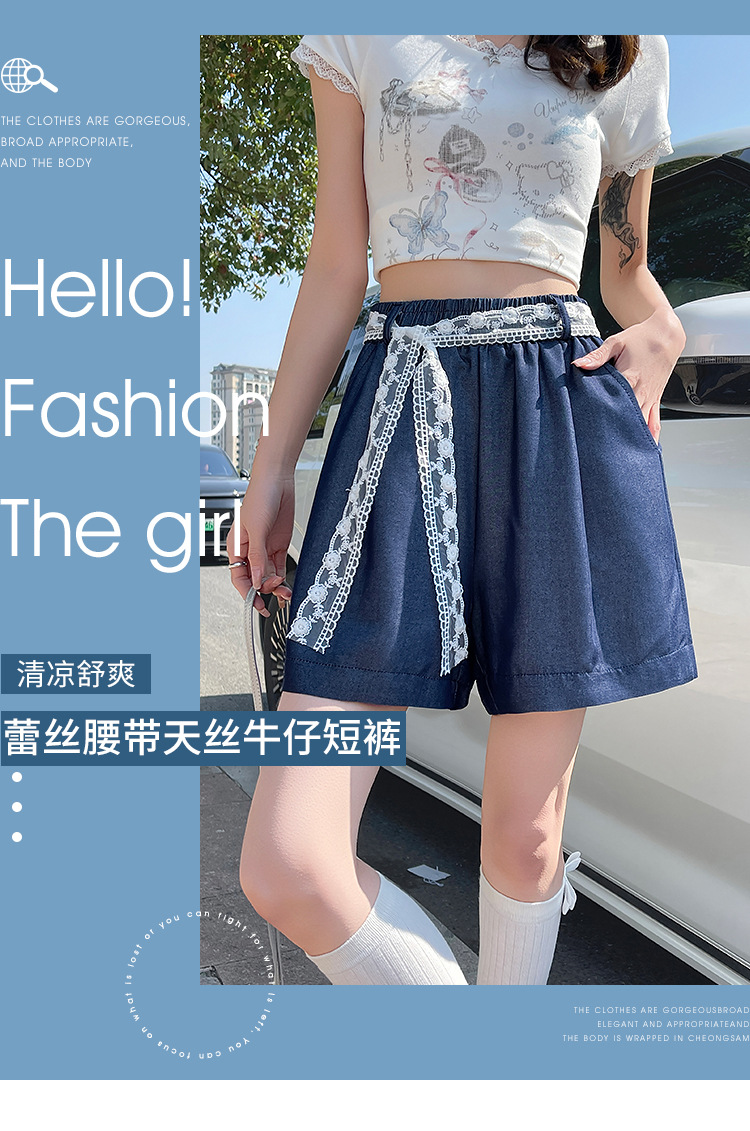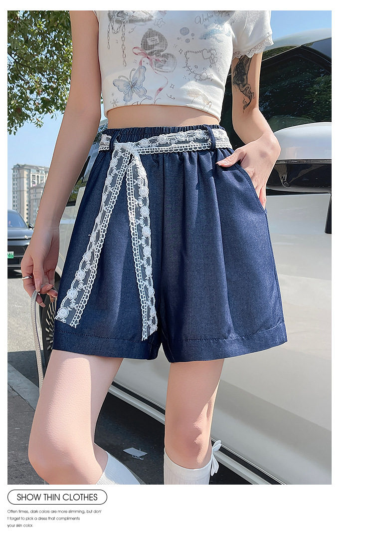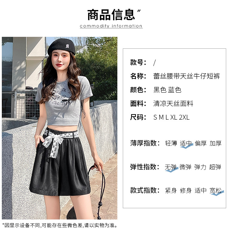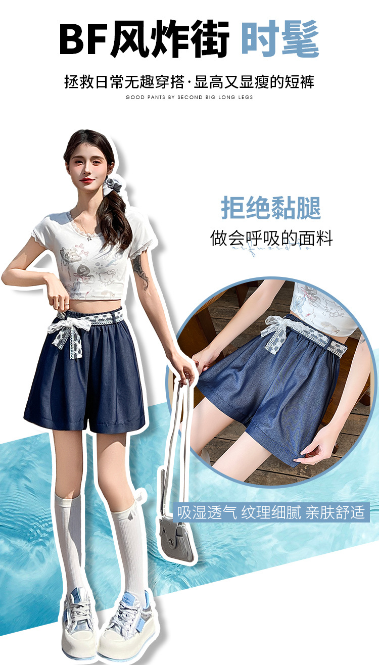 텐셀 데님 반바지 여성 여름 얇은 짧은 바지 높은 허리 슬리밍 넓은 다리 A-모양스토어 가기