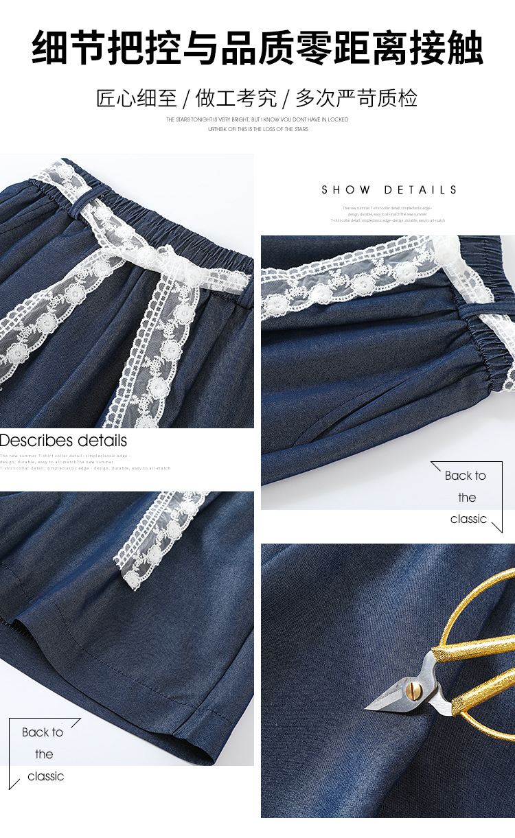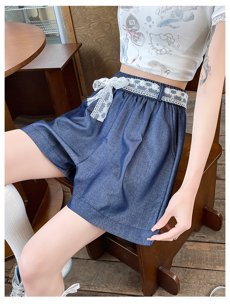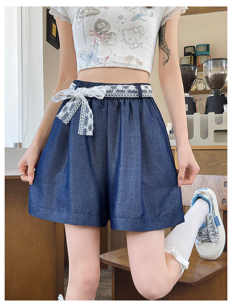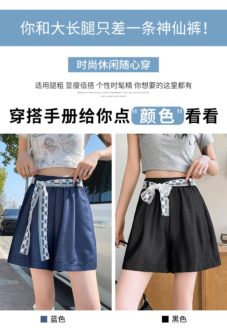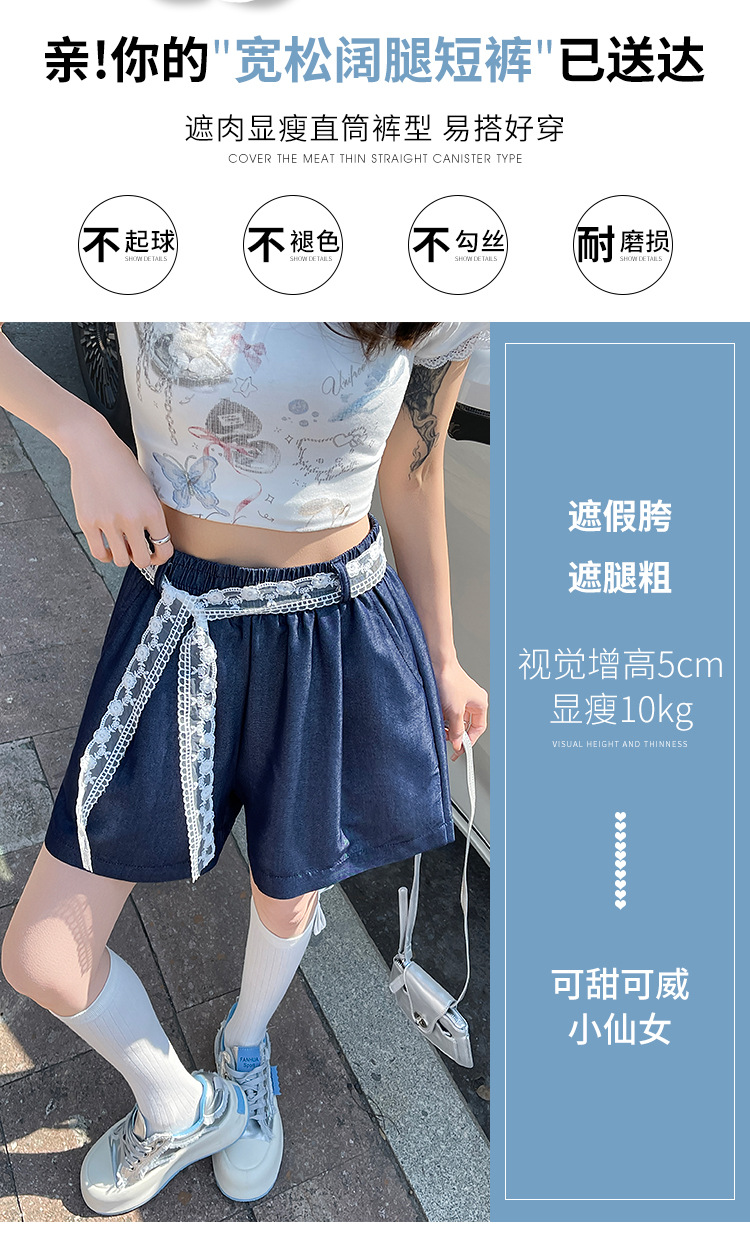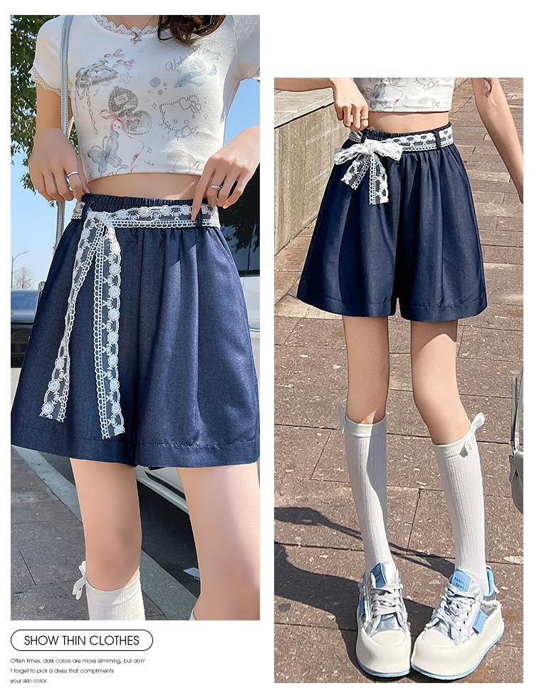 텐셀 데님 반바지 여성 여름 얇은 짧은 바지 높은 허리 슬리밍 넓은 다리 A-모양스토어 가기