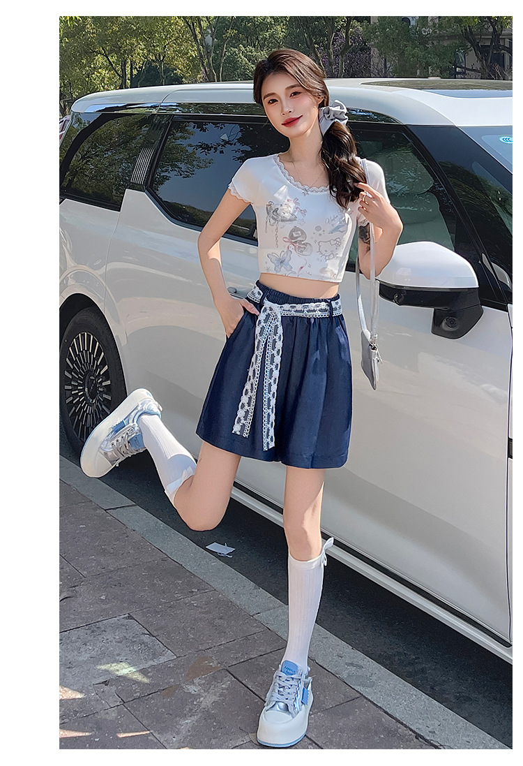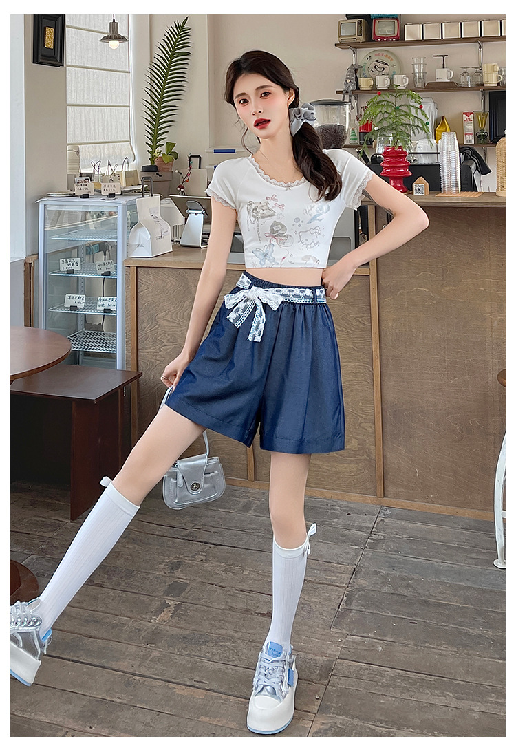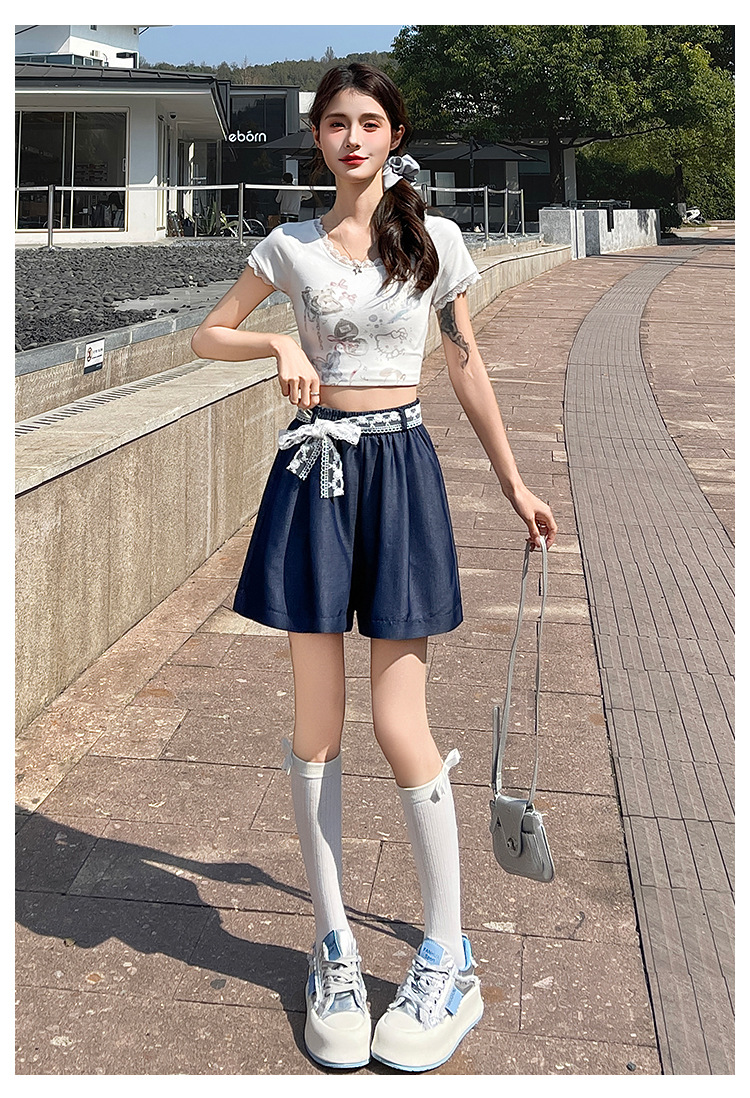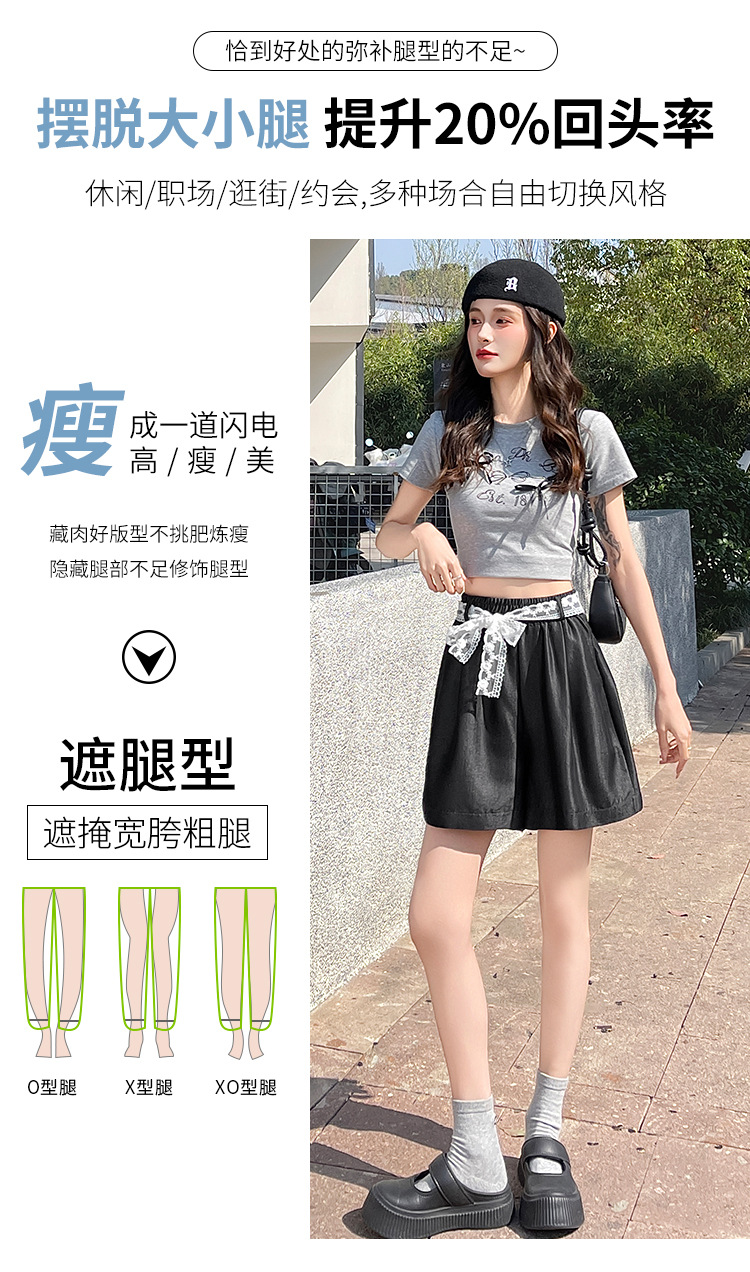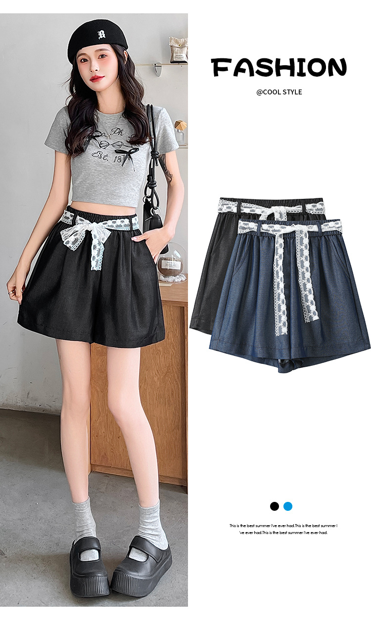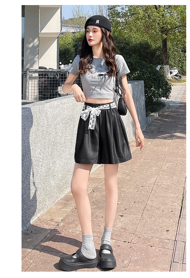 텐셀 데님 반바지 여성 여름 얇은 짧은 바지 높은 허리 슬리밍 넓은 다리 A-모양스토어 가기