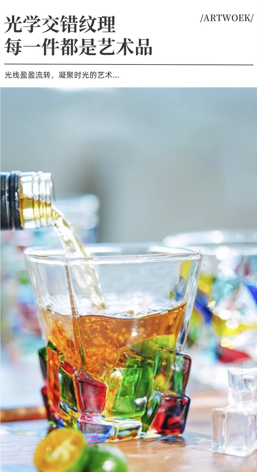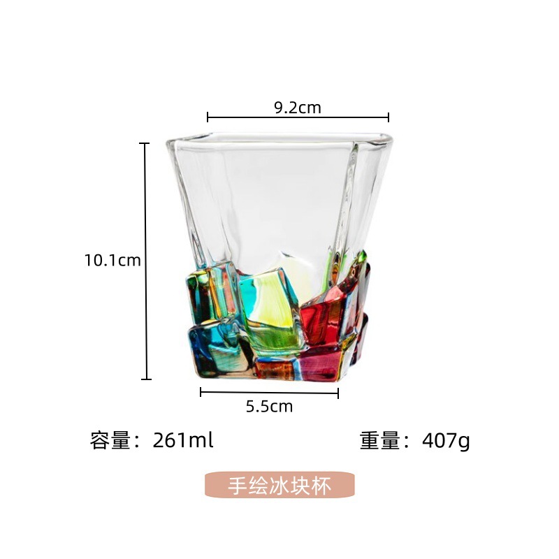 새로운 다채로운 위스키 와인 컵, 손으로 그린 유리, 창의적인 주스 컵, 구강 세척제 컵, 가정용 도매스토어 가기