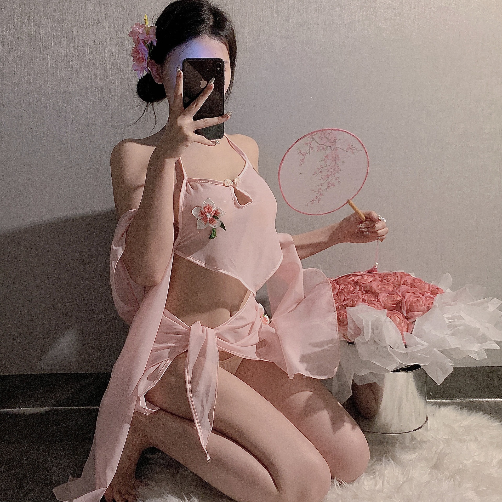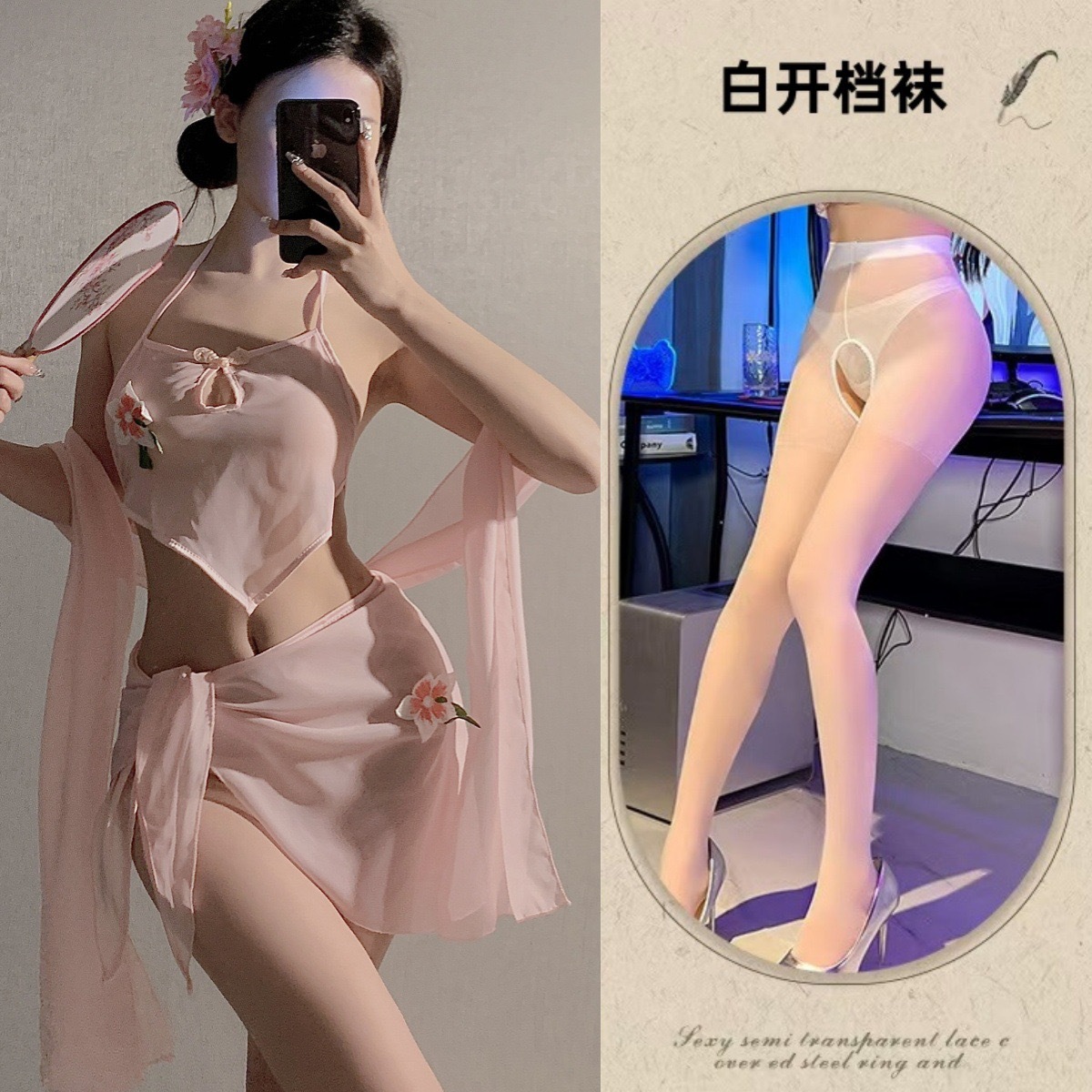 • 핑크 복대 3종세트 + 화이트 망사스타킹