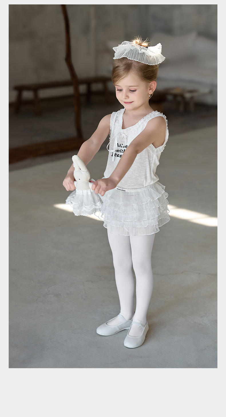 어린이 원사 방귀 커튼 레이스 스태킹 스커트 미디어와 쇼트베이스 스커트 올 매치 스커트 화이트 스커트스토어 가기