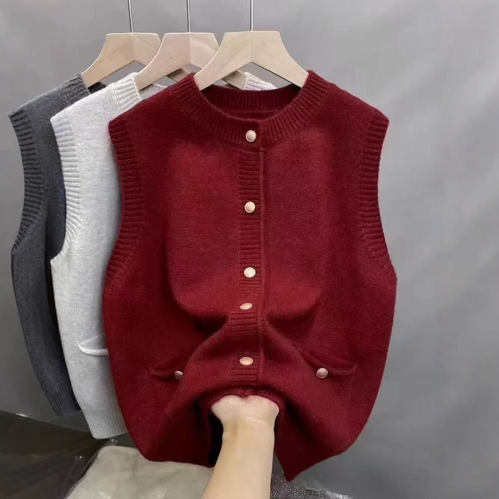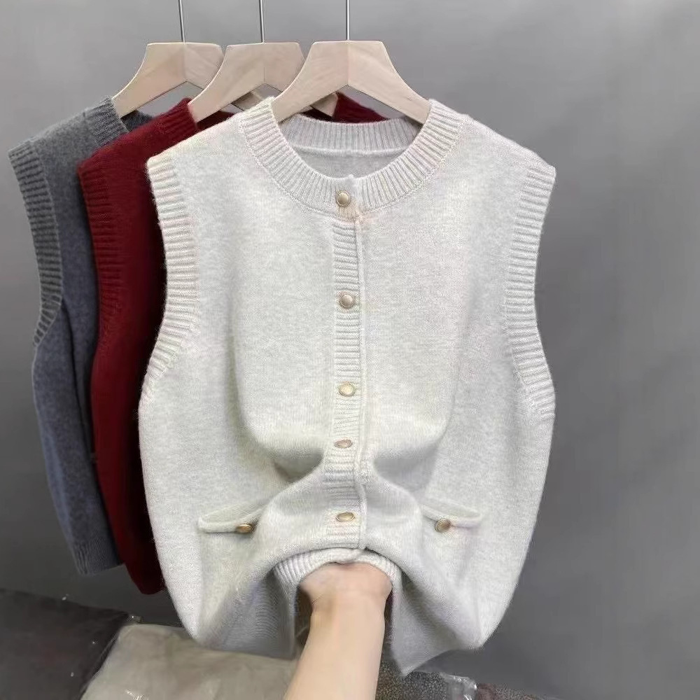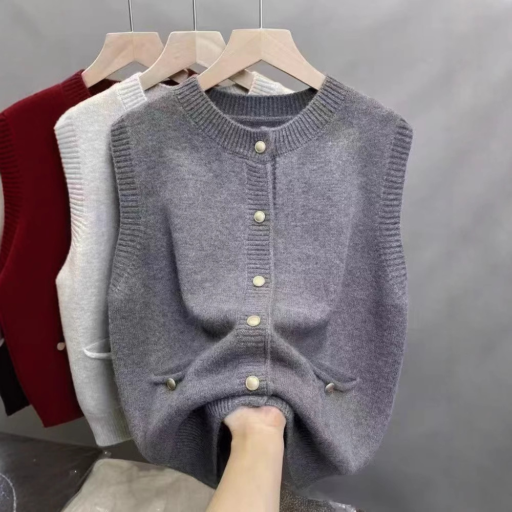 여성을 위한 기질 라운드 넥 포켓 니트 조끼 가디건 25 봄 여름 니트 조끼 부드럽고 왁시한 레이어드 슬리밍 탑