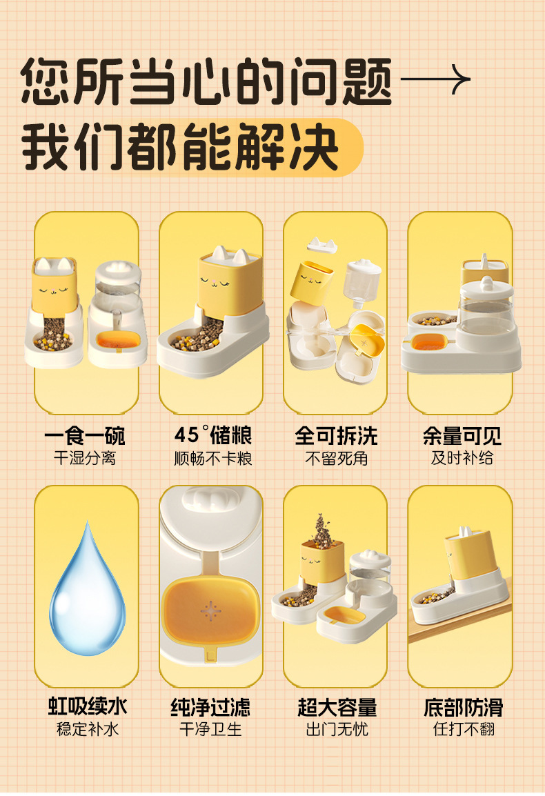 대용량 애완동물 정수기, 건식 및 습식 분리 자동 급수기, 물과 사료 일체형 급수기, 고양이 및 개 급수기
