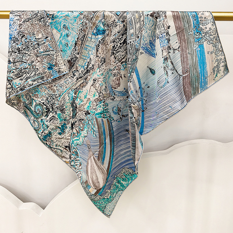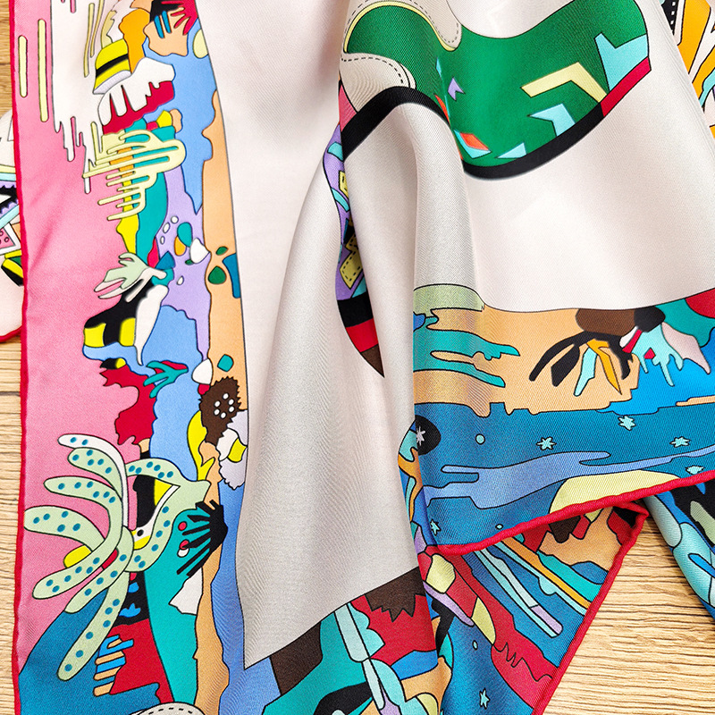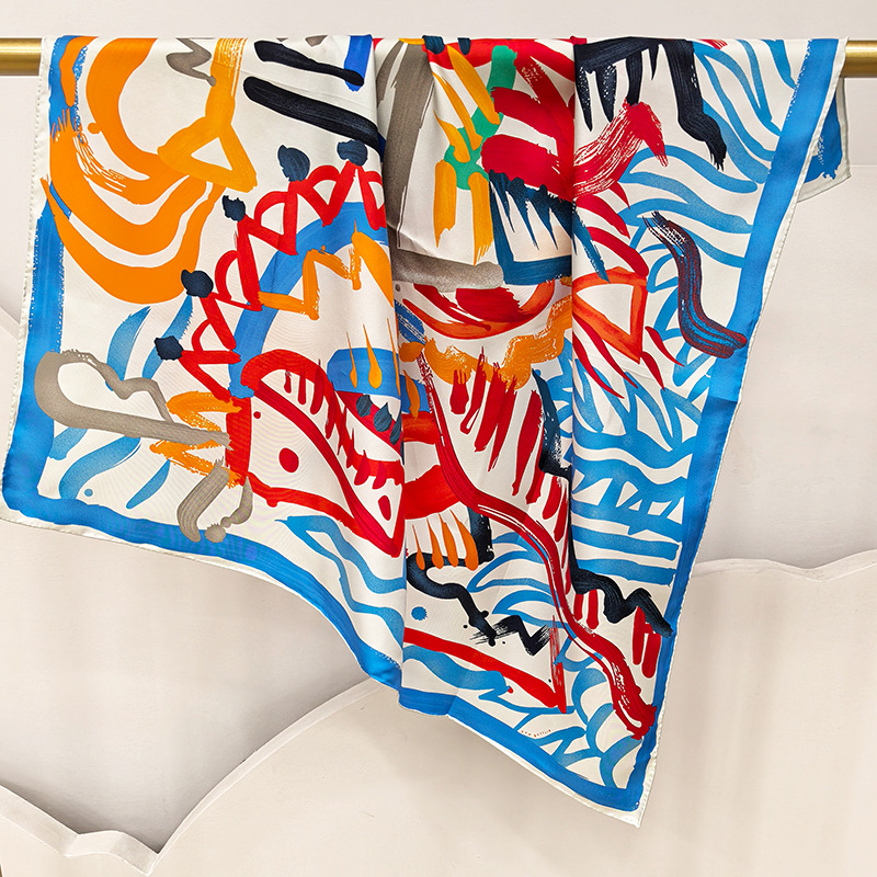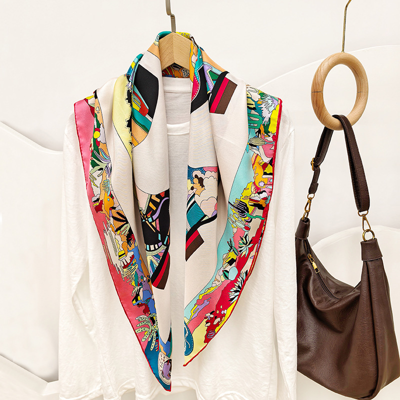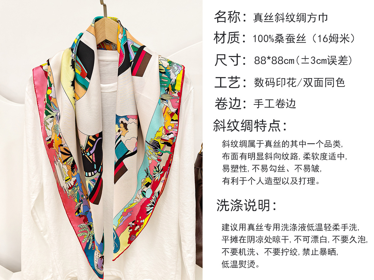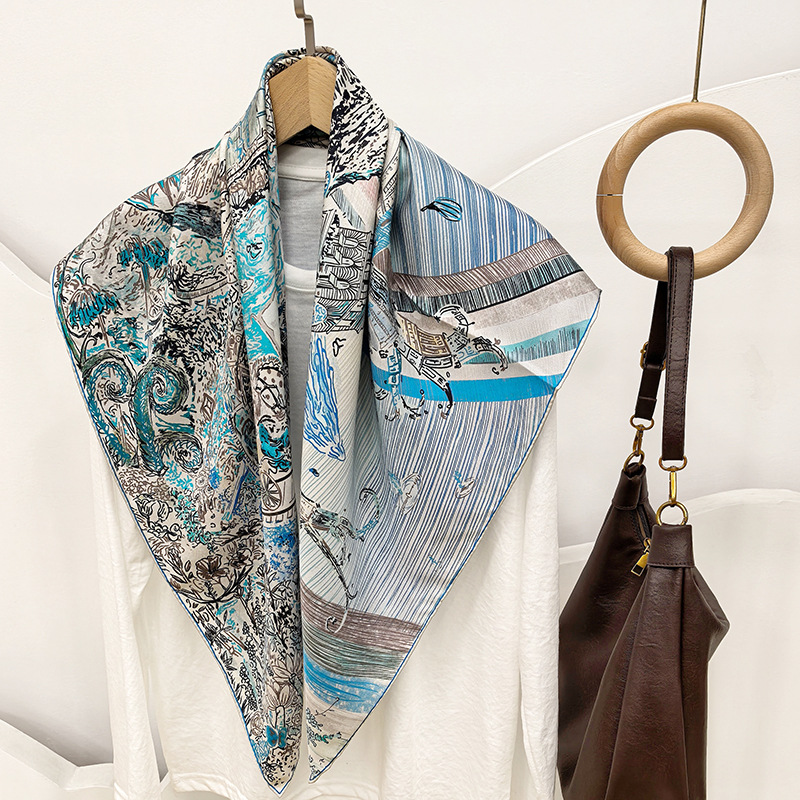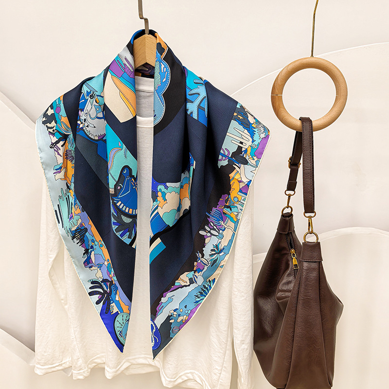 봄과 가을 새로운 스타일 88cm 실크 16mm 실크 스카프 양면 인쇄 스퀘어 스카프 다목적 목도리 스카프 스카프스토어 가기