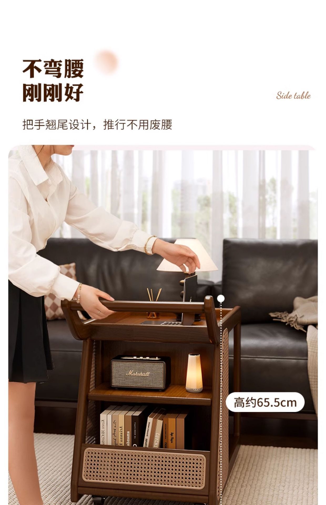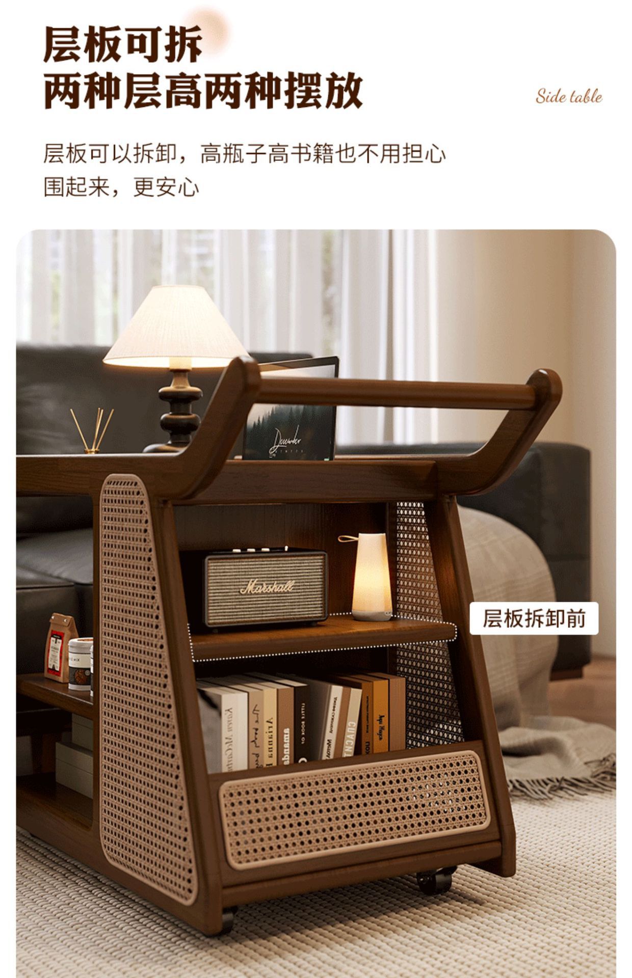 나무 소파 사이드 테이블, 소형 트롤리, 소파 사이드 캐비닛, 사이드 수납, 거실 버스 다이닝 카트, 이동식 커피 테이블