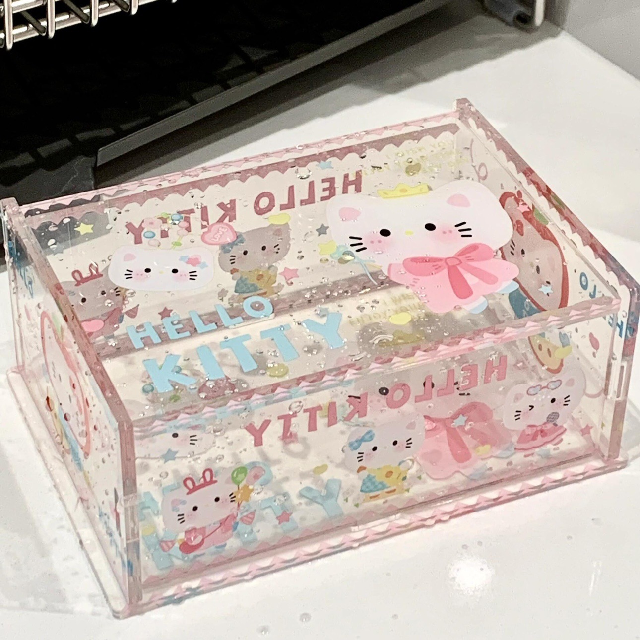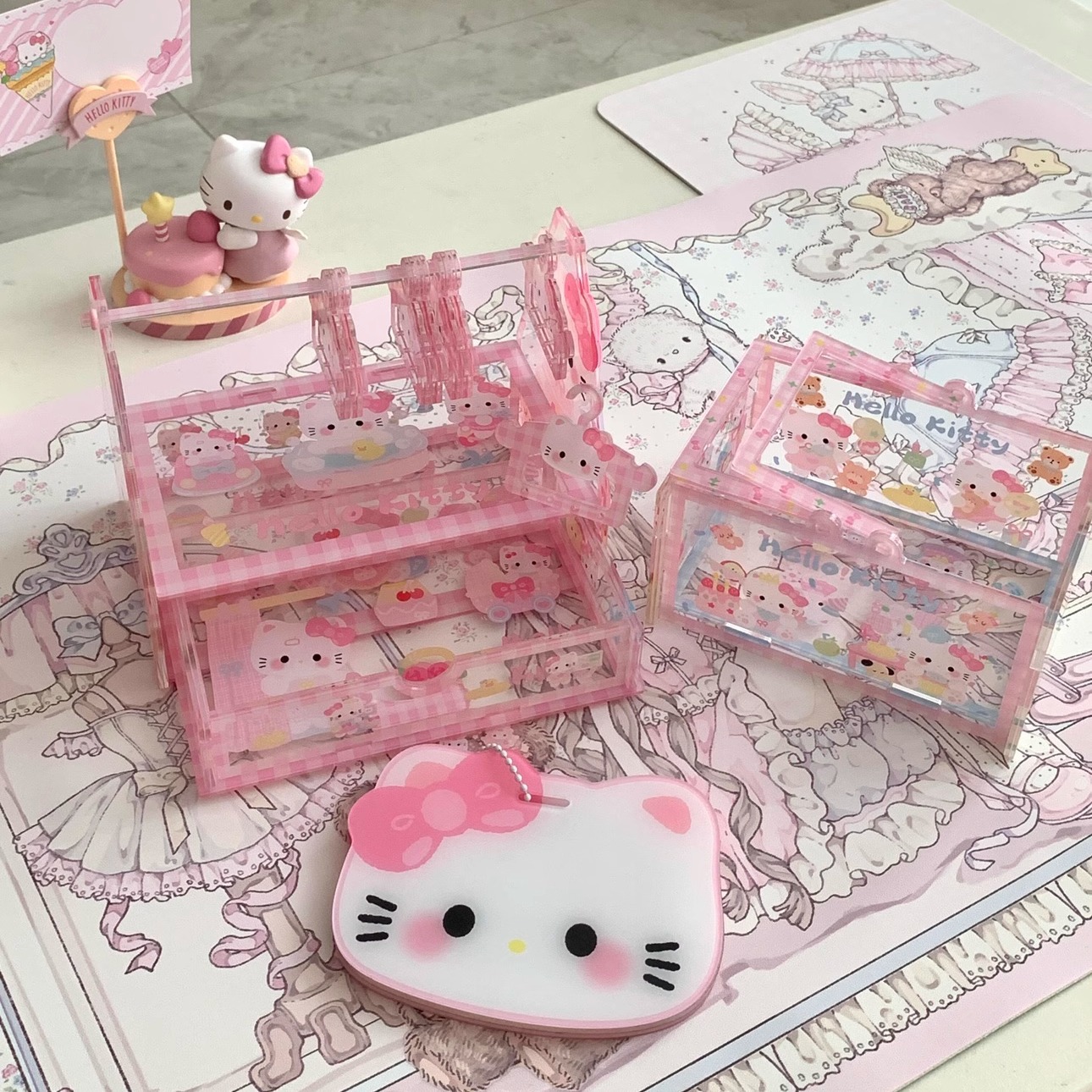 귀여운 hellokitty 아크릴 저장 상자 Kt 고양이 보석 상자 귀걸이 목걸이 반지 손 보석 보관 상자스토어 가기