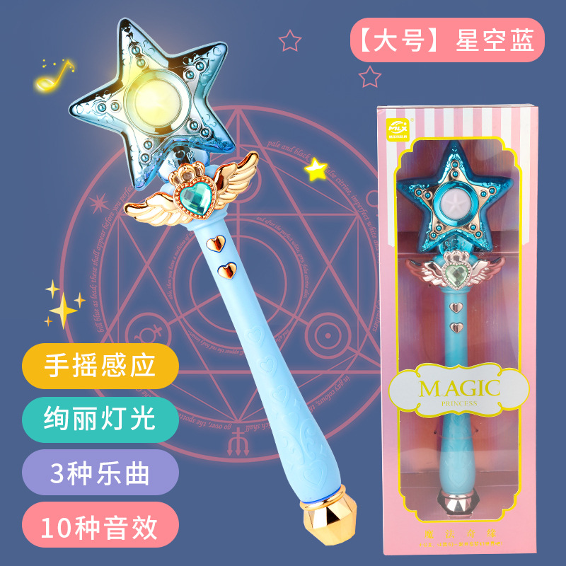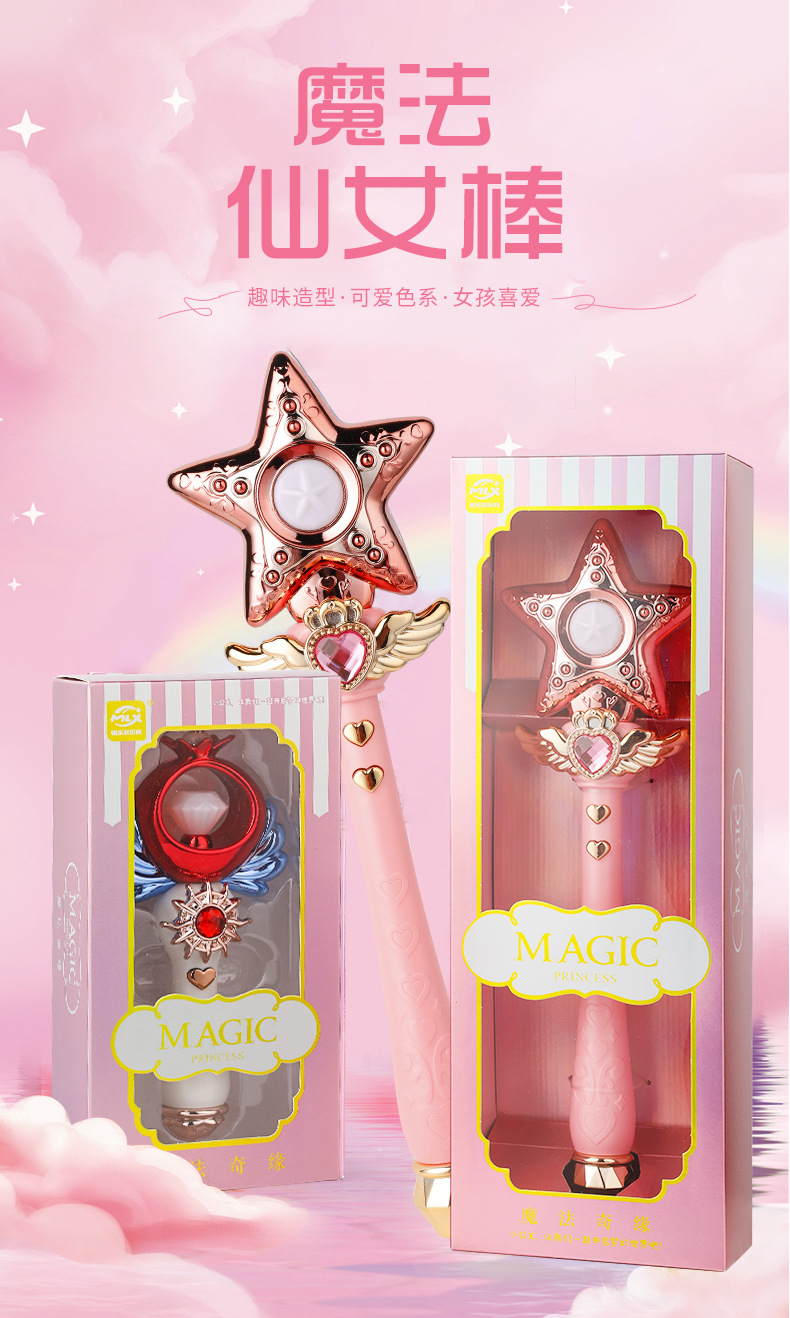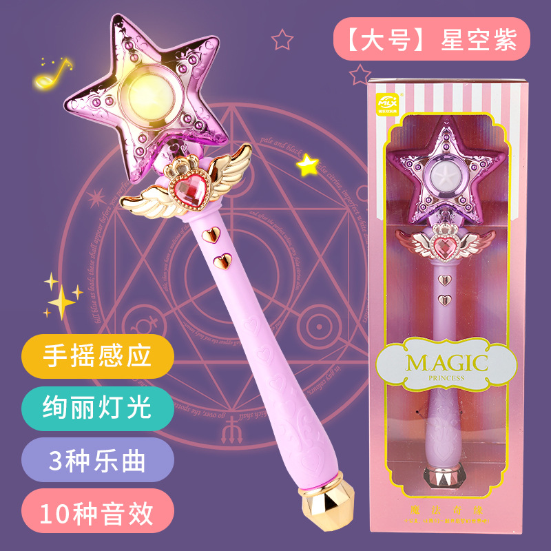 어린이 매직 페어리 스틱 플래시 사운드 및 라이트 크라운 셉터 회전 매직 스틱 소녀의 생일 선물 나이트 마켓 스톨