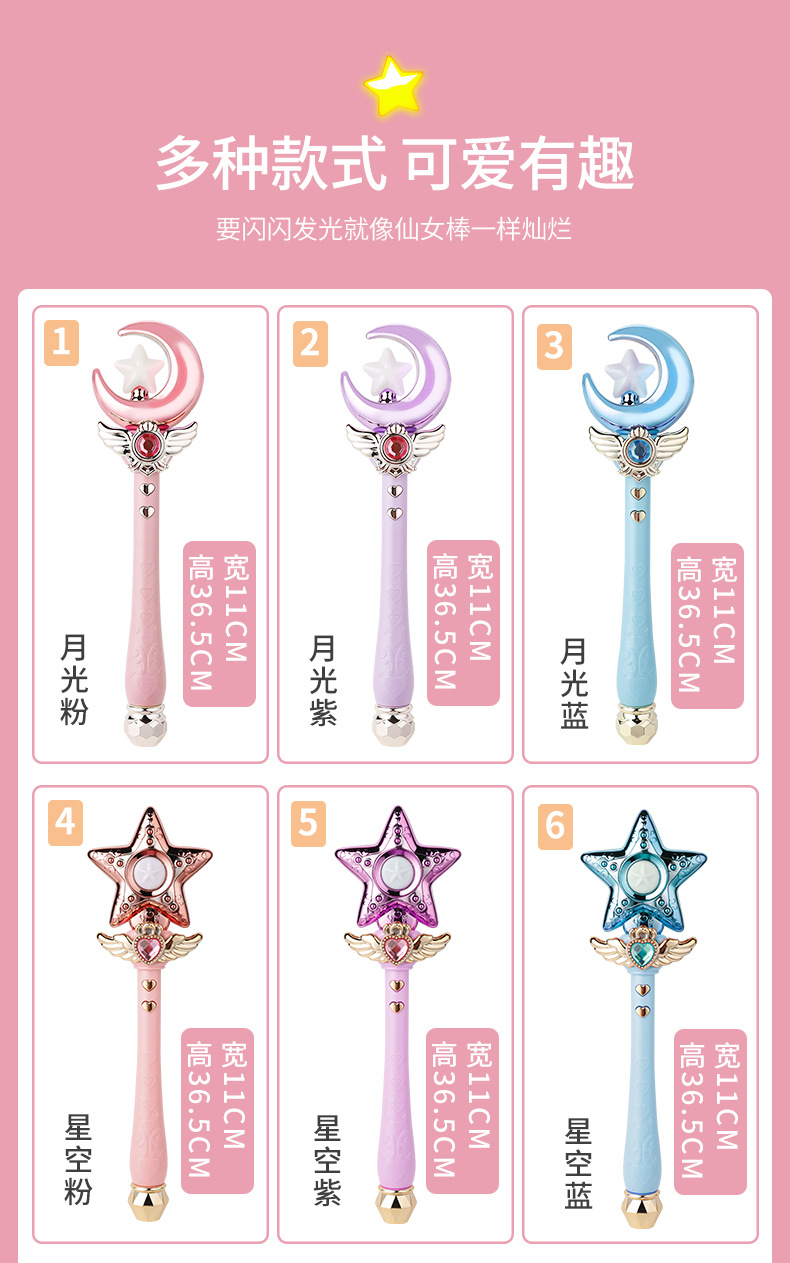 어린이 매직 페어리 스틱 플래시 사운드 및 라이트 크라운 셉터 회전 매직 스틱 소녀의 생일 선물 나이트 마켓 스톨스토어 가기