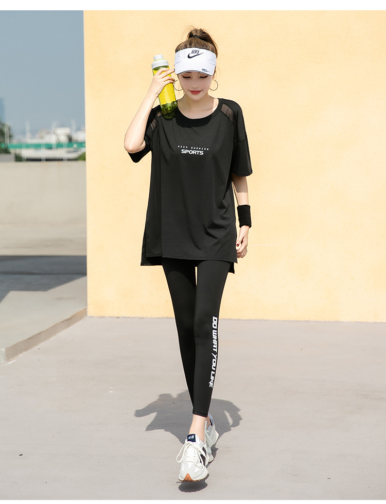 스포츠 세트 여성 요가 피트니스 의류 달리기 체육관 여름 통기성 플러스 사이즈 통통녀 배꼽 덮개 슬림 루즈스토어 가기