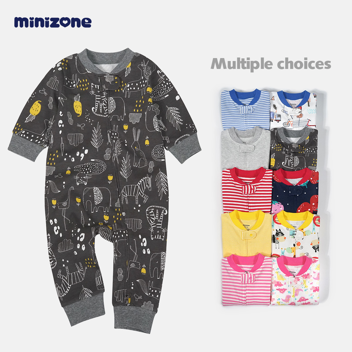 Minizone 아기 점프 슈트 봄, 가을 신생아 긴팔 지퍼 하의 남성과 여성의 아기 순수 코튼 크롤링 슈트 잠옷