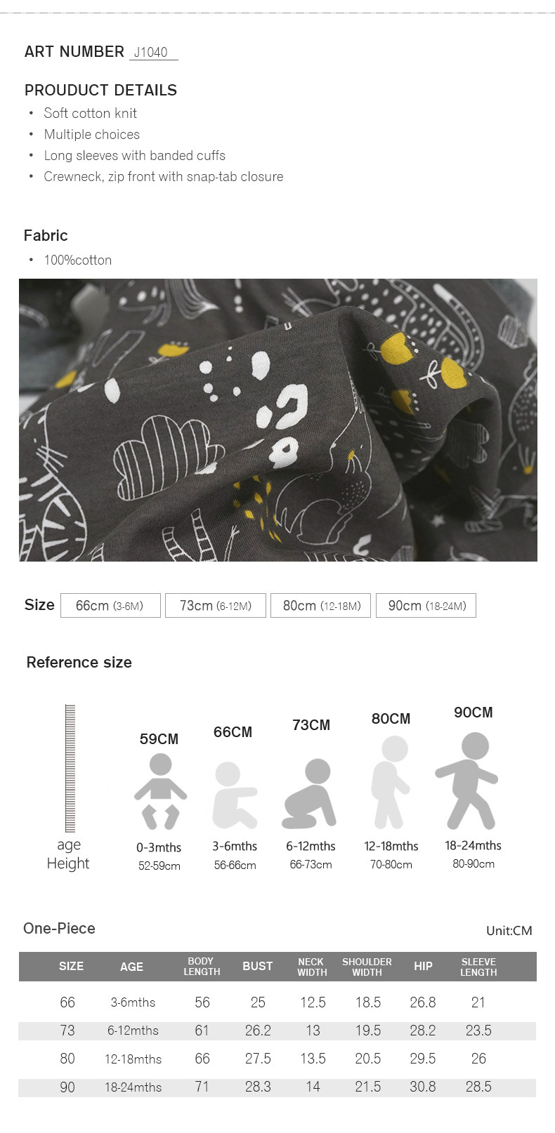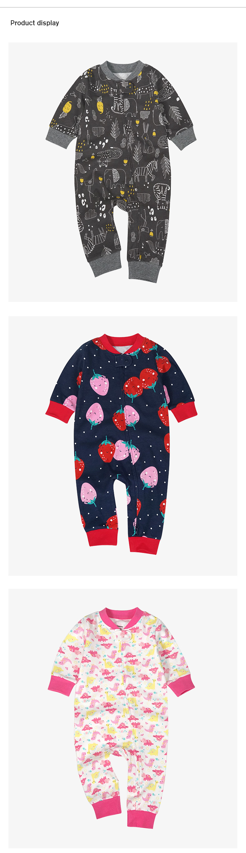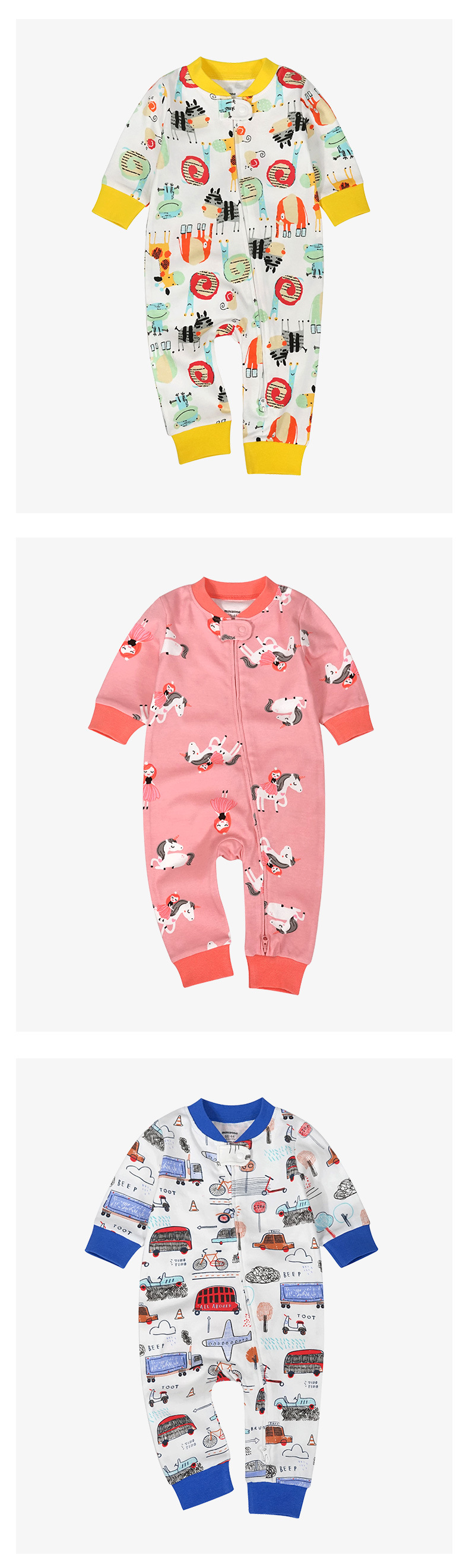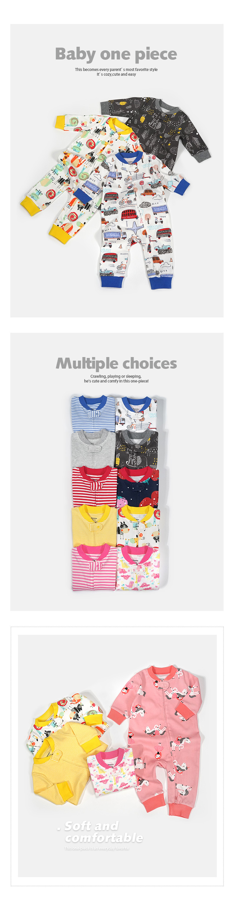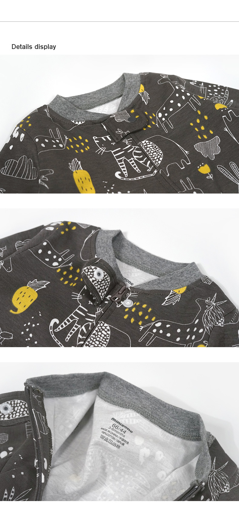 Minizone 아기 점프 슈트 봄, 가을 신생아 긴팔 지퍼 하의 남성과 여성의 아기 순수 코튼 크롤링 슈트 잠옷스토어 가기