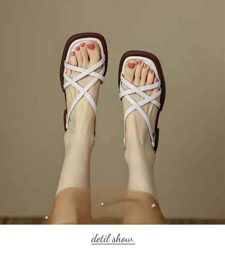2025 올해 여성을 위한 새로운 프렌치 두꺼운 밑창 샌들, 여름 아름다운 하이엔드 로마 신발, 스커트와 패션 신발
