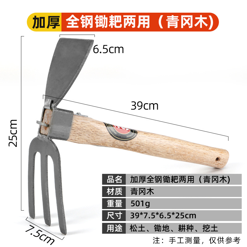 • 두꺼운 올스틸 괭이 및 갈퀴 겸용(녹색 나무)