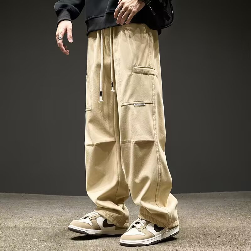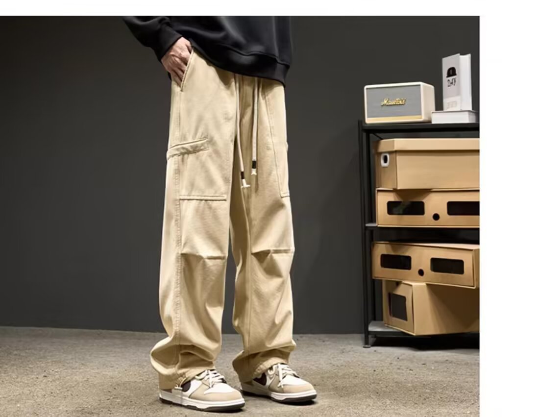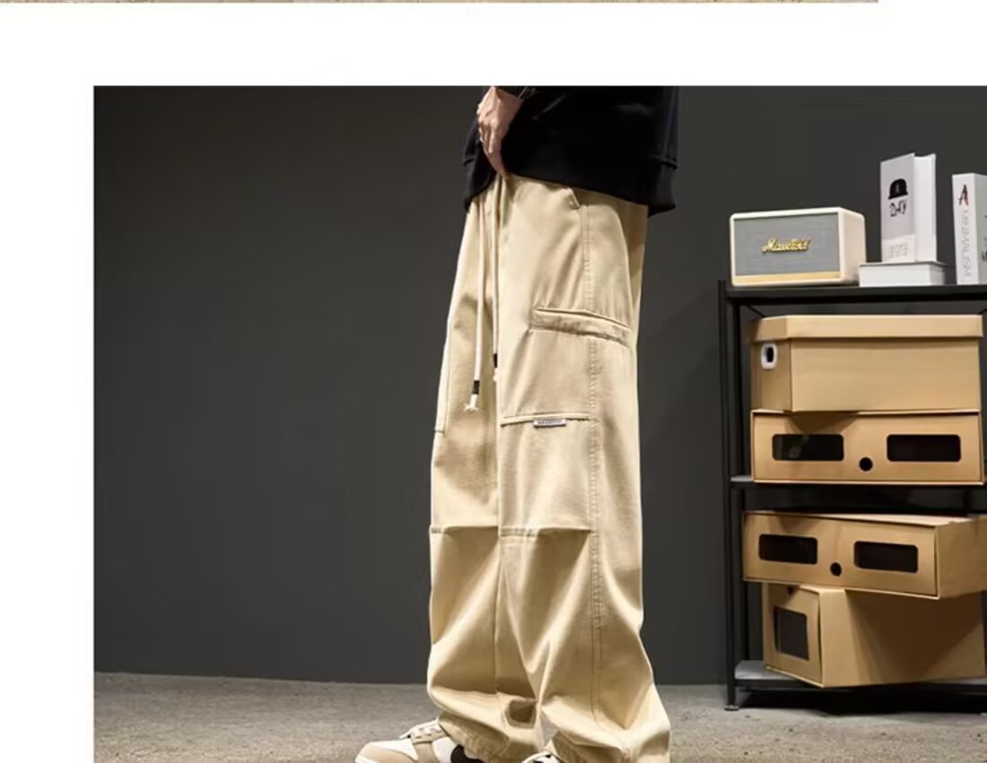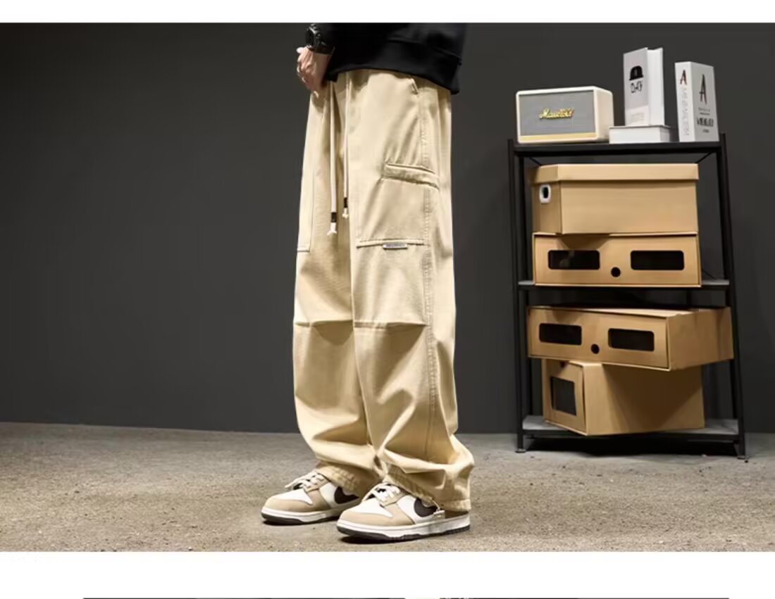 남성용 작업복 봄 신작 루즈한 드로스트링 스트레이트 팬츠 스플라이스 아메리칸 트렌디 브랜드 핸섬 파라트리저 팬츠 2025 봄, 가을스토어 가기