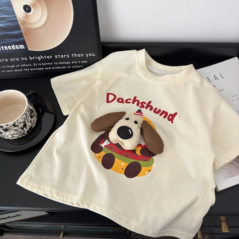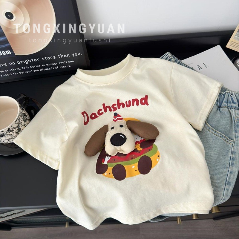 Tongxingyuan 어린이 반팔 티셔츠 여름 새 스타일 소년 소녀 수직 인형 귀여운 탑베이스 셔츠 한국 티셔츠스토어 가기