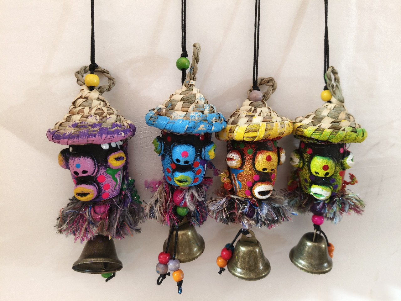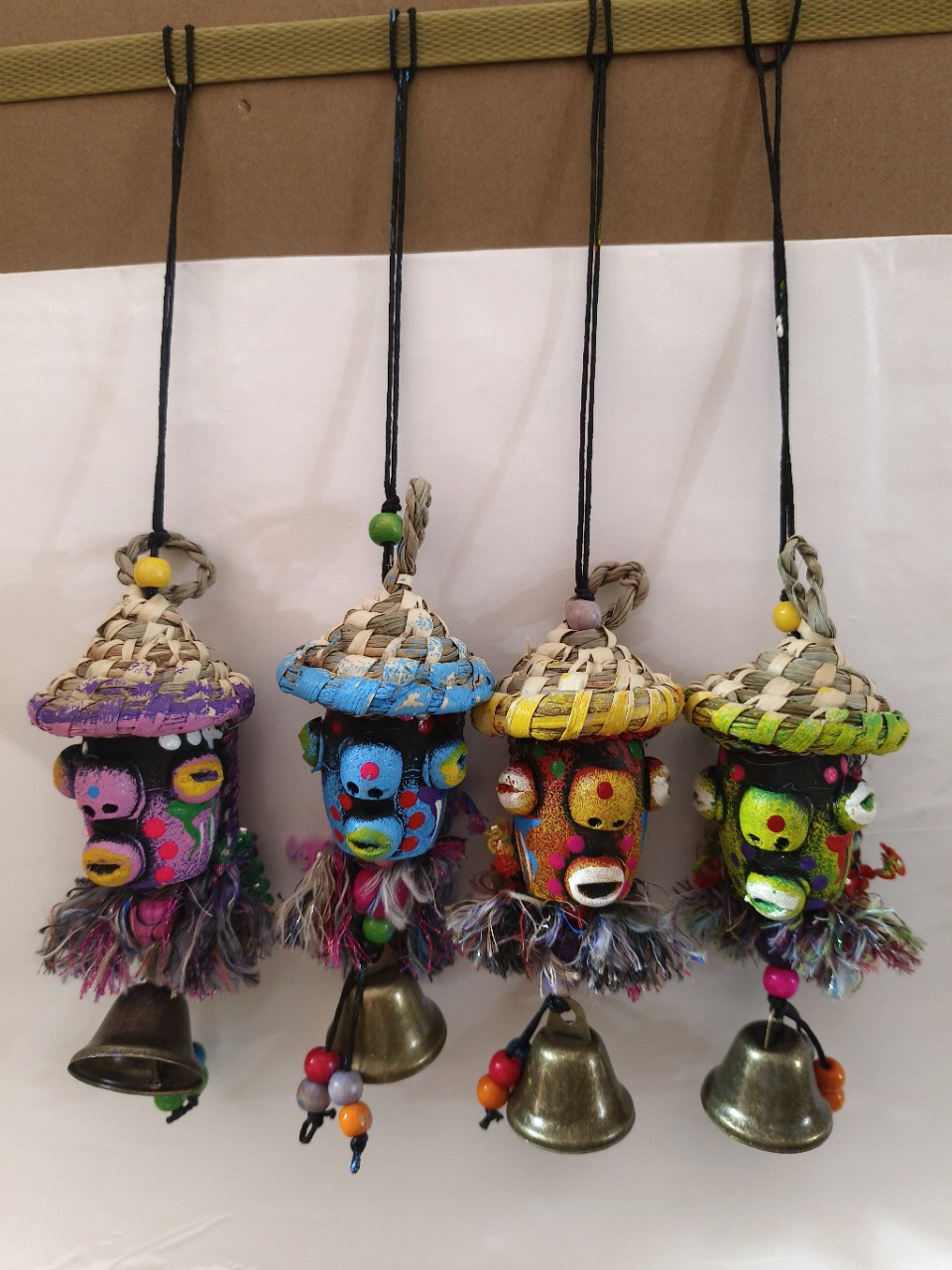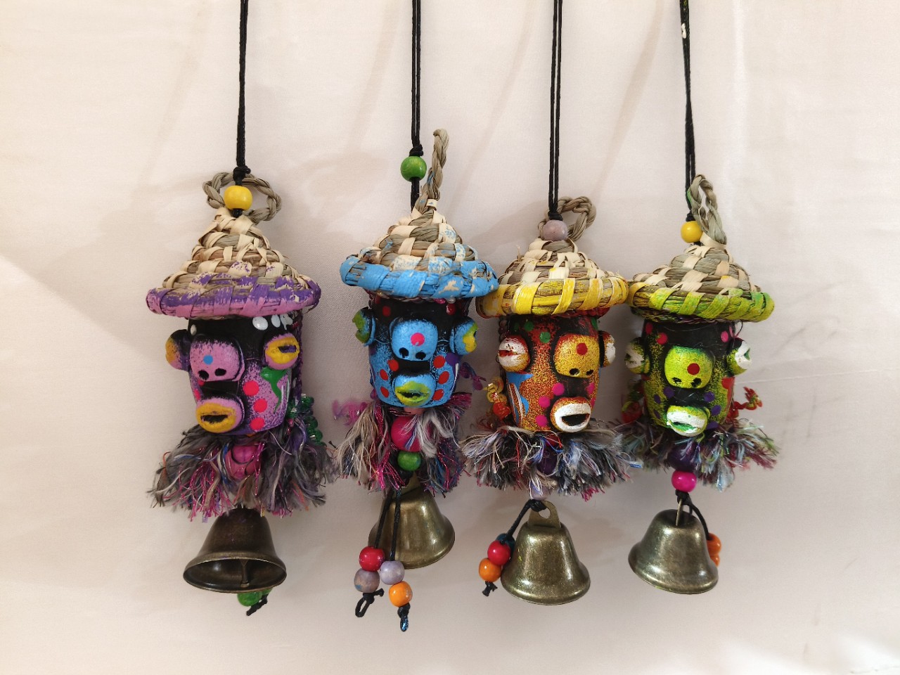 도매 밀짚 모자 삼키기 입 바람 차임 민족 수제 나무 벨 바 펜던트 창조적 인 성격 액세서리 작은 선물