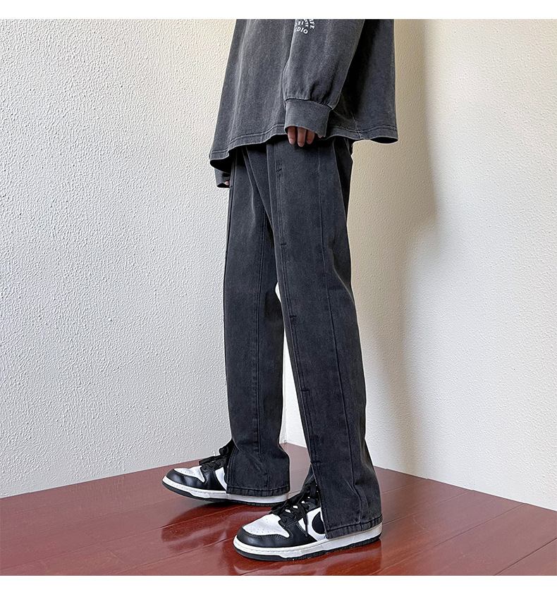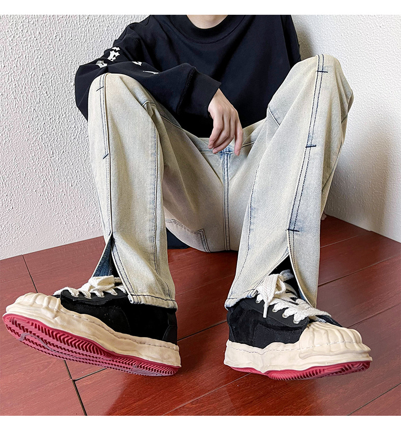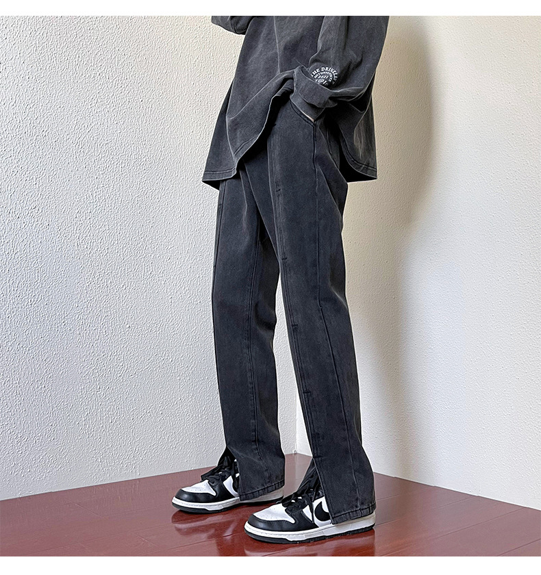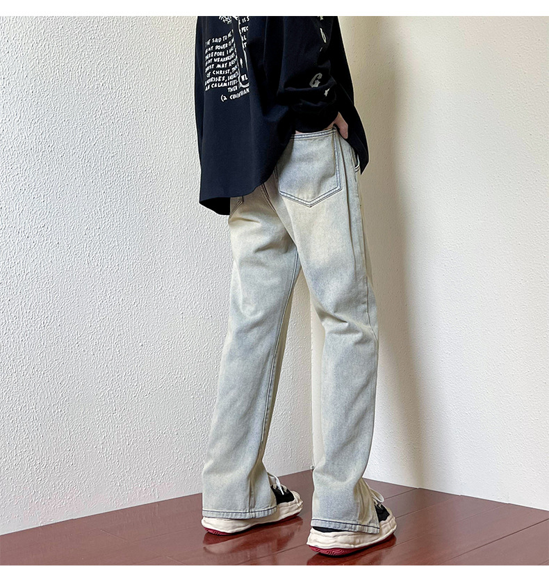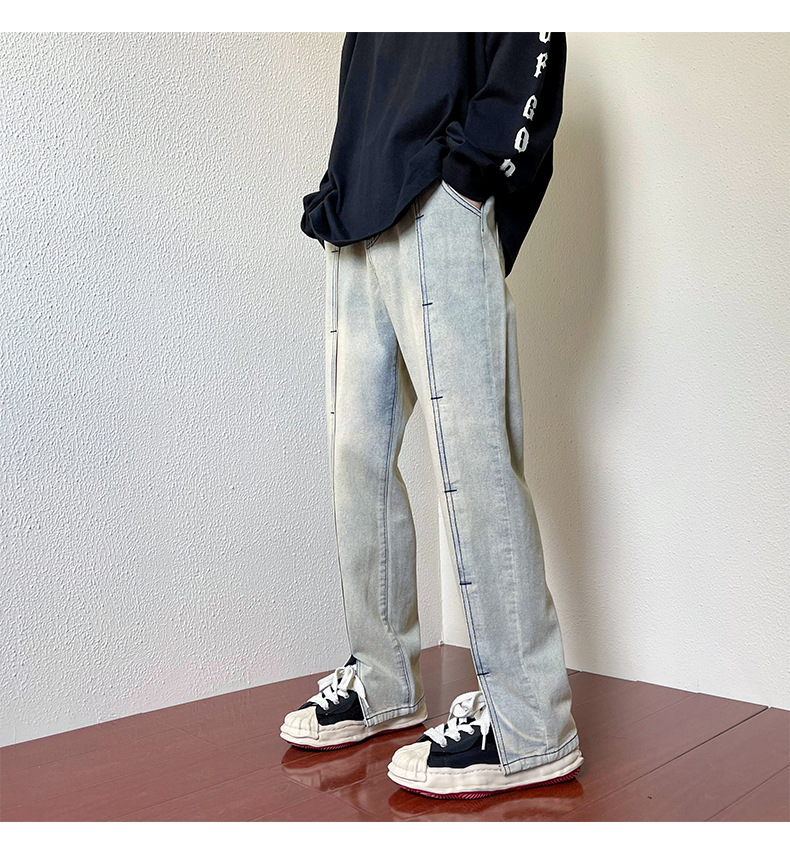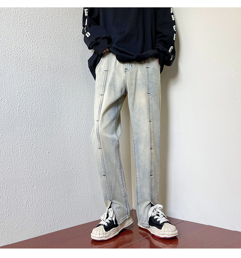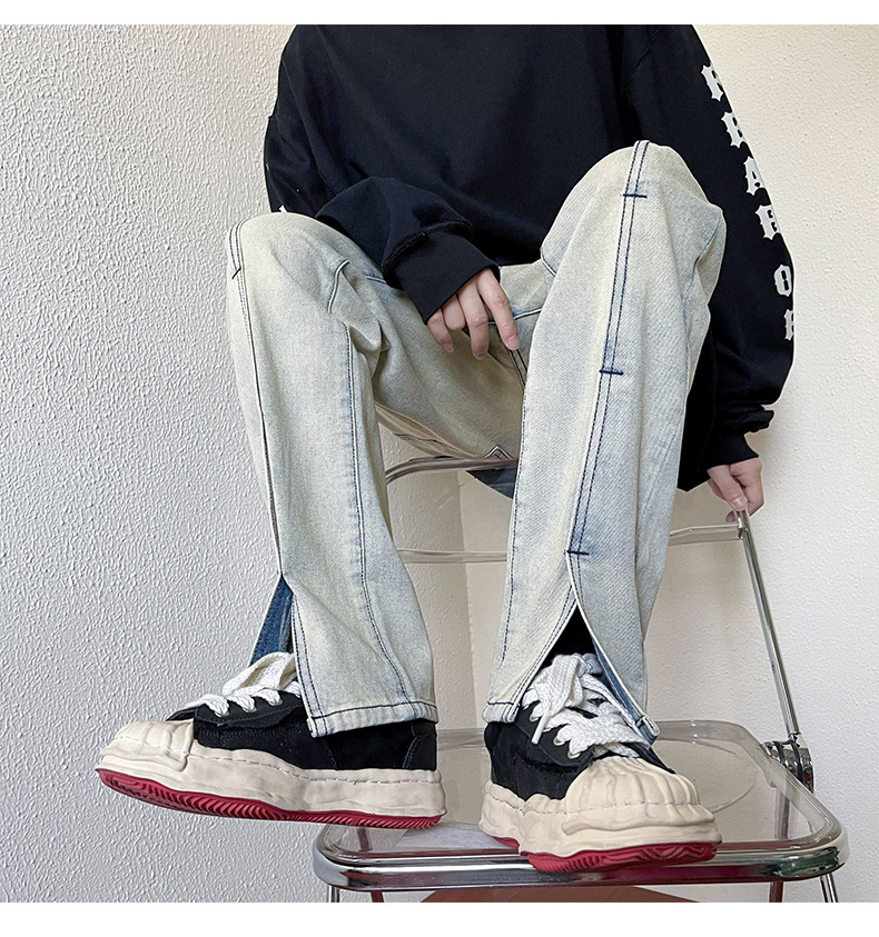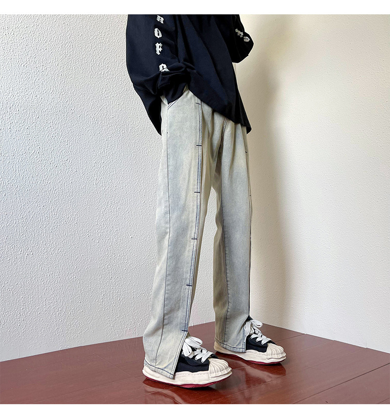 빈티지 미국식 분위기 팬츠, 하이 스트리트 패션 브랜드 고민 스트레이트 슬림 청바지 남성 스플릿 마이크로 팬츠스토어 가기