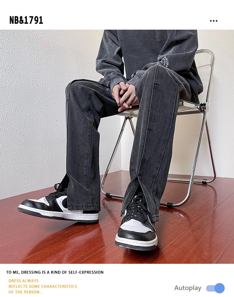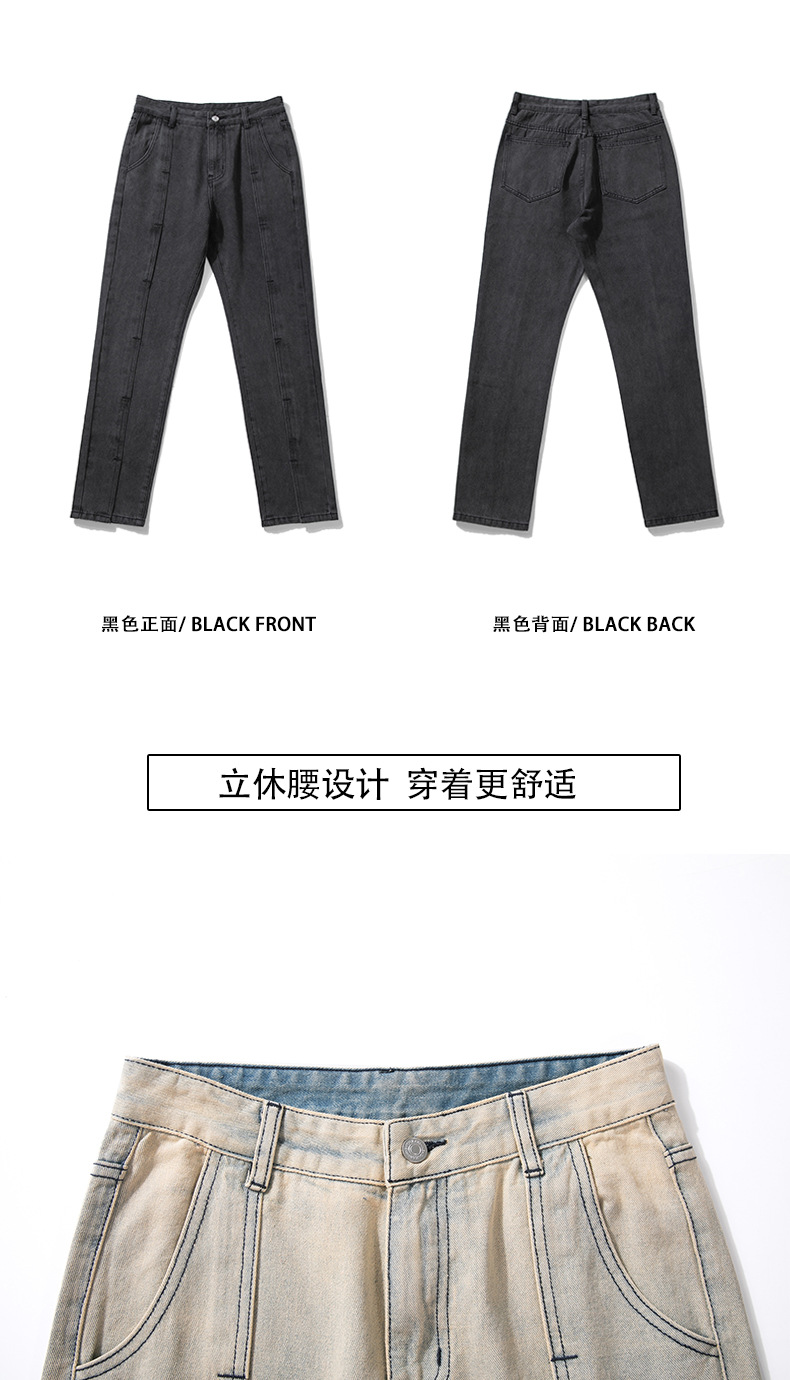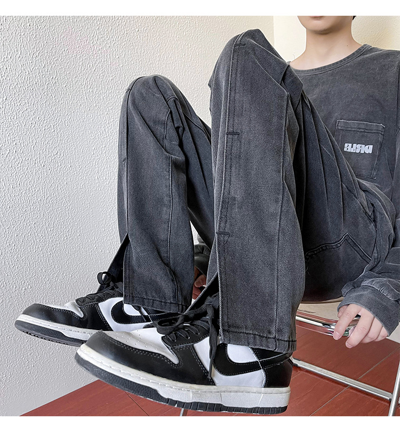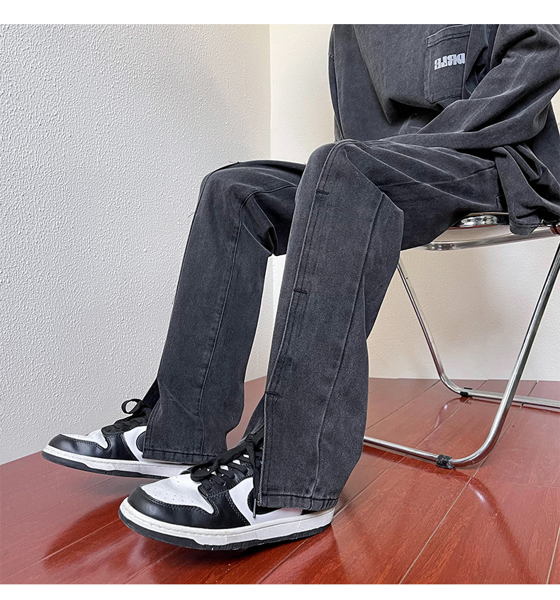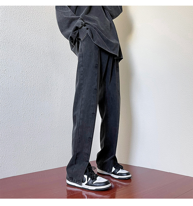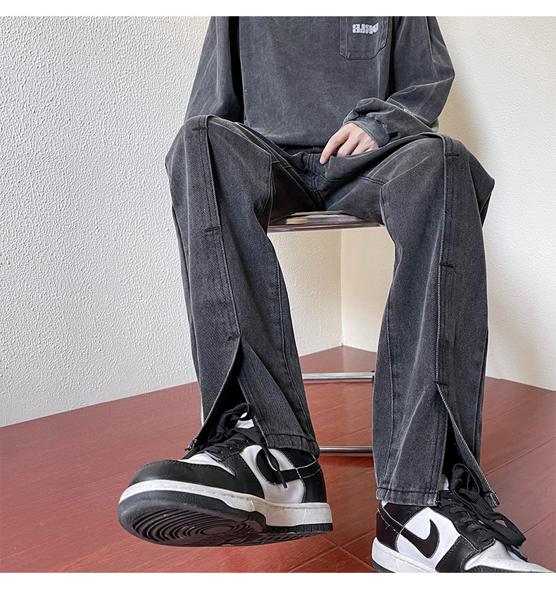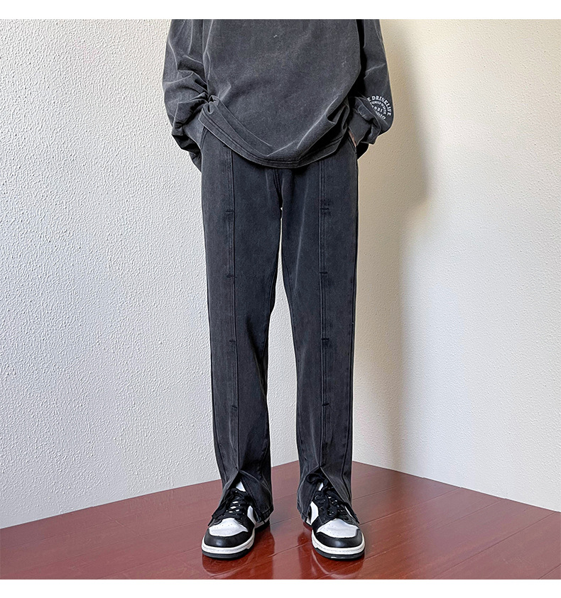 빈티지 미국식 분위기 팬츠, 하이 스트리트 패션 브랜드 고민 스트레이트 슬림 청바지 남성 스플릿 마이크로 팬츠스토어 가기