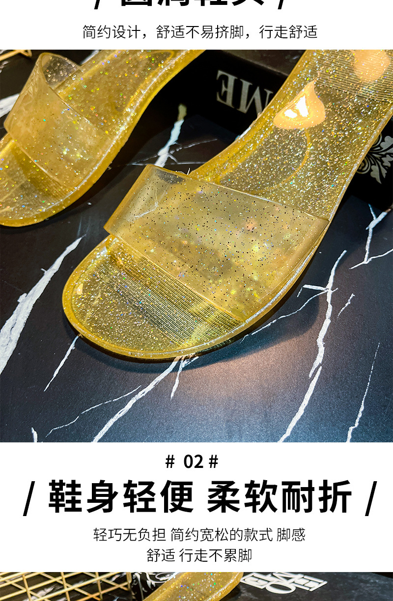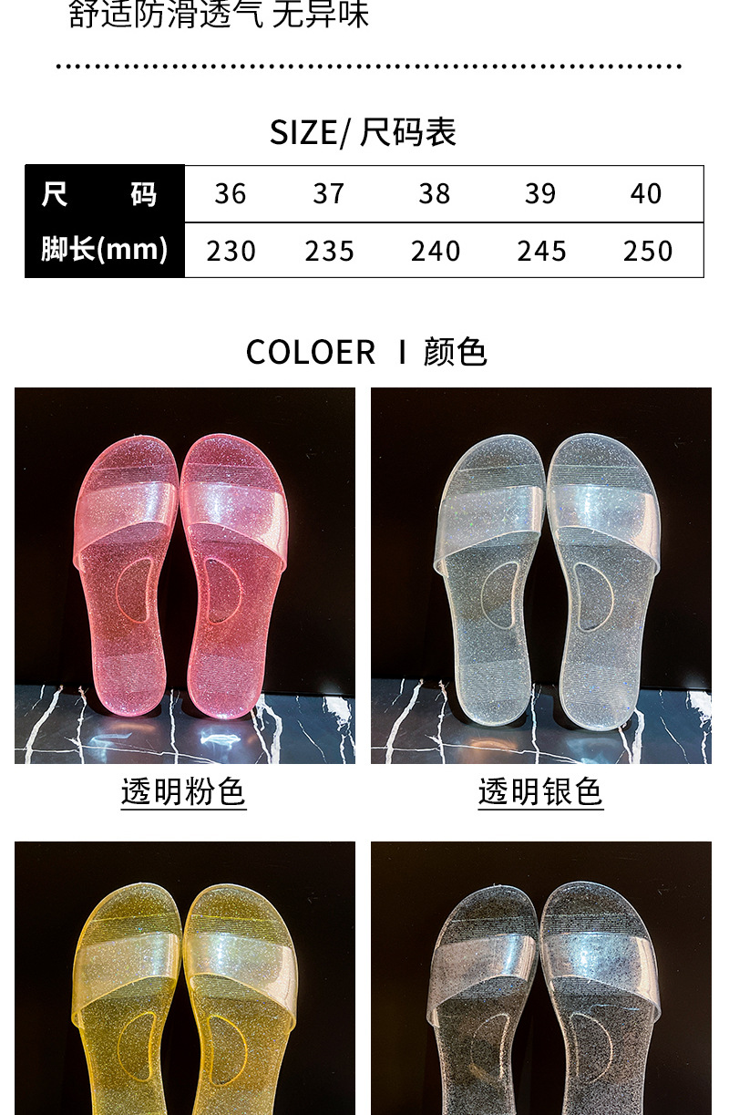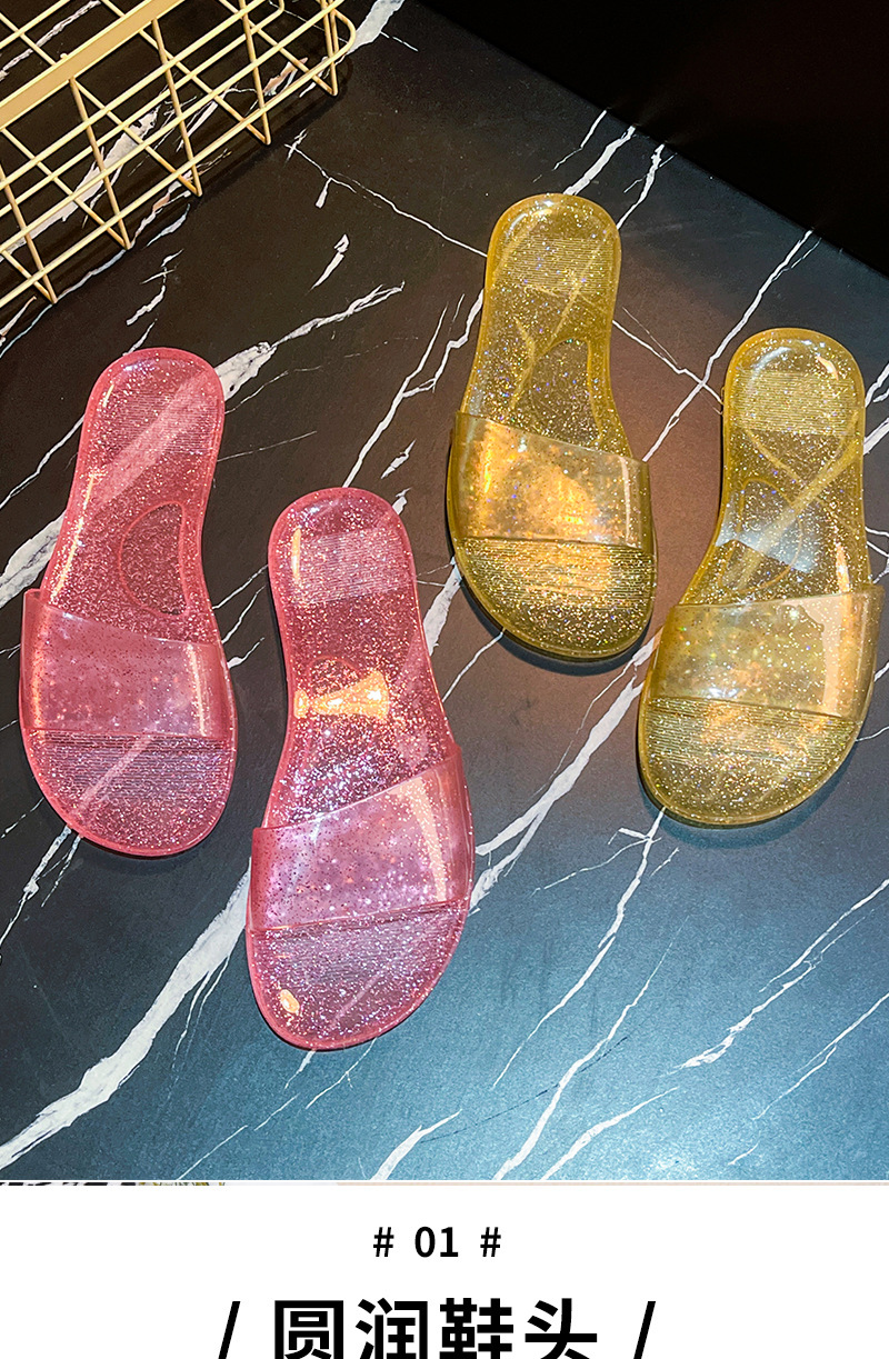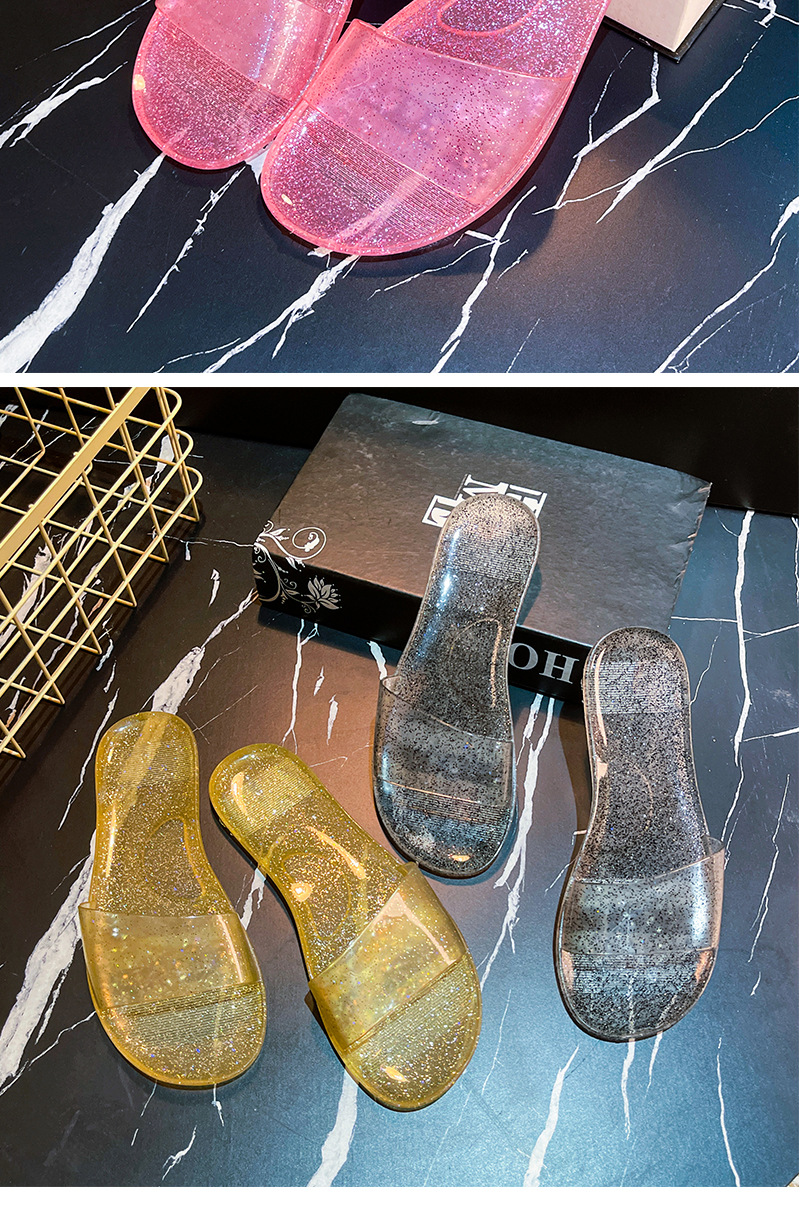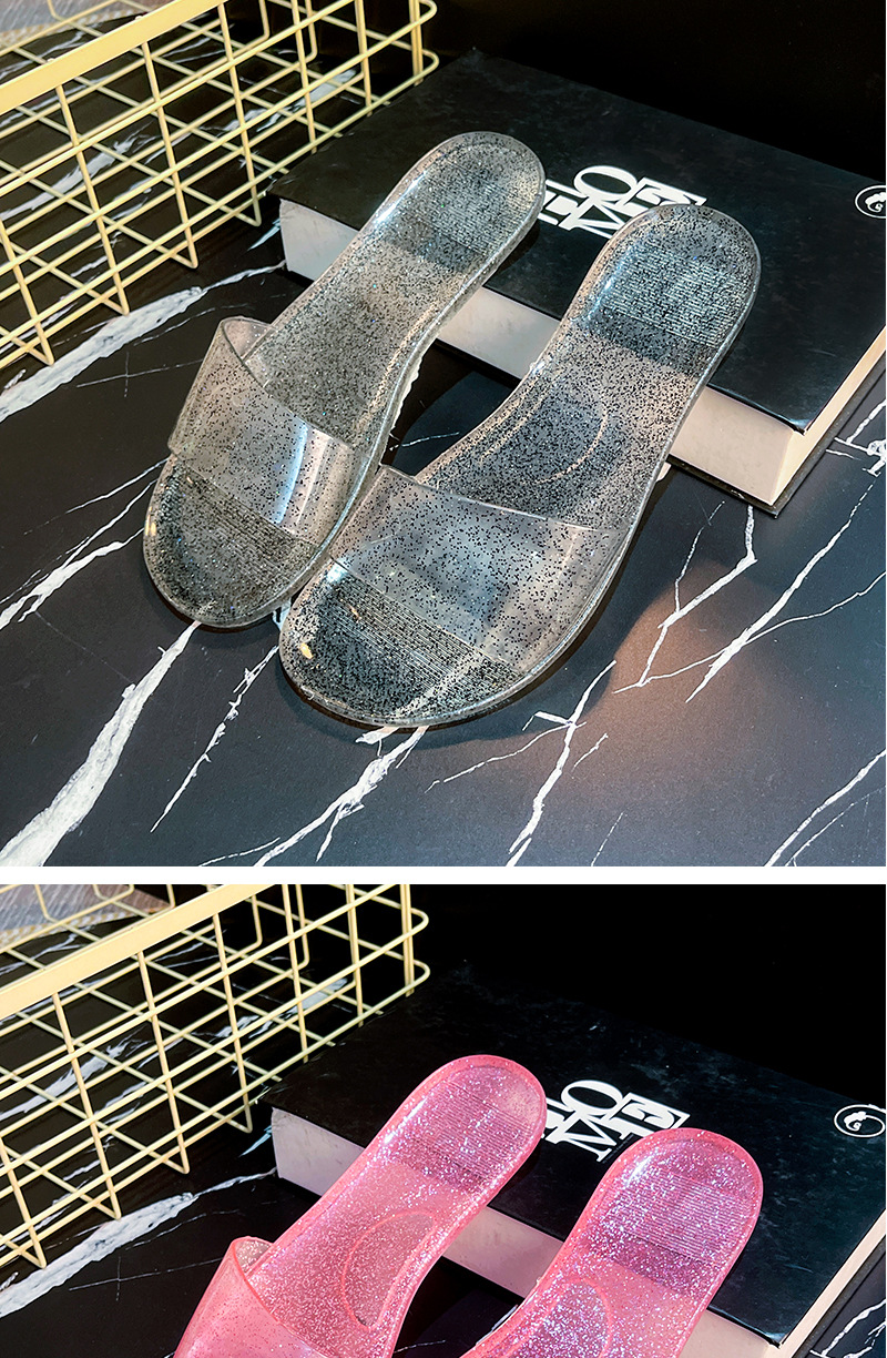 크리스탈 슬리퍼 여성용 플라스틱 투명 접착제 냉동 저발 한국 스타일 실내 홈 여름 하루 원피스 몰딩