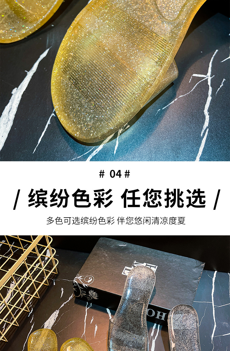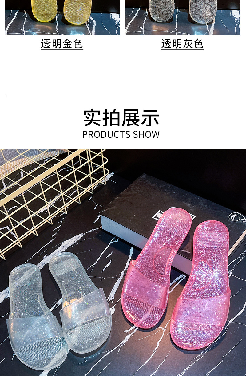 크리스탈 슬리퍼 여성용 플라스틱 투명 접착제 냉동 저발 한국 스타일 실내 홈 여름 하루 원피스 몰딩스토어 가기