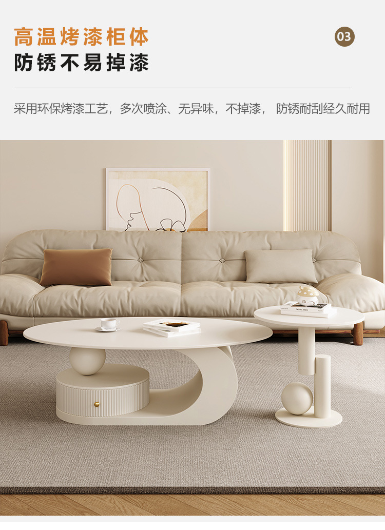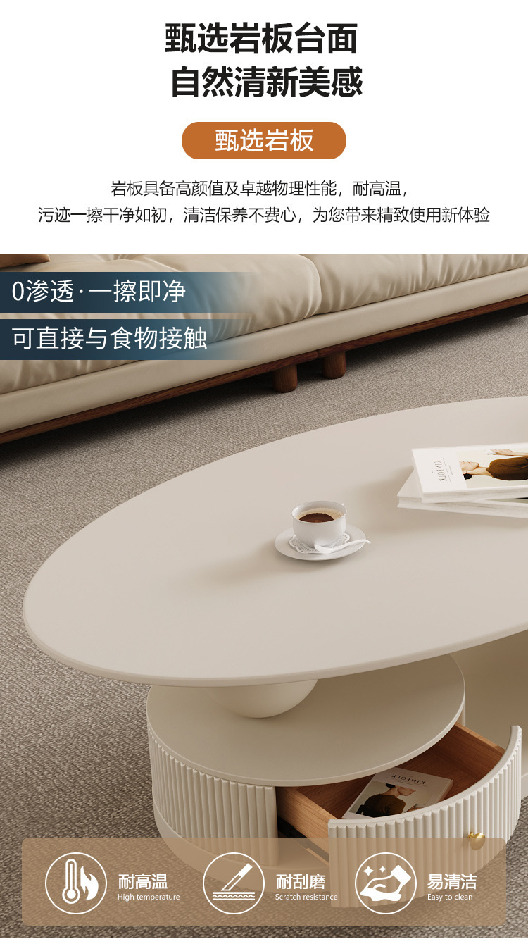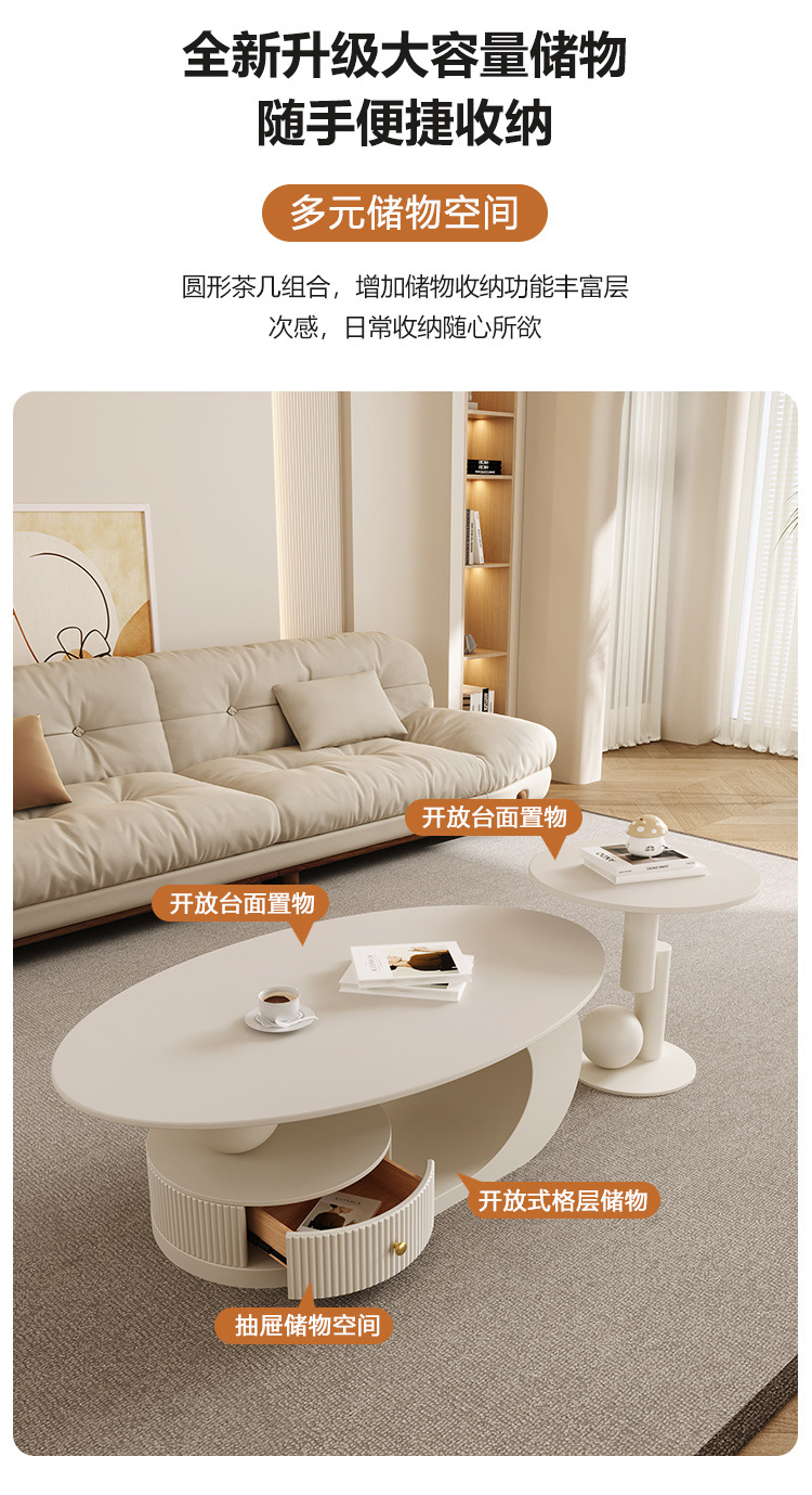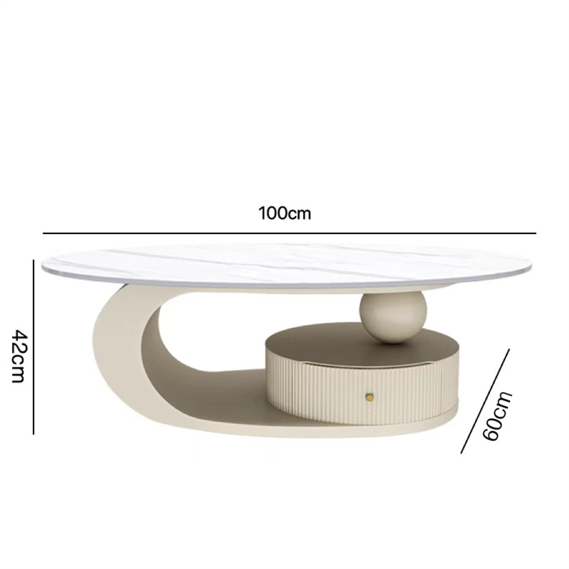 • 크림 커피 테이블 100*60*42(캐비닛 포함) 광택 슬레이트