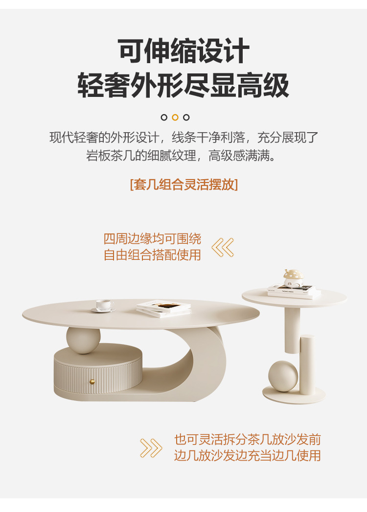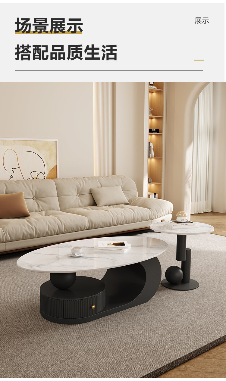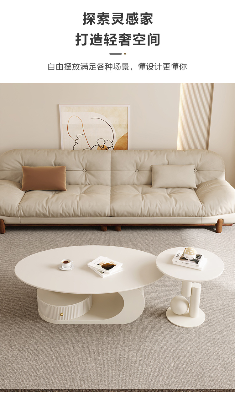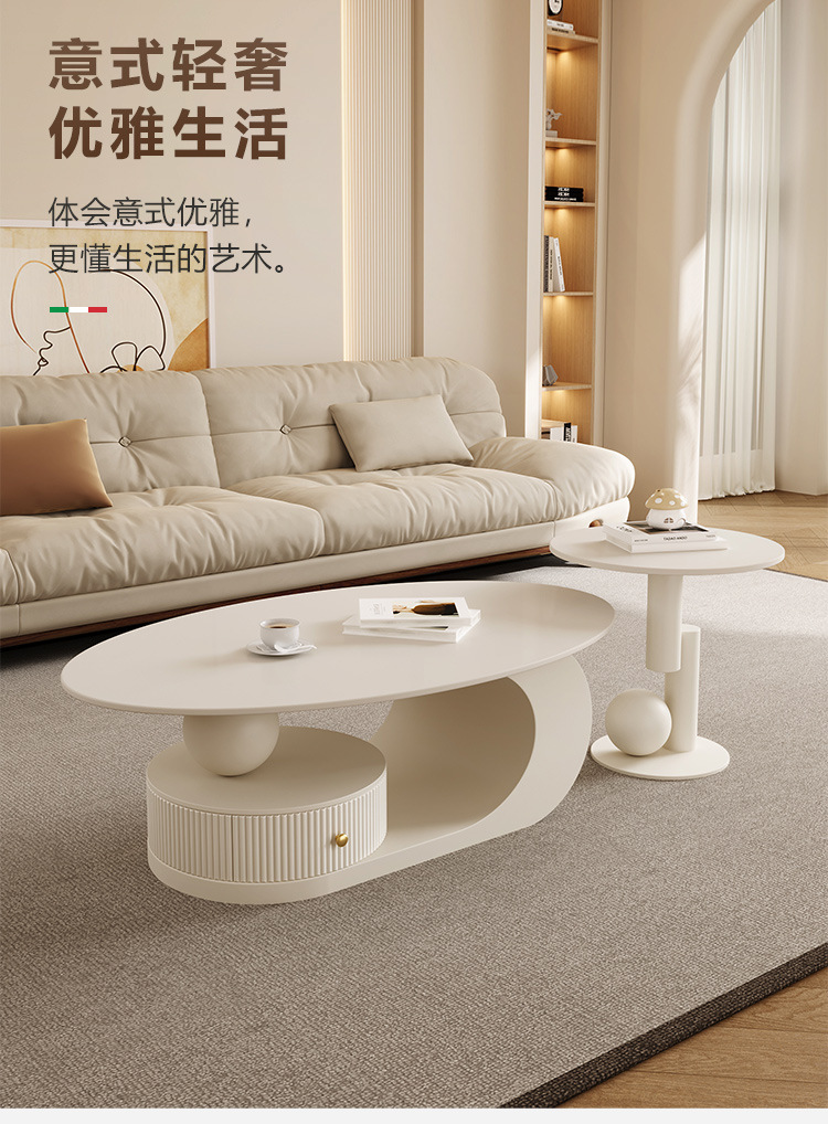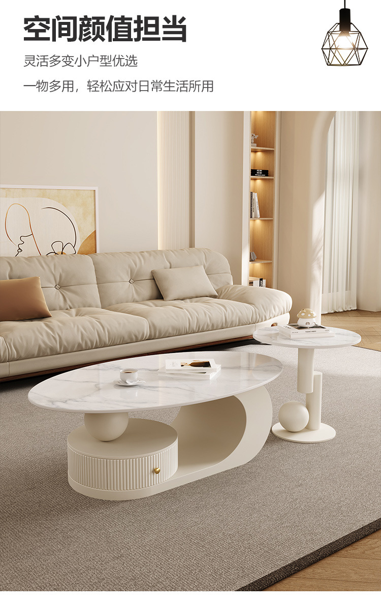 가벼운 럭셔리 록 보드 커피 테이블 거실 홈 2024 새로운 크림 스타일 이탈리아 차 테이블 작은 아파트 간단한 사이드 테이블 조합스토어 가기