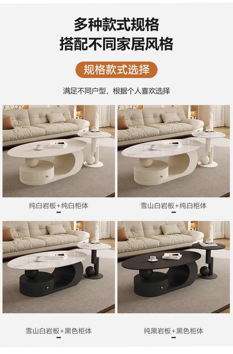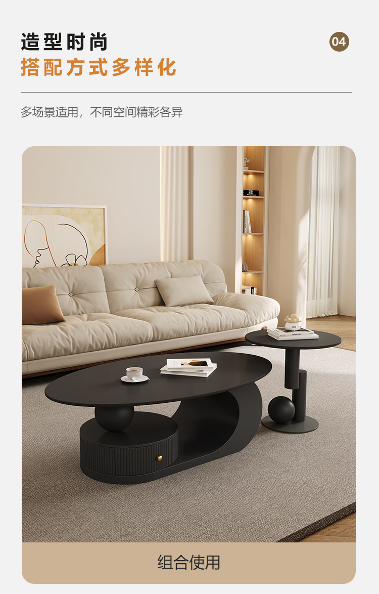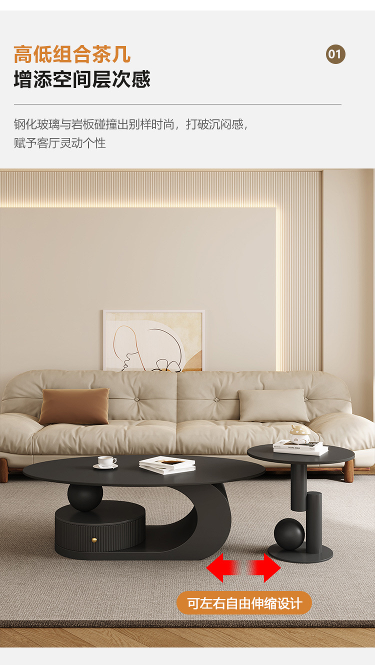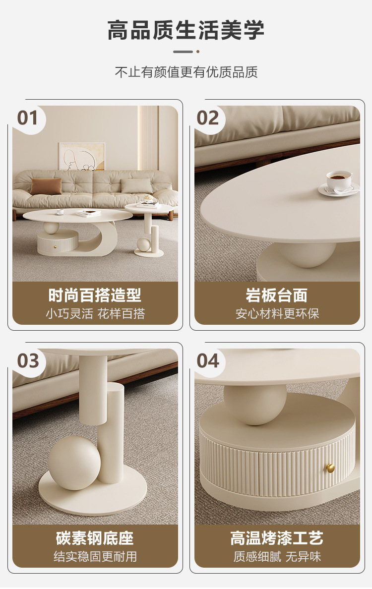 가벼운 럭셔리 록 보드 커피 테이블 거실 홈 2024 새로운 크림 스타일 이탈리아 차 테이블 작은 아파트 간단한 사이드 테이블 조합스토어 가기