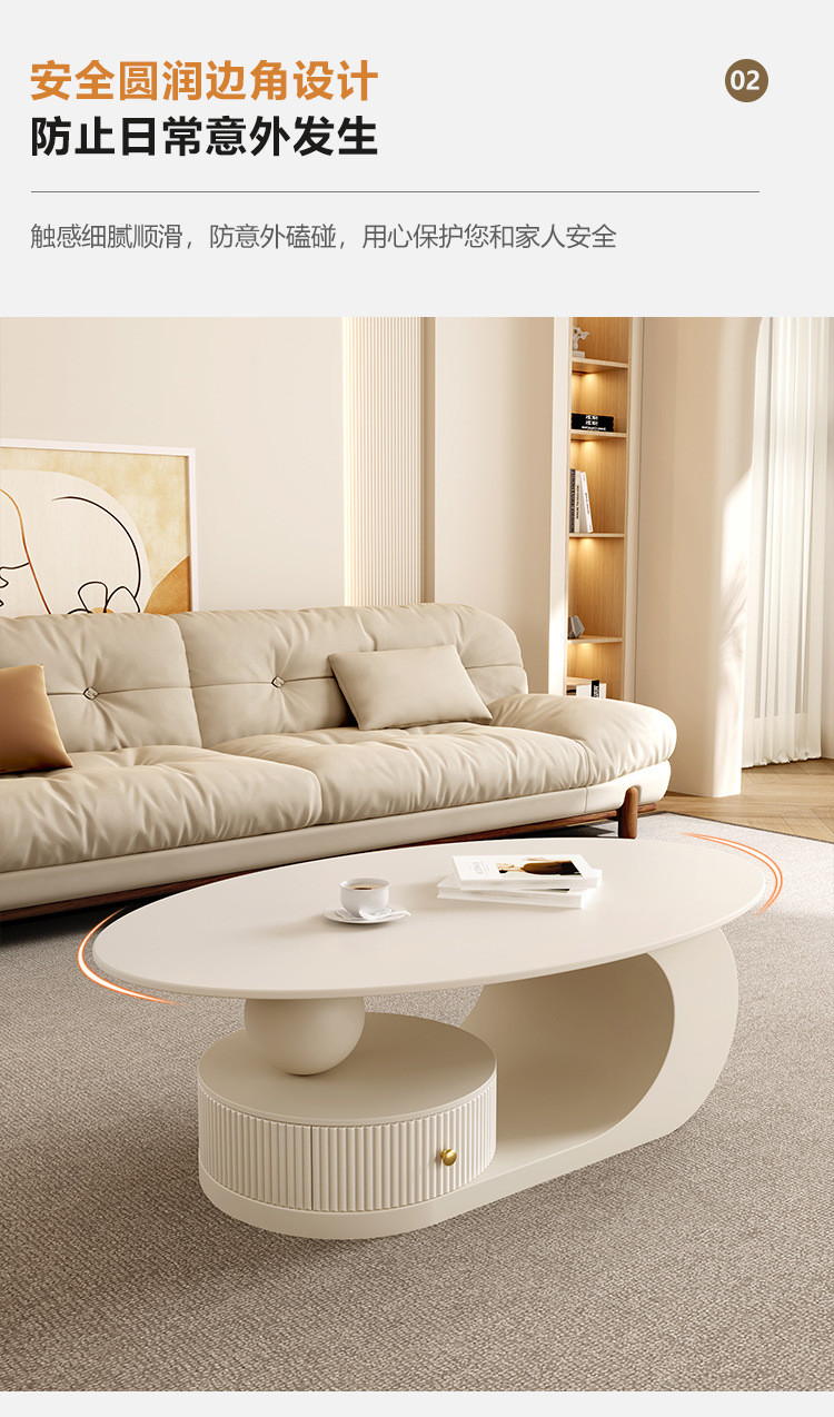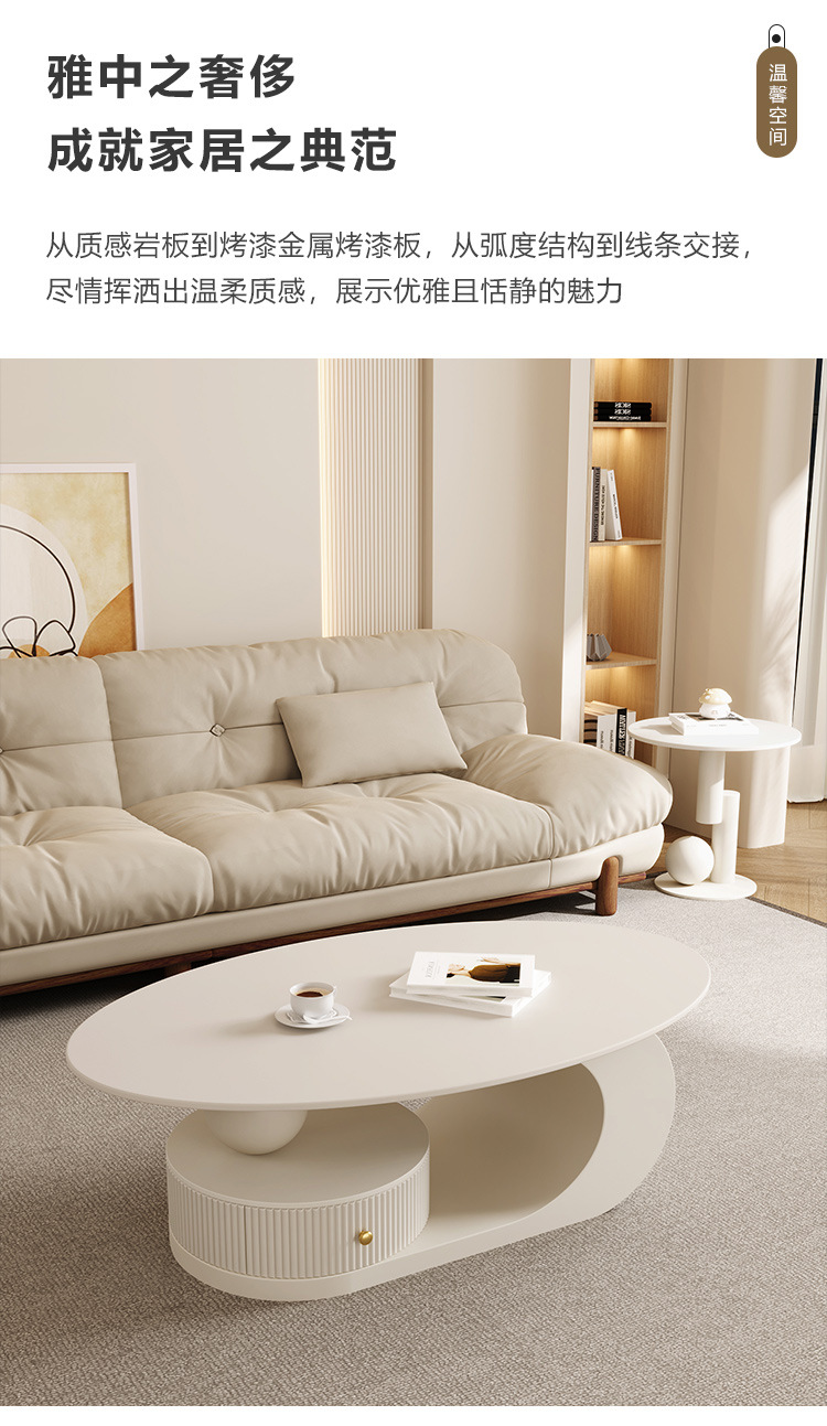 • 크림 커피 테이블 130*70*42(캐비닛 포함) 광택 슬레이트