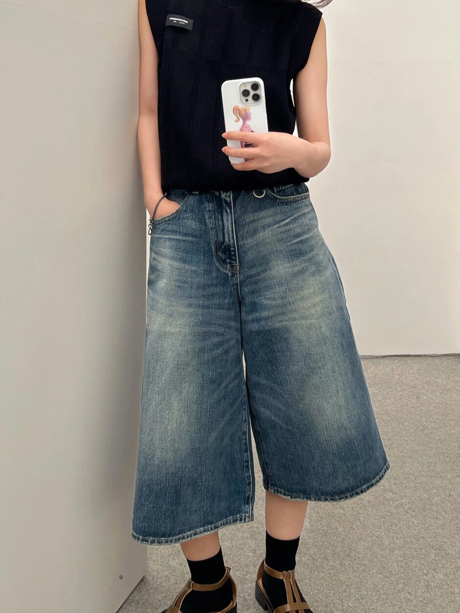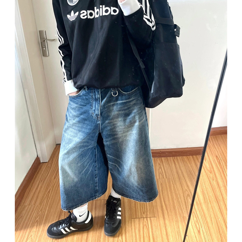 여성용 아메리칸 레트로 워싱 캣츠비 와이드 레그 데님 반바지 2025 뉴 여름 루즈한 5부 중간 길이 바지 7부 바지스토어 가기