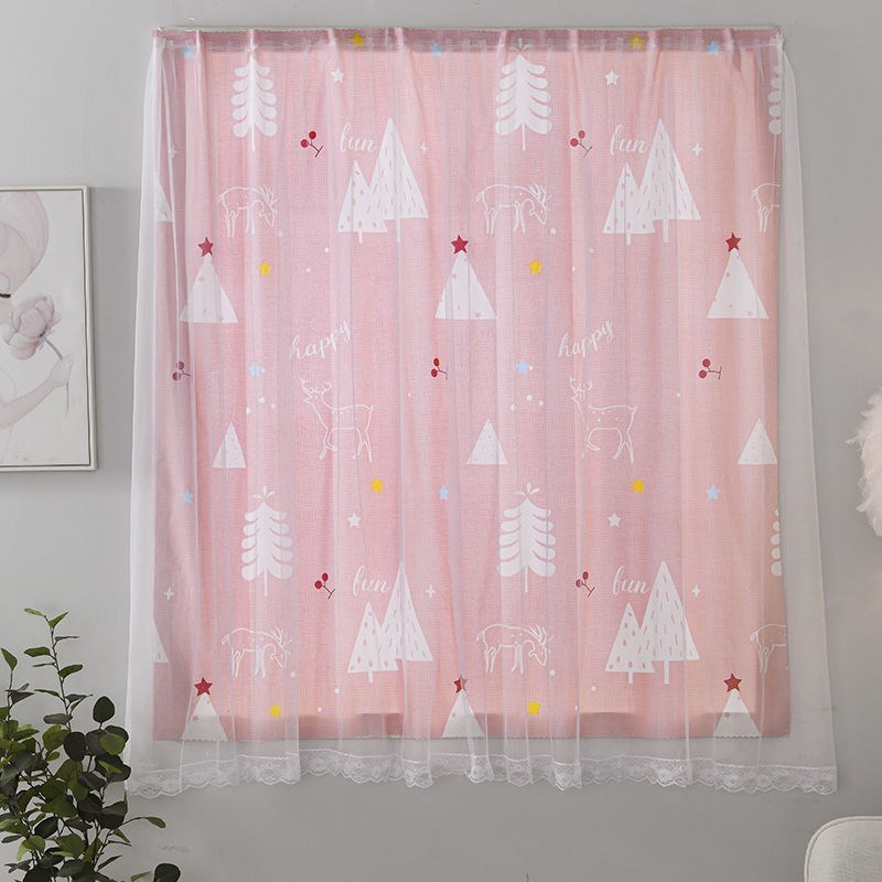 펀치없는 자체 접착 커튼 원단 침실 홈 쉐이딩 후크 벨크로 간단한 냉방 앞 유리 짧은 커튼 절반 커튼스토어 가기