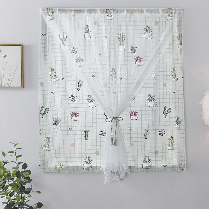 펀치없는 자체 접착 커튼 원단 침실 홈 쉐이딩 후크 벨크로 간단한 냉방 앞 유리 짧은 커튼 절반 커튼
