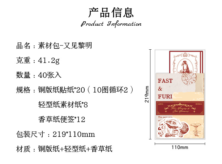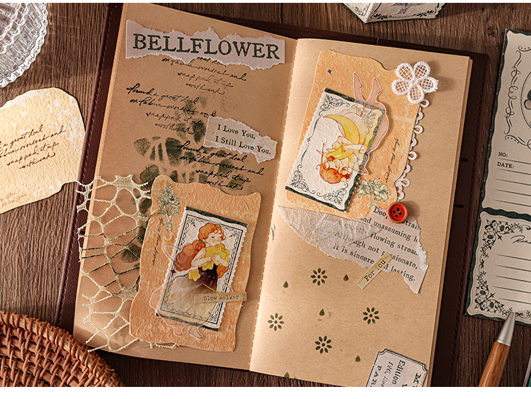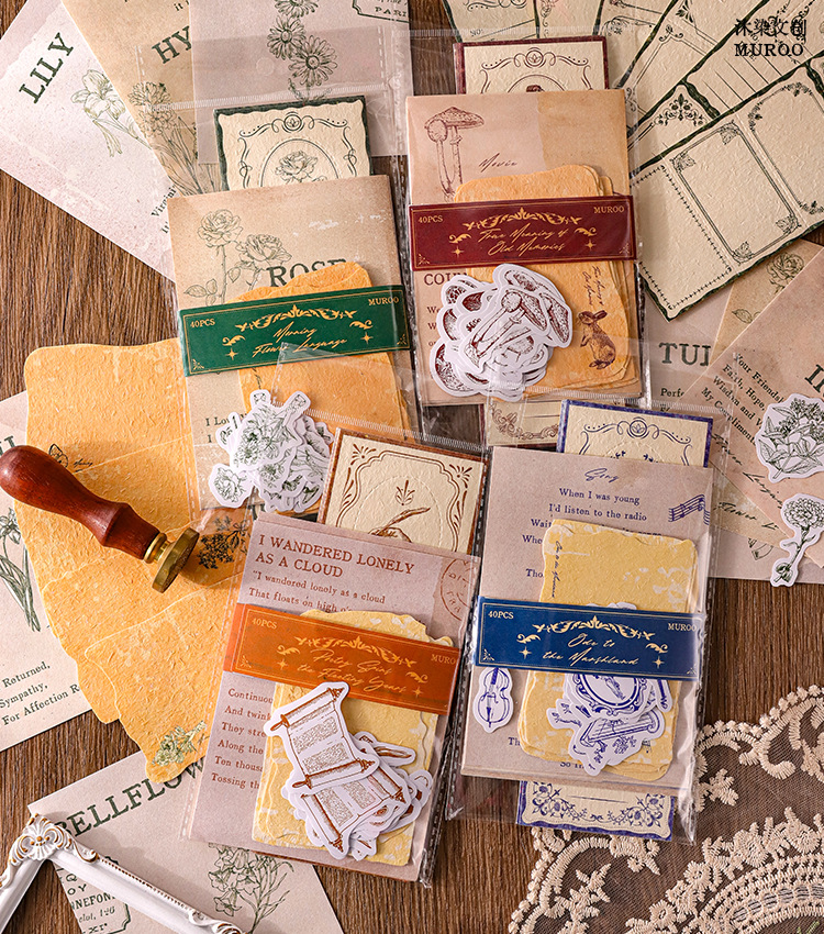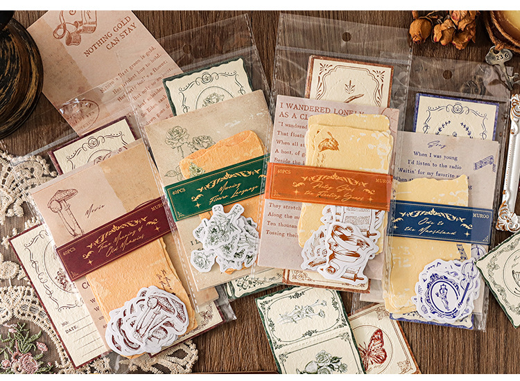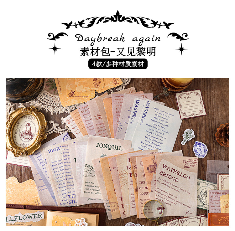 Mu Ran 핸드북 소재 종이는 새벽 복고풍 문학 및 아트 기본 종이 종이 종이 장식 스티커 종이 재료 가방을 참조하십시오스토어 가기
