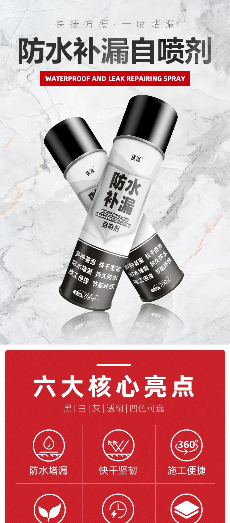 방수 및 누출 수리 스프레이 풀 누출 방지 및 누출 수리 킹 크랙 실내 수도관 재료 침투 가능한 철관 벽스토어 가기