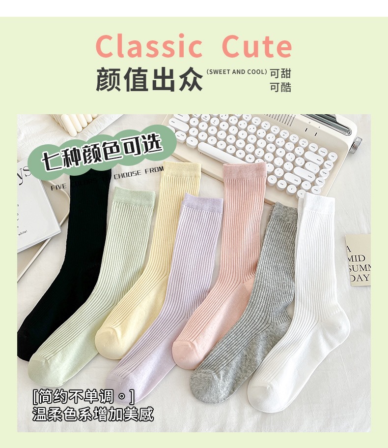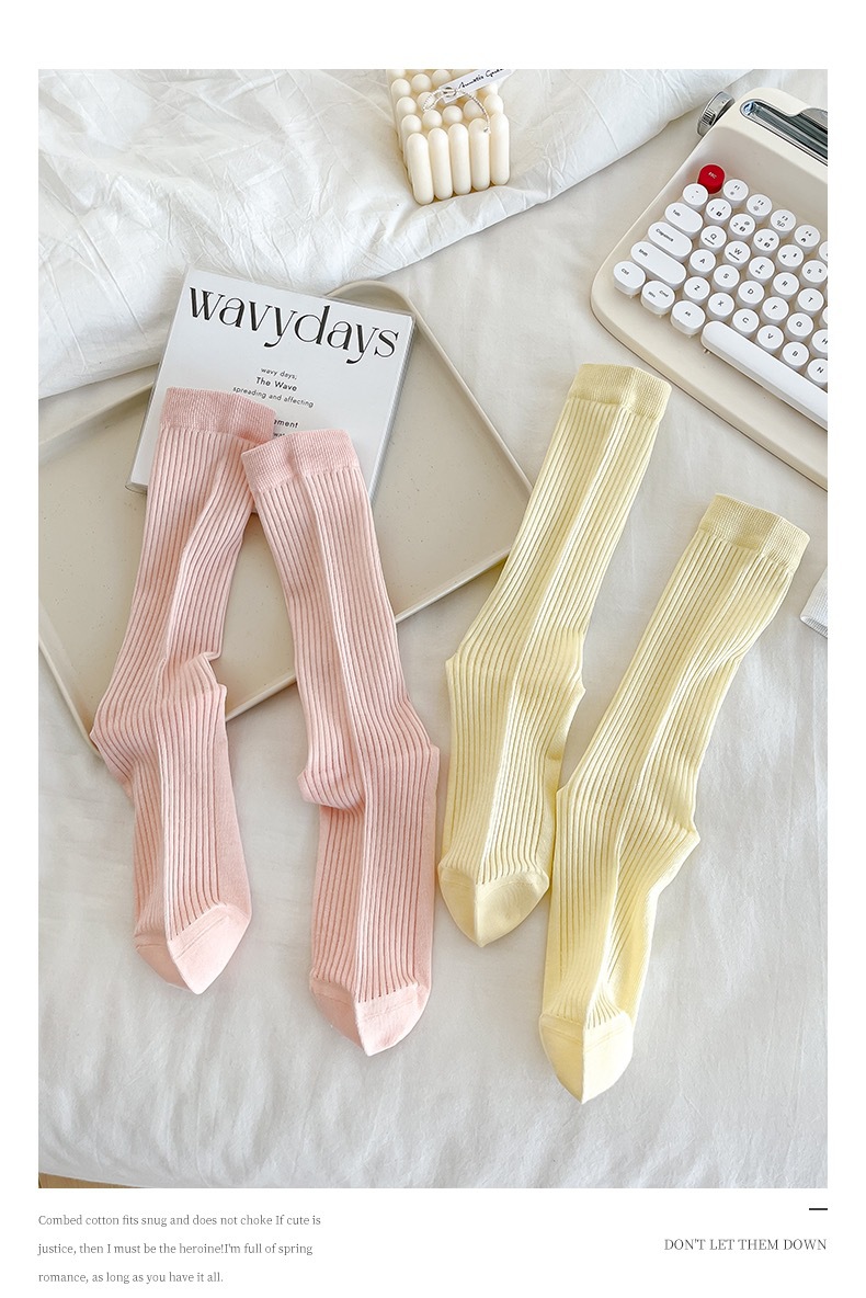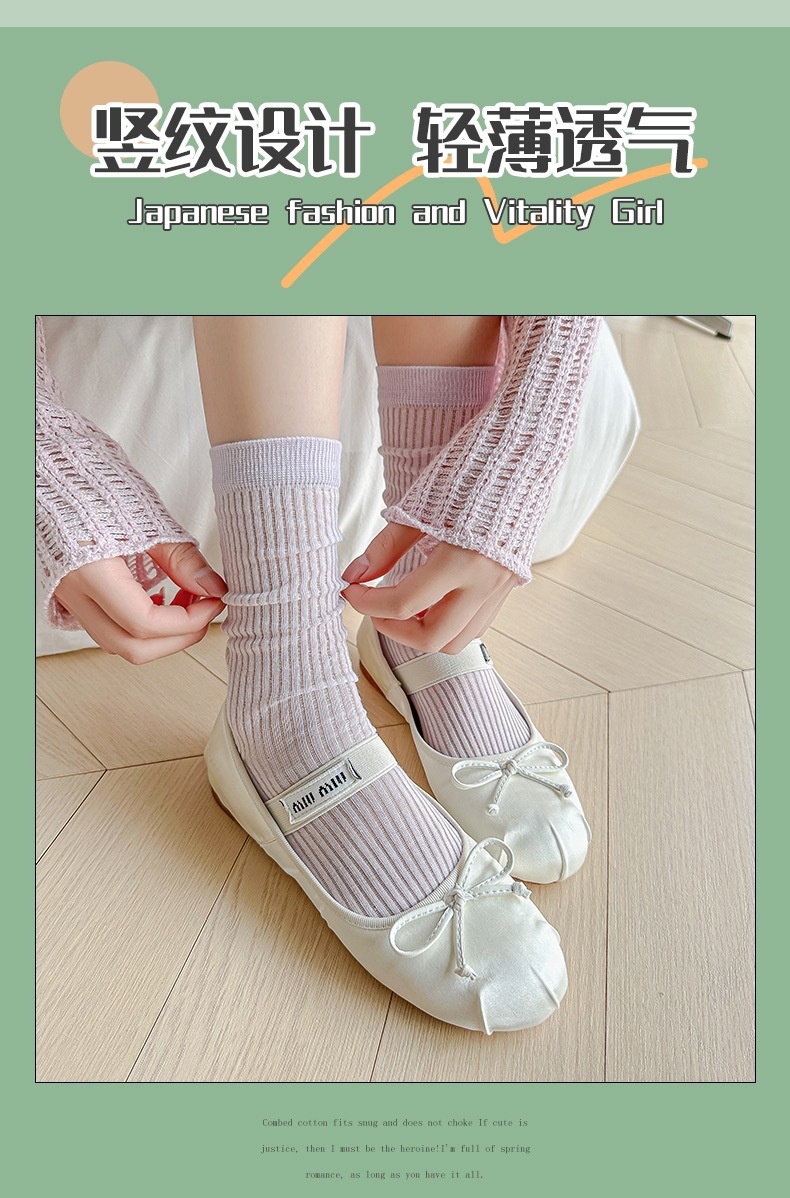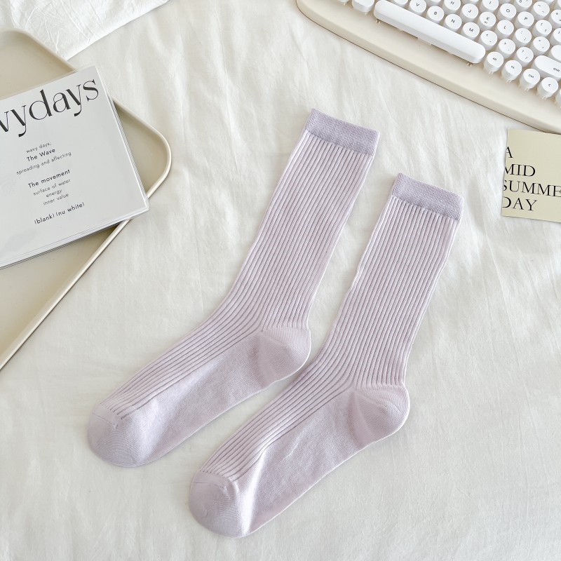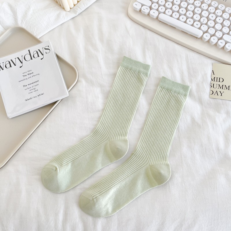 쌓인 양말 여성용 여름 얇은 크리미 수직 코튼 중간 길이 양말 인터넷 인기 쇼인 스타일 뼈없는 스타킹스토어 가기