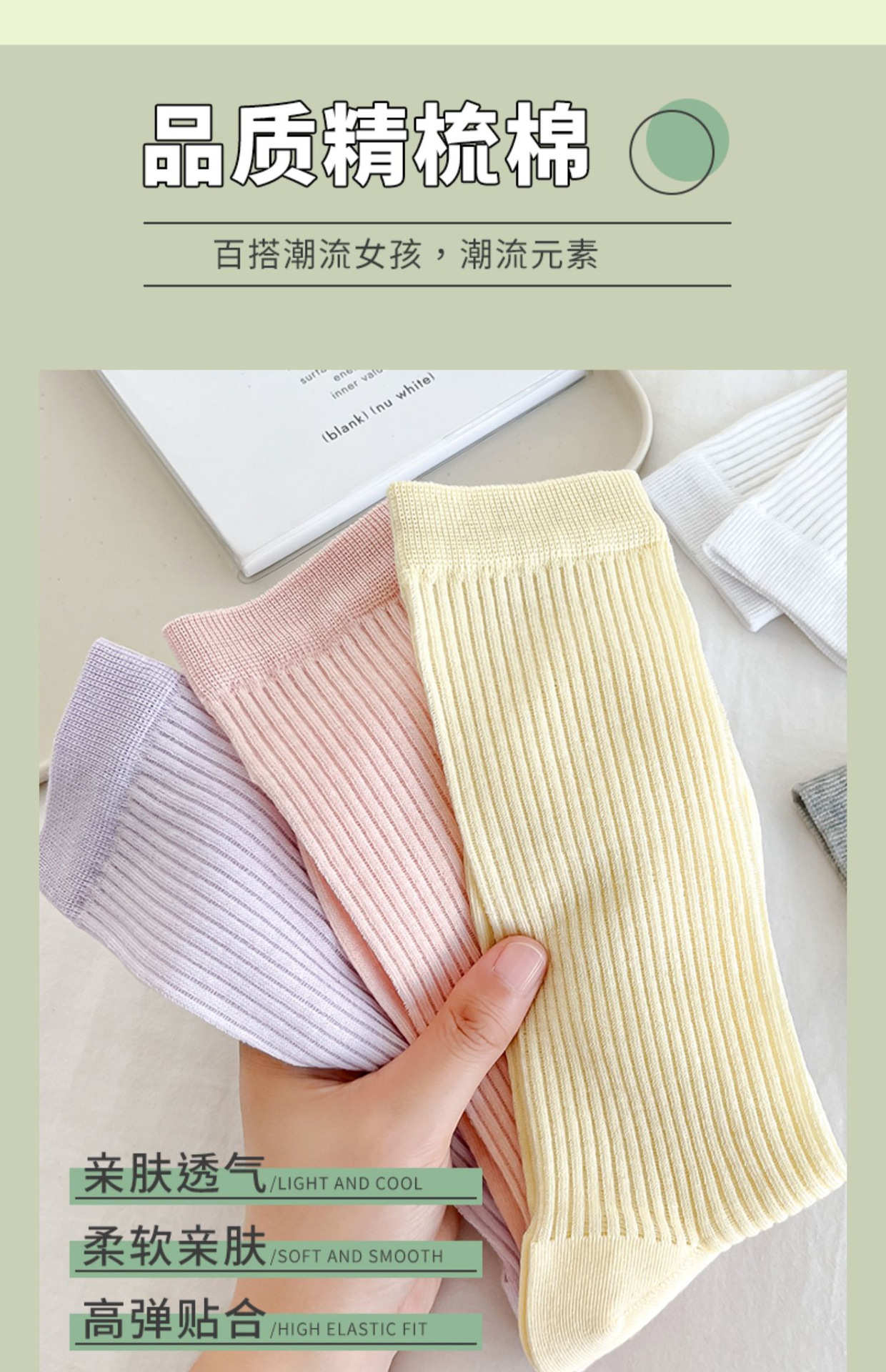 쌓인 양말 여성용 여름 얇은 크리미 수직 코튼 중간 길이 양말 인터넷 인기 쇼인 스타일 뼈없는 스타킹