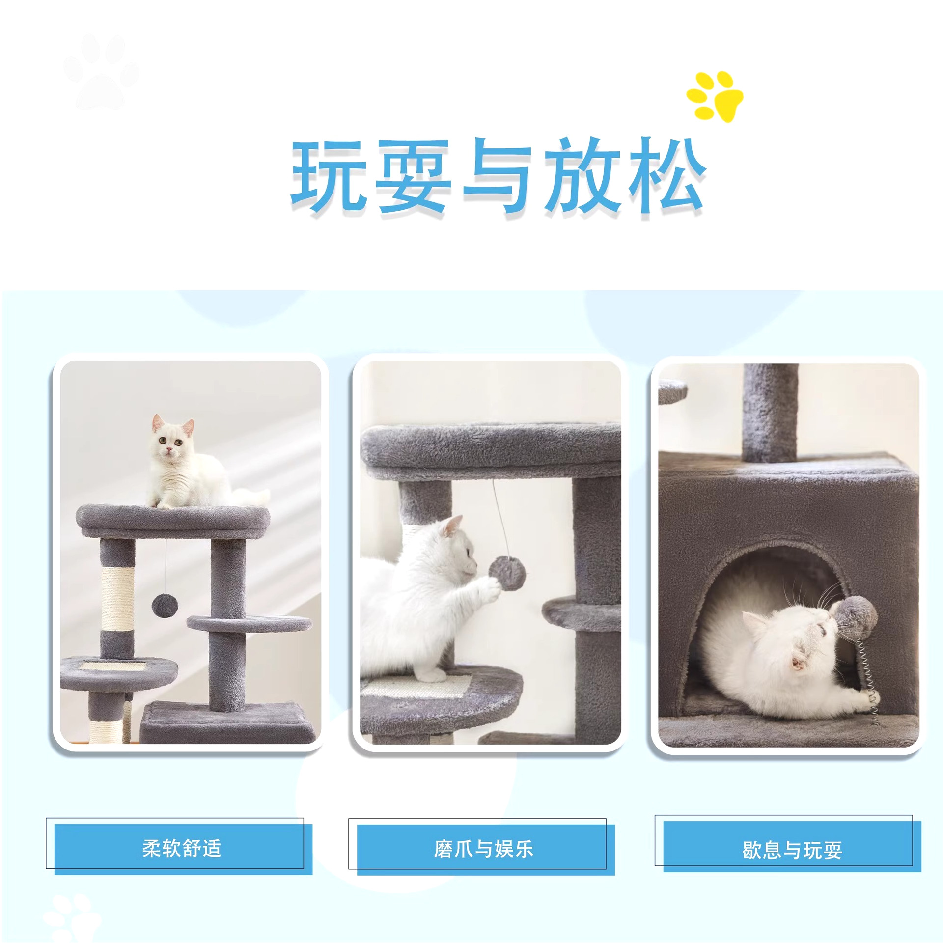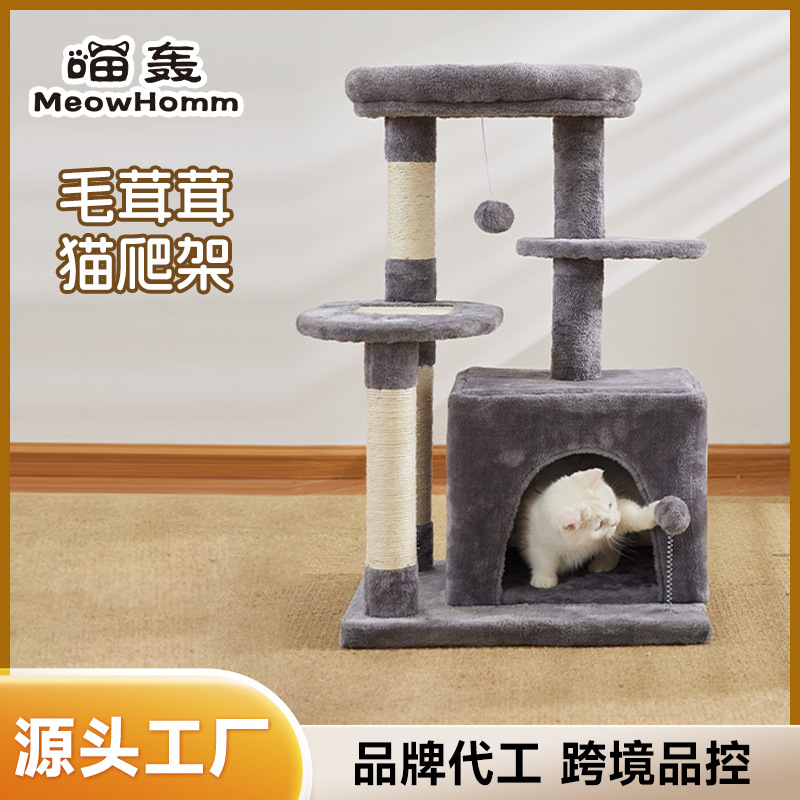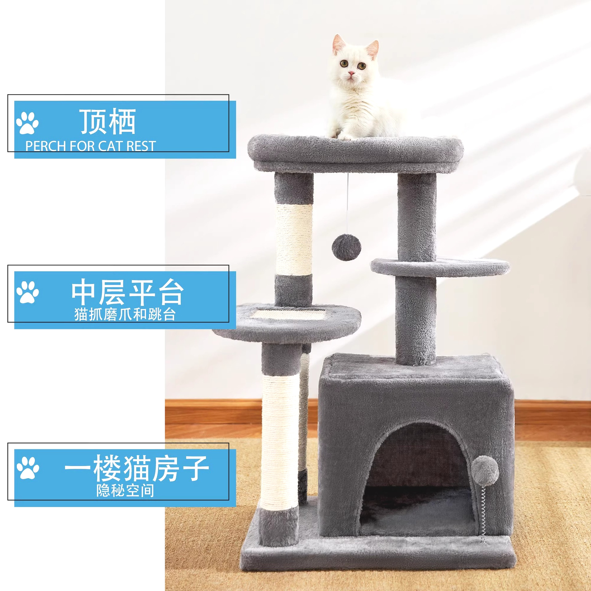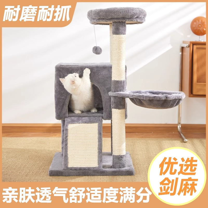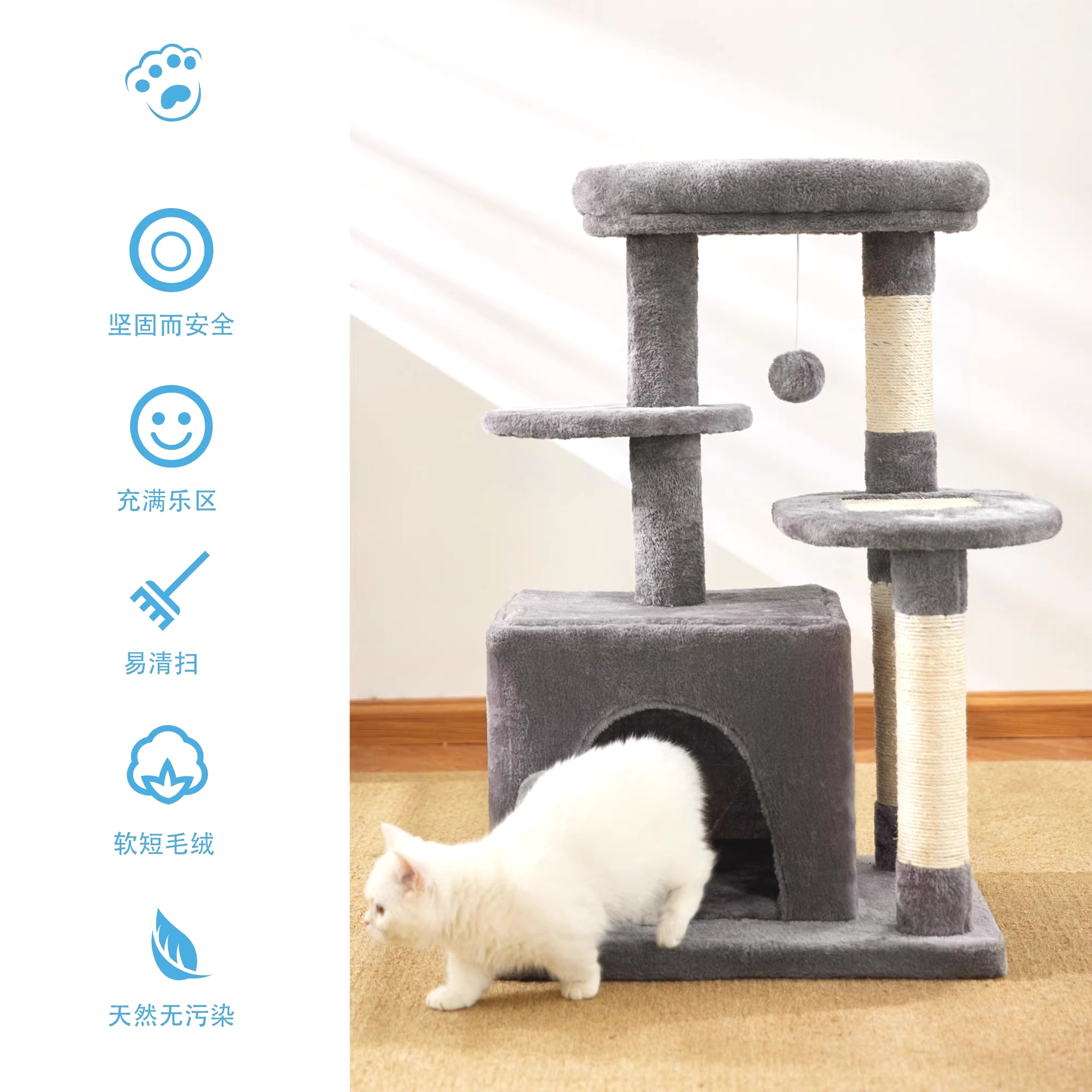 고양이 둥지, 나무 소재, 털이 있는 고양이 클라이밍 프레임, 긁힘에 강한 사이잘 소재, 흘러내림 없는 고양이 자가 놀이 점프 플랫폼, 일체형 소형 고양이 빌라스토어 가기