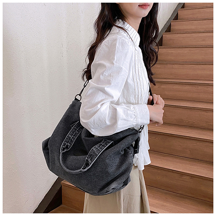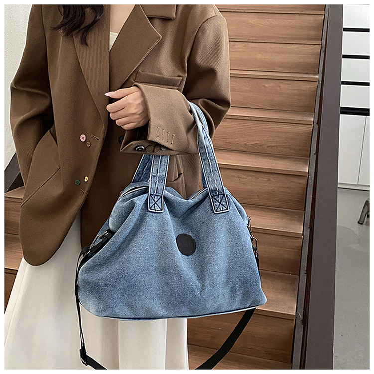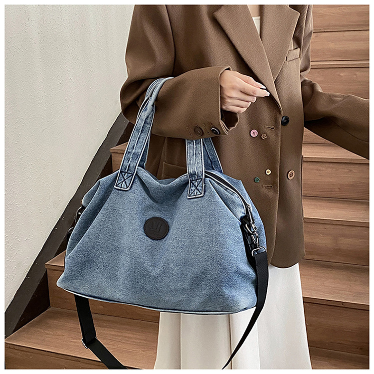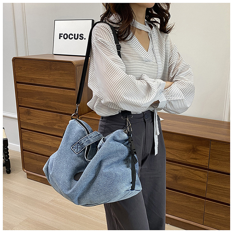 데님 수하물 가방 여성의 2025 새로운 유행 유행 캐주얼 어깨 가방 대용량 여행 가방 올 매치 크로스 바디 백스토어 가기