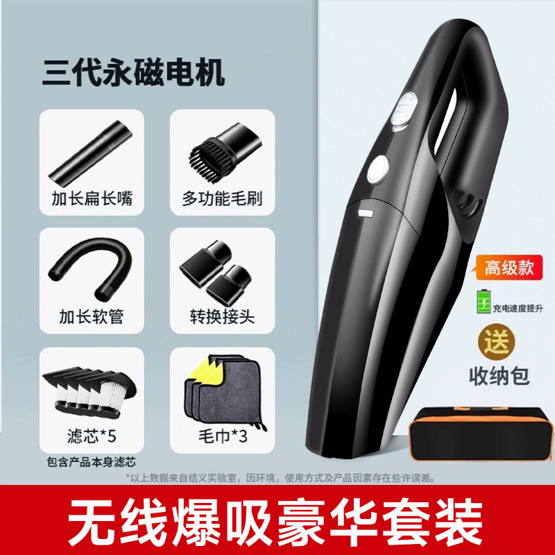 • 2580000 폭발적인 흡입 ★ 자동차 및 가정용 겸용 [3세대 영구자석 초고속 충전 럭셔리 세트] 필터엘리먼트*5+브러쉬+수납가방+수건3장/청소용품 14개