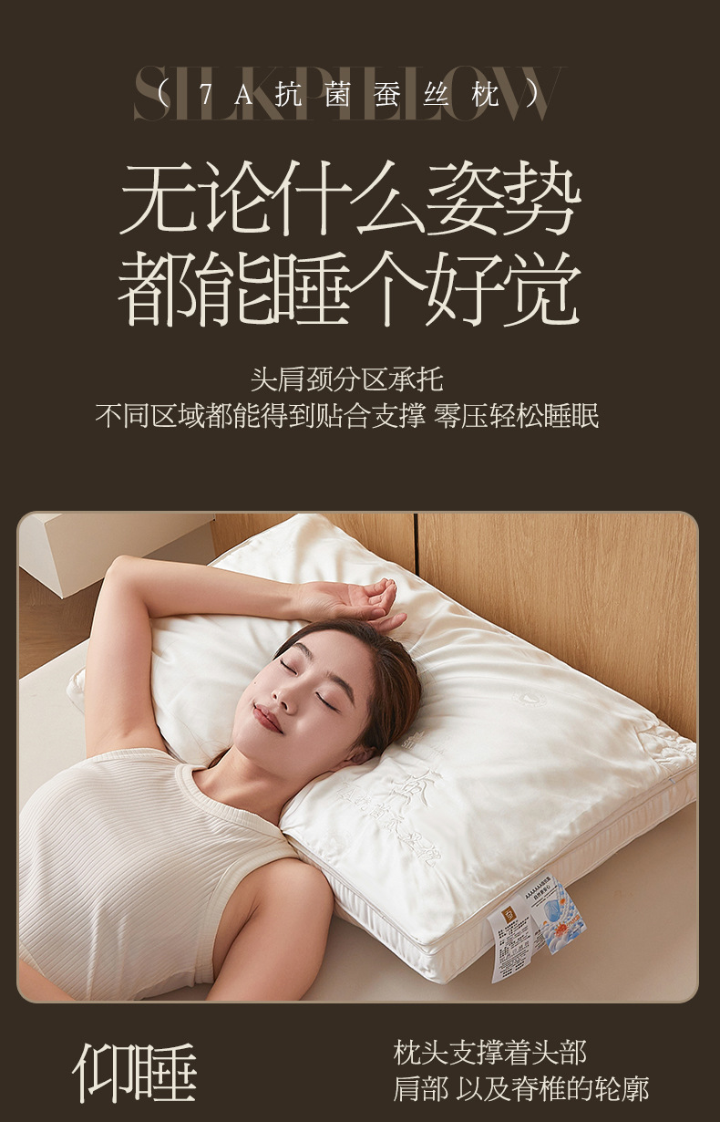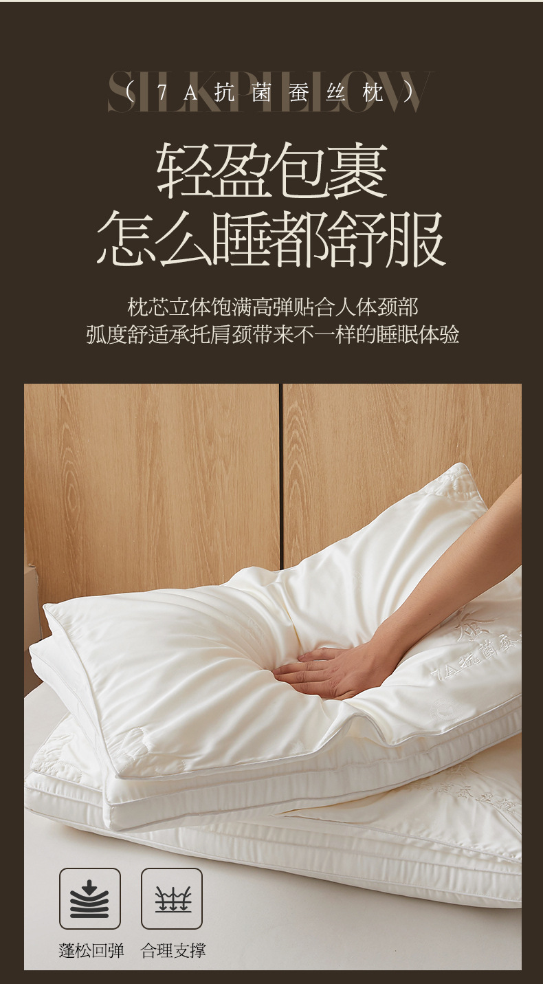 클래스 A 실크 베개 수 놓은 토사 실크 더블 레이어 베개 뽕나무 실크 소프트 슬로우 리바운드 스테레오 베개스토어 가기