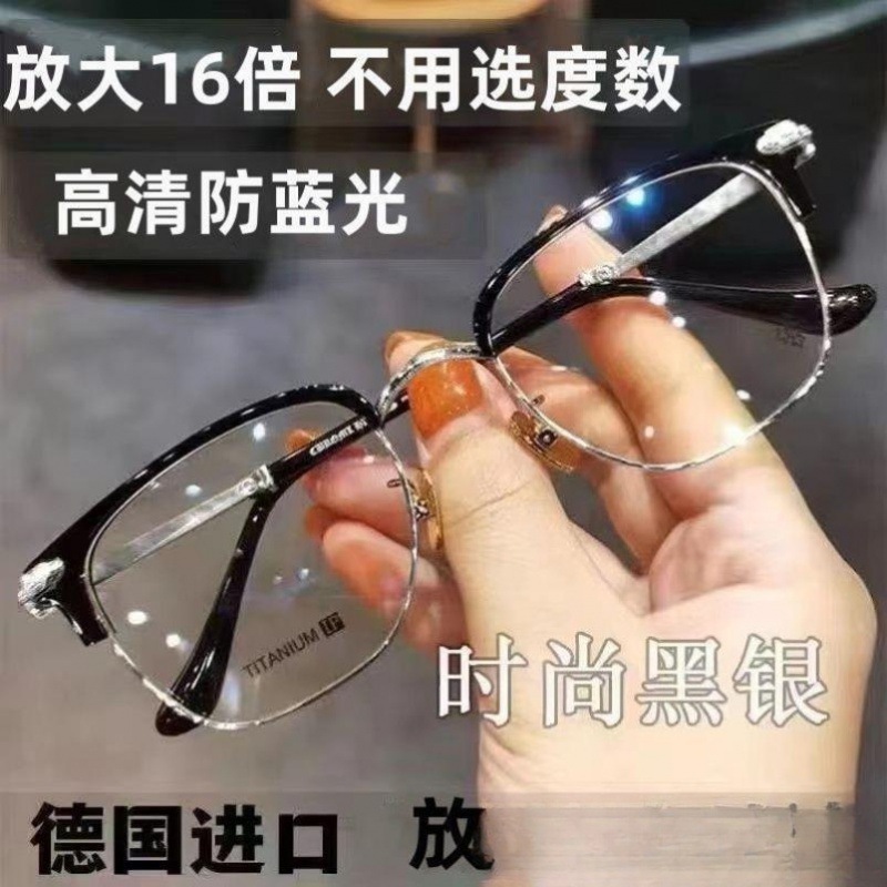 나이를 줄이는 2 대 1 고화질 초 고화질 독서 안경 시간 새로운 중년 및 노인 비전 안티 블루 라이트 확장 패션 16 배율