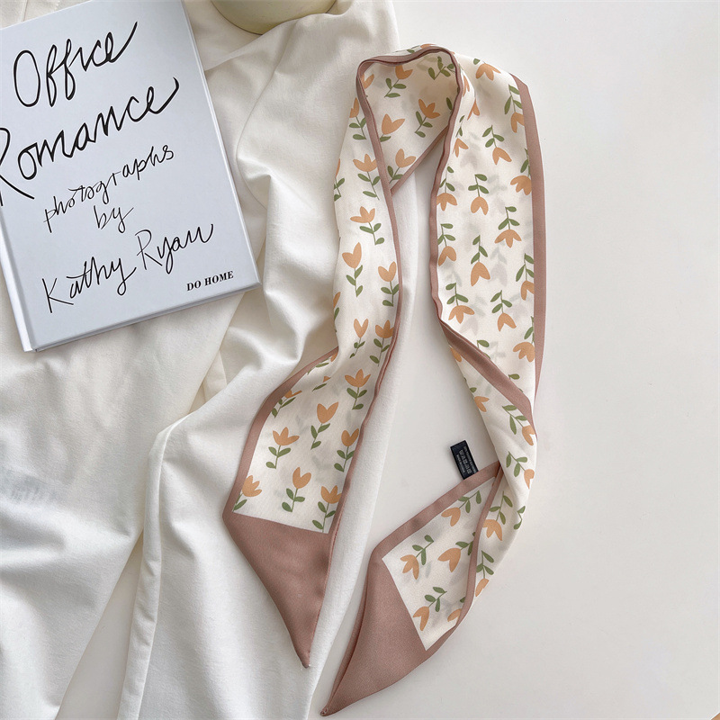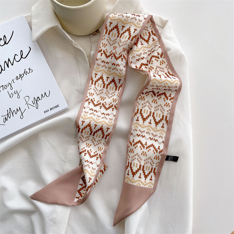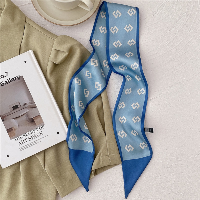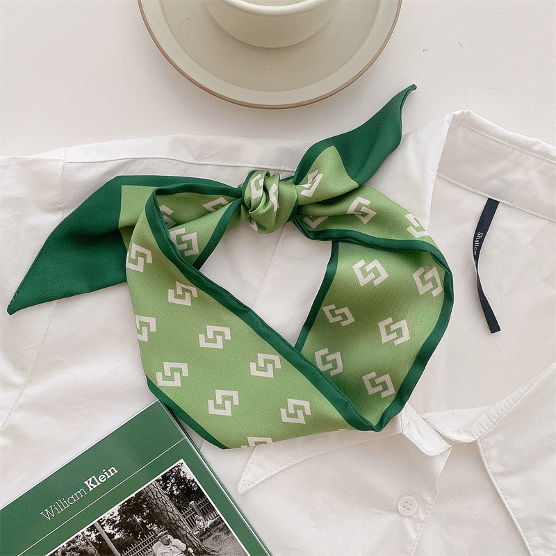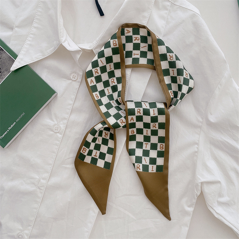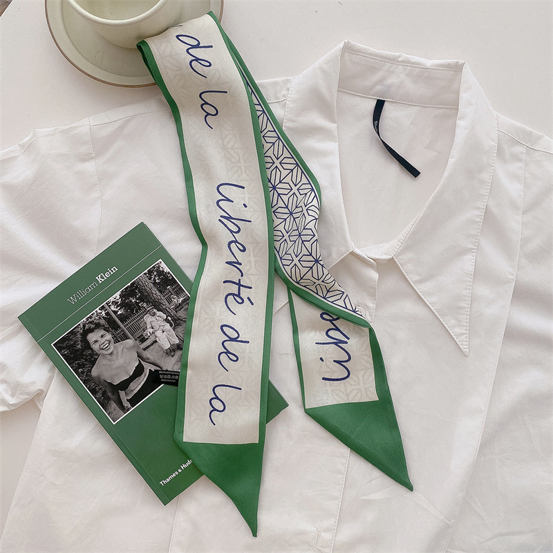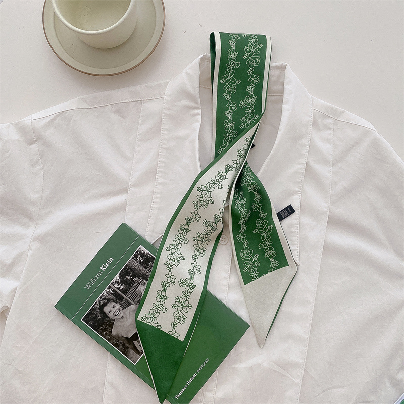 흰색과 부드러운 녹색 작은 실크 스카프 여성의 봄과 여름 좁은 줄무늬 헤어 스트랩 헤어 넥타이 가방 장식 긴 스카프스토어 가기