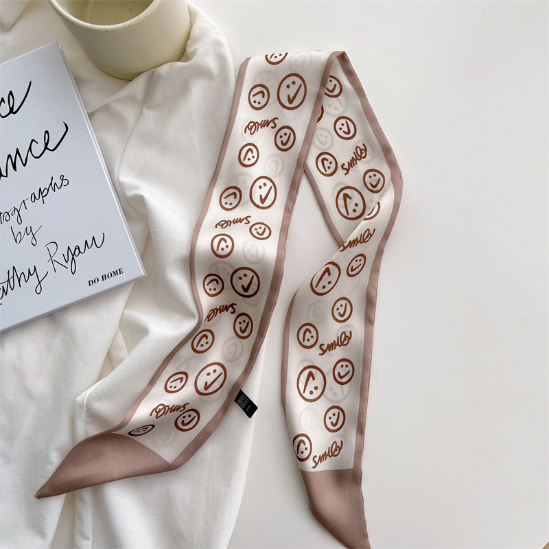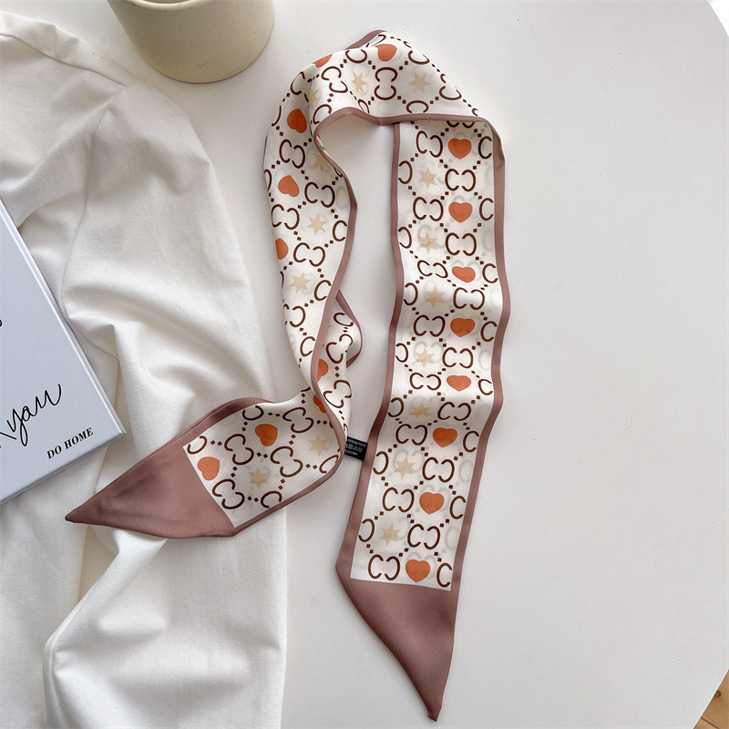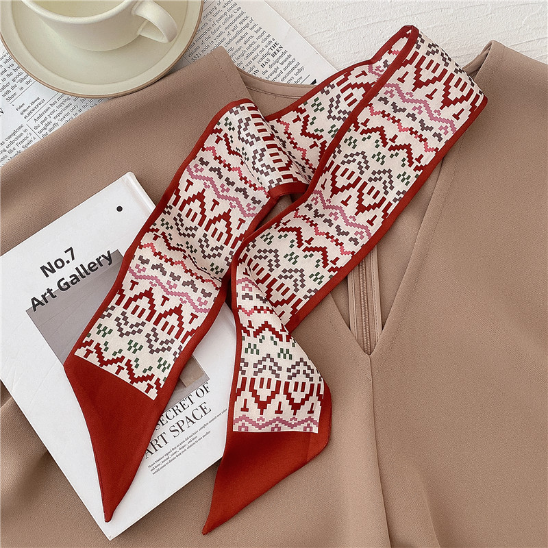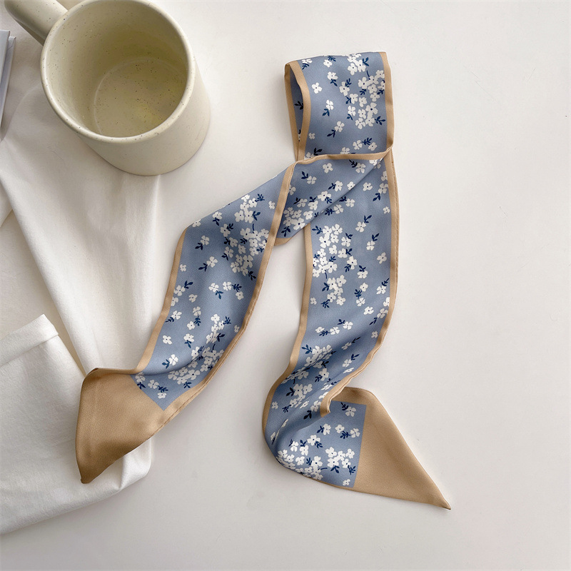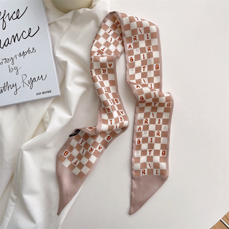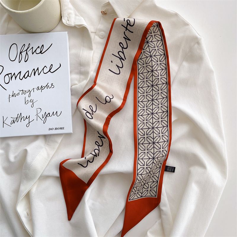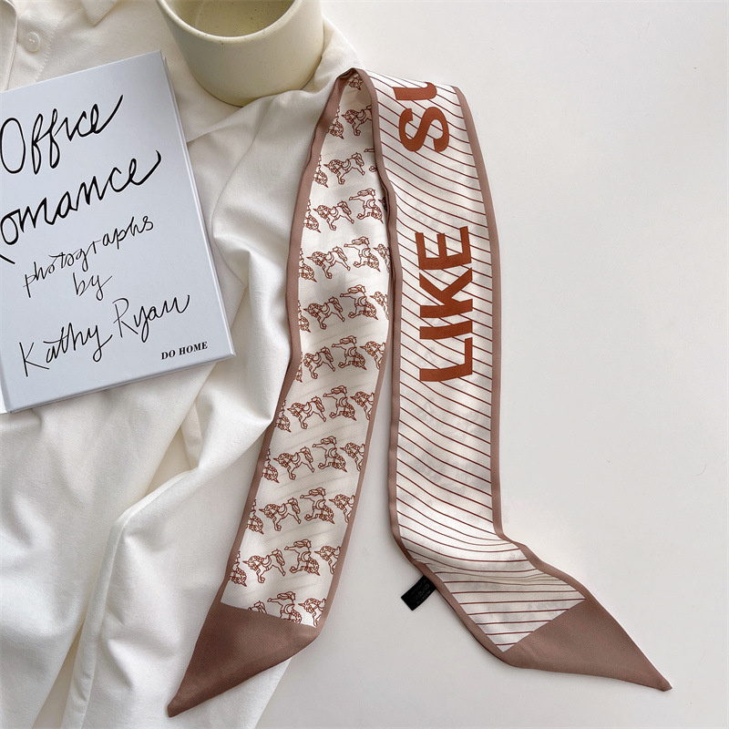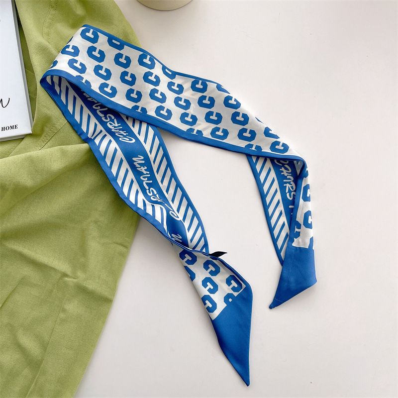 흰색과 부드러운 녹색 작은 실크 스카프 여성의 봄과 여름 좁은 줄무늬 헤어 스트랩 헤어 넥타이 가방 장식 긴 스카프스토어 가기