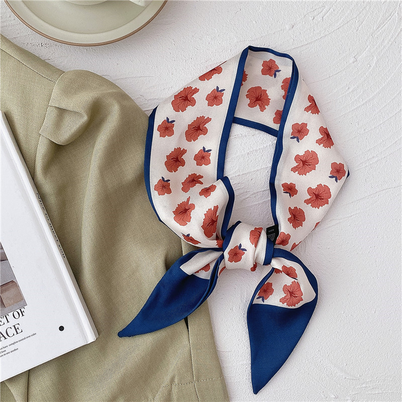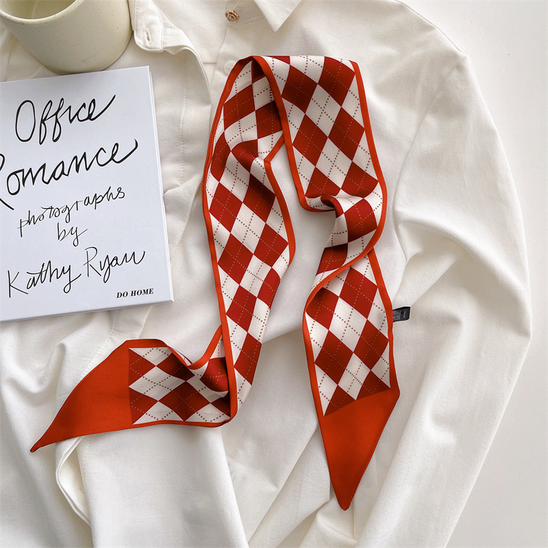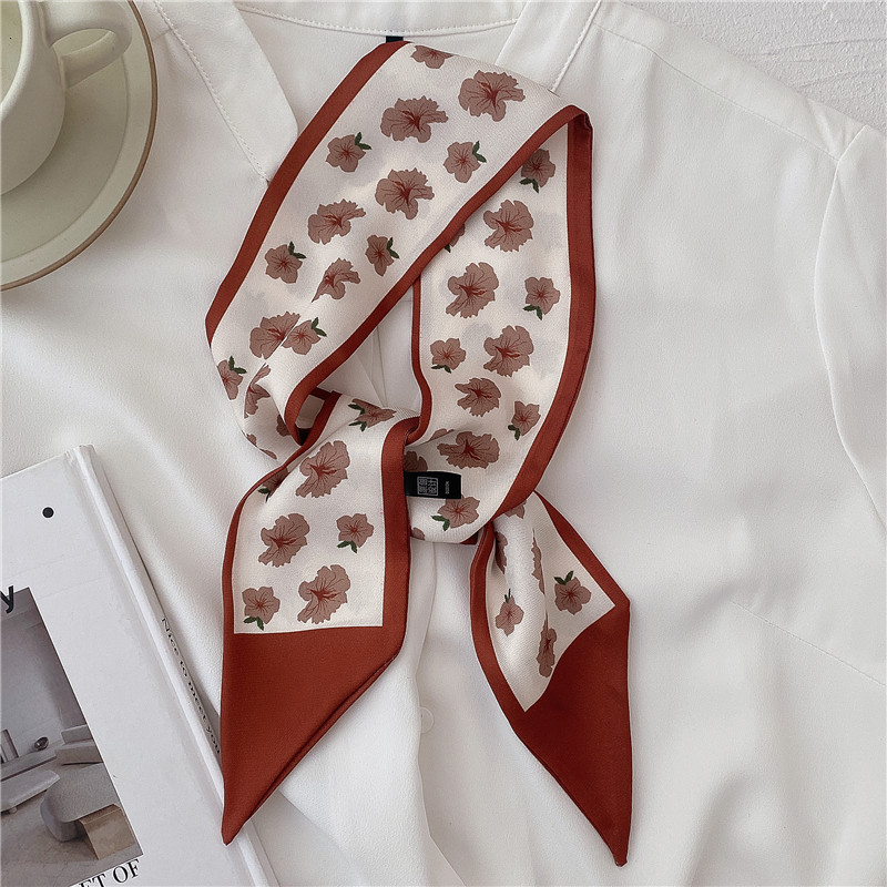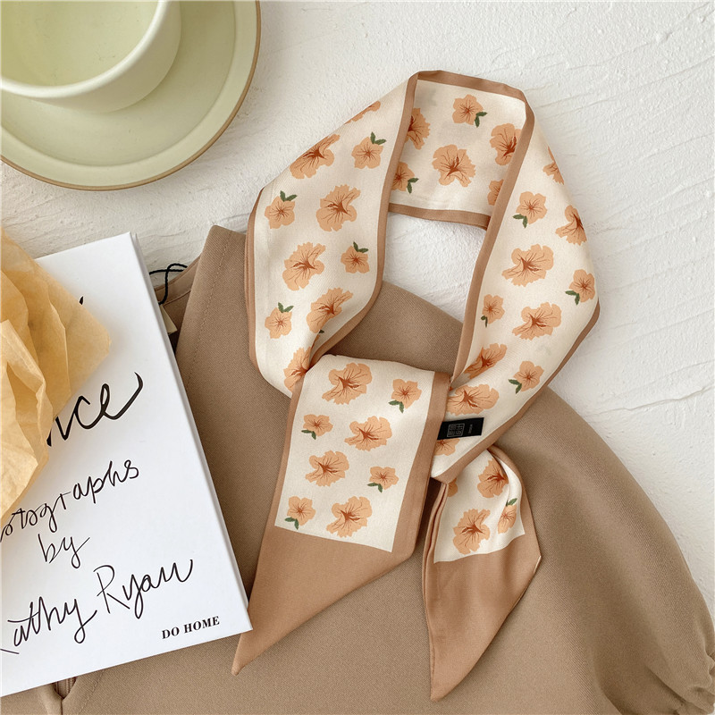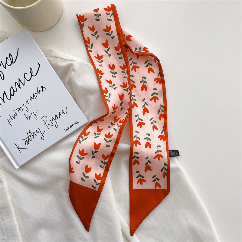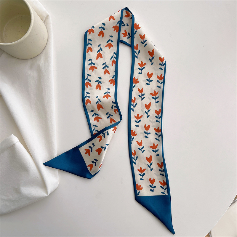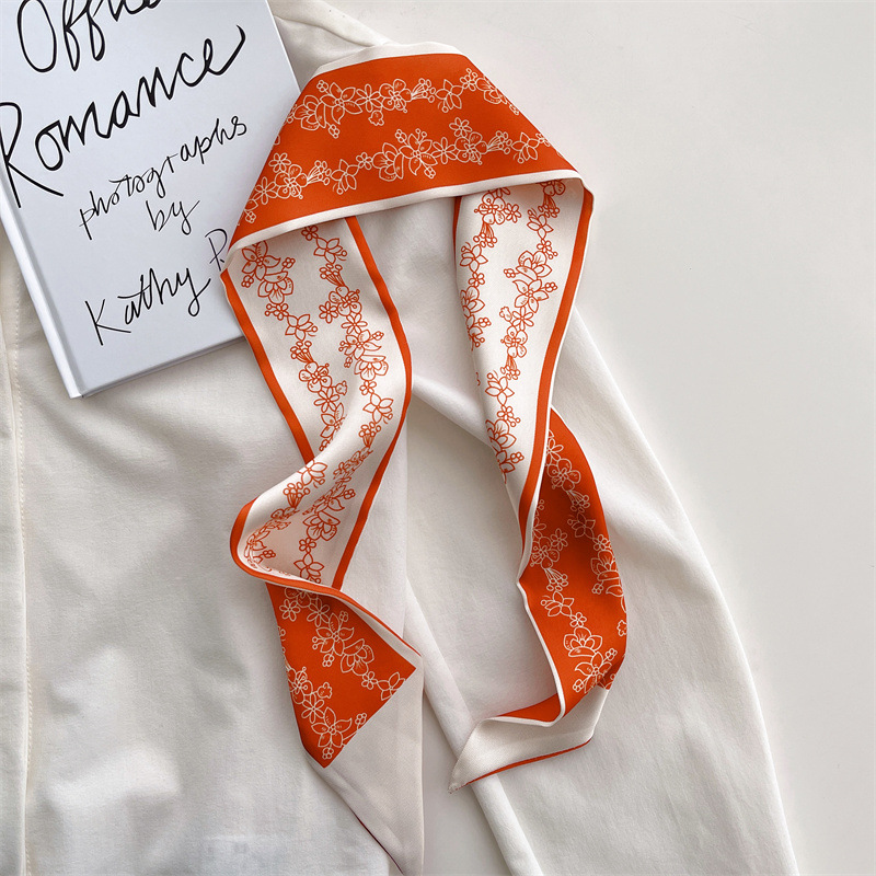 흰색과 부드러운 녹색 작은 실크 스카프 여성의 봄과 여름 좁은 줄무늬 헤어 스트랩 헤어 넥타이 가방 장식 긴 스카프스토어 가기