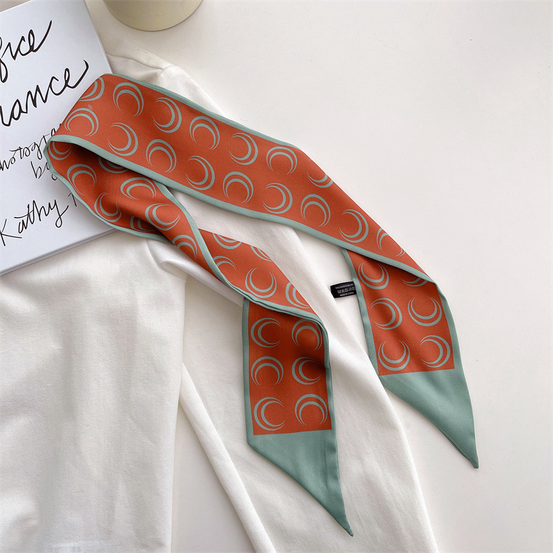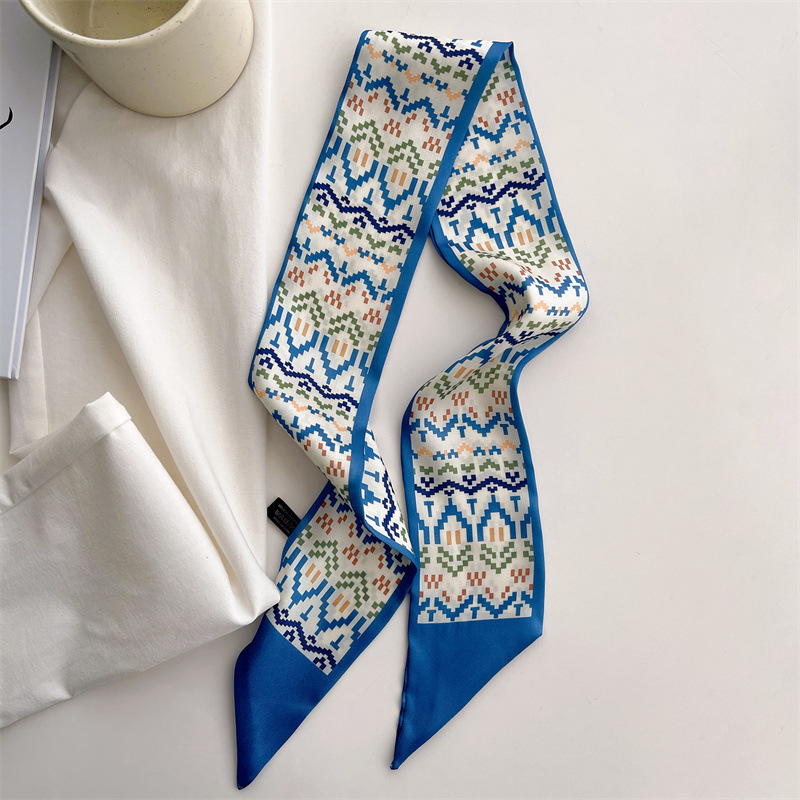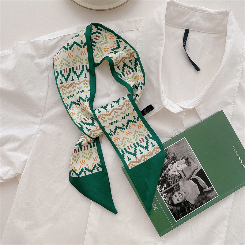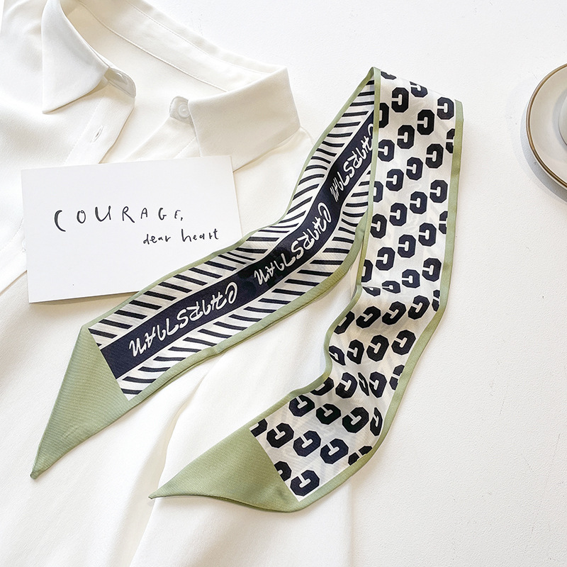 흰색과 부드러운 녹색 작은 실크 스카프 여성의 봄과 여름 좁은 줄무늬 헤어 스트랩 헤어 넥타이 가방 장식 긴 스카프